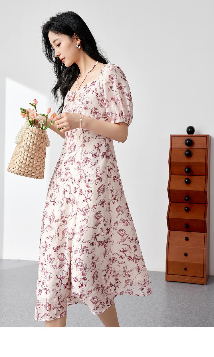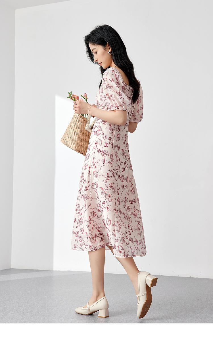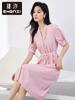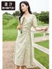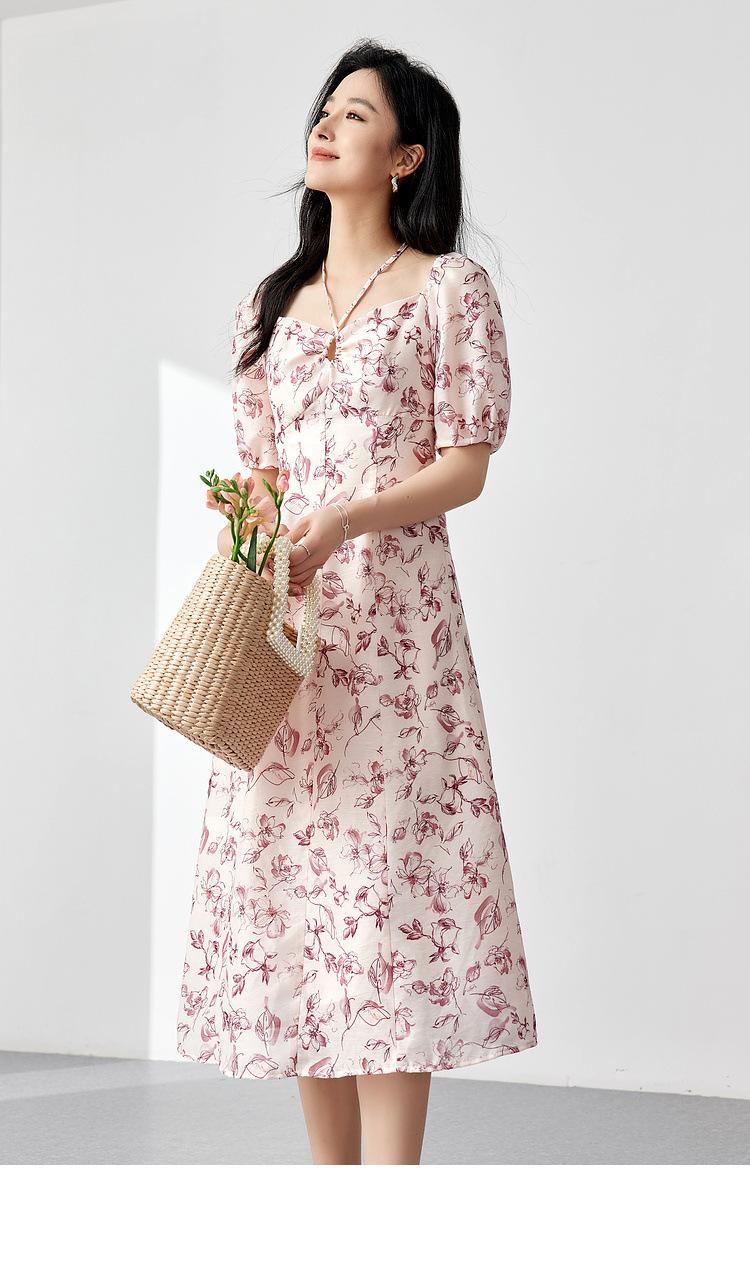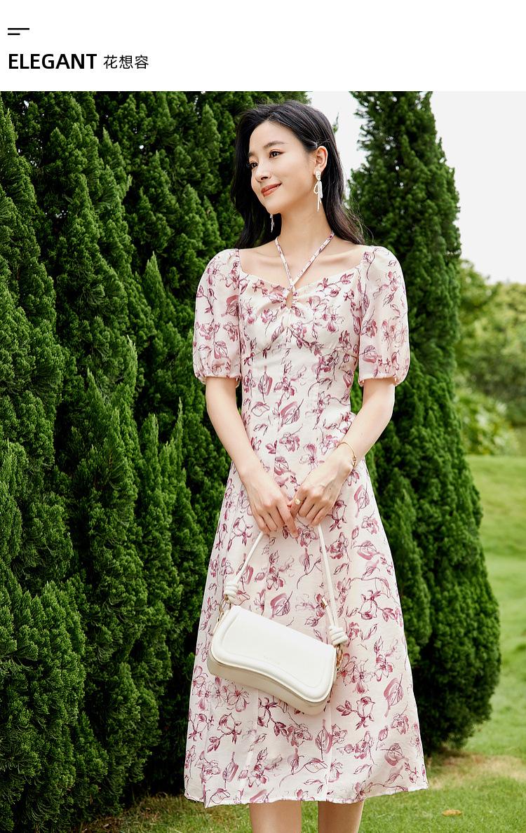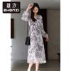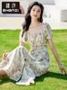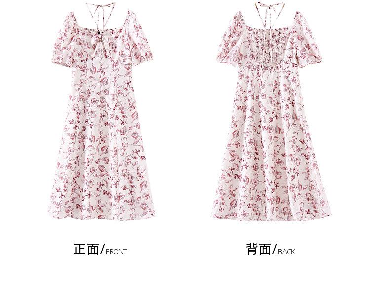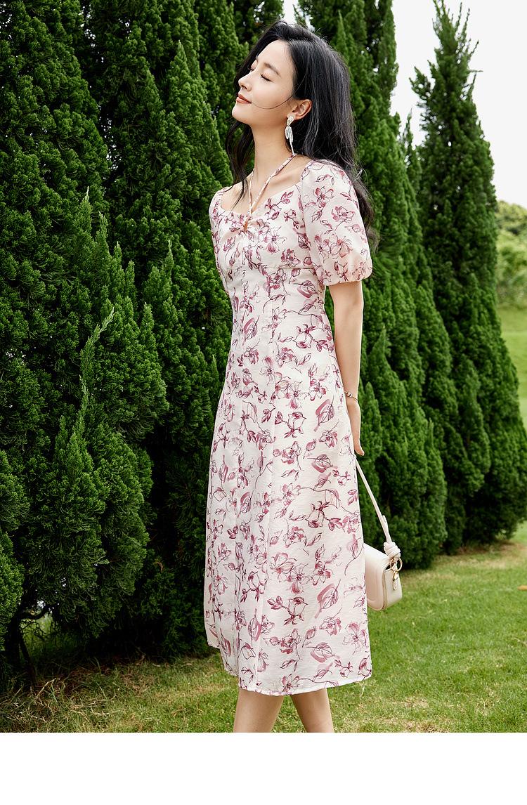 Vestido elegante informal de cintura alta con estampado de moda de manga corta y cuello colgante para mujer de Zhen Xi DP291
