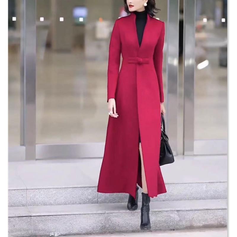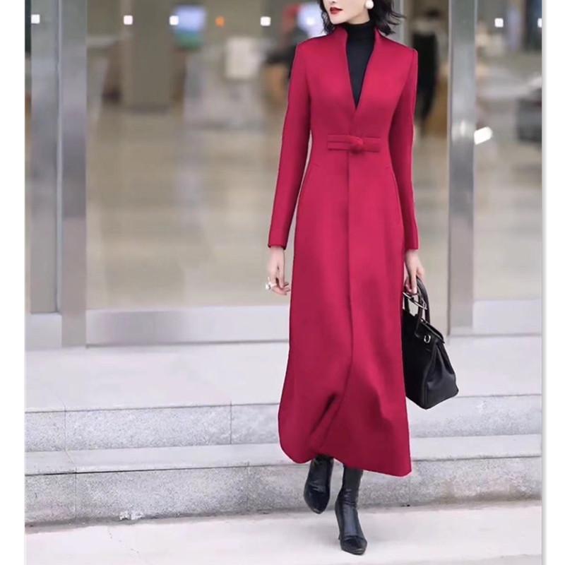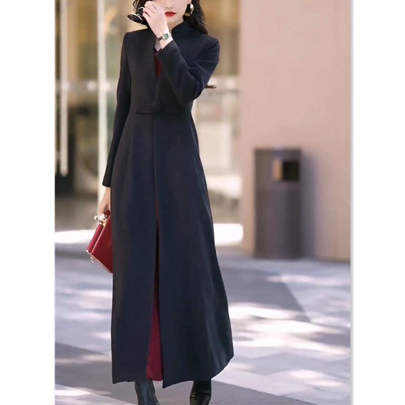 22897 Big Love Meiyuan 2025 Otoño e Invierno Nuevo Abrigo Largo de Moda de Manga Larga para Mujer Ajustado Moderno