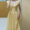 Vestido elegante de primavera para mujer, estilo francés suave, con volantes y escote en V, con cintura adelgazante y falda drapeada.