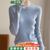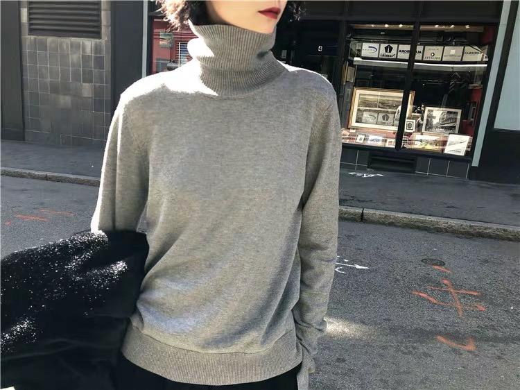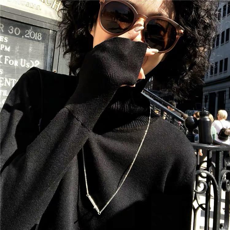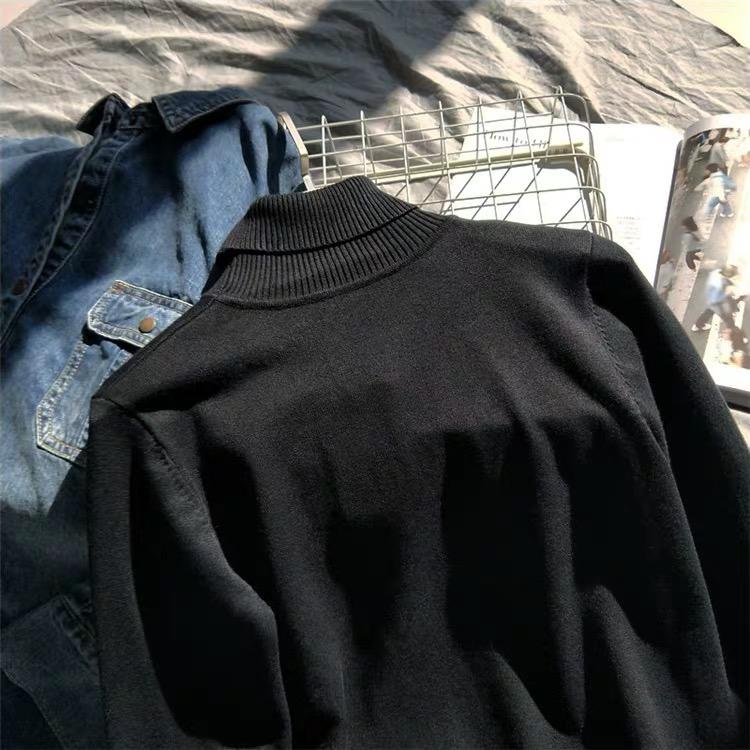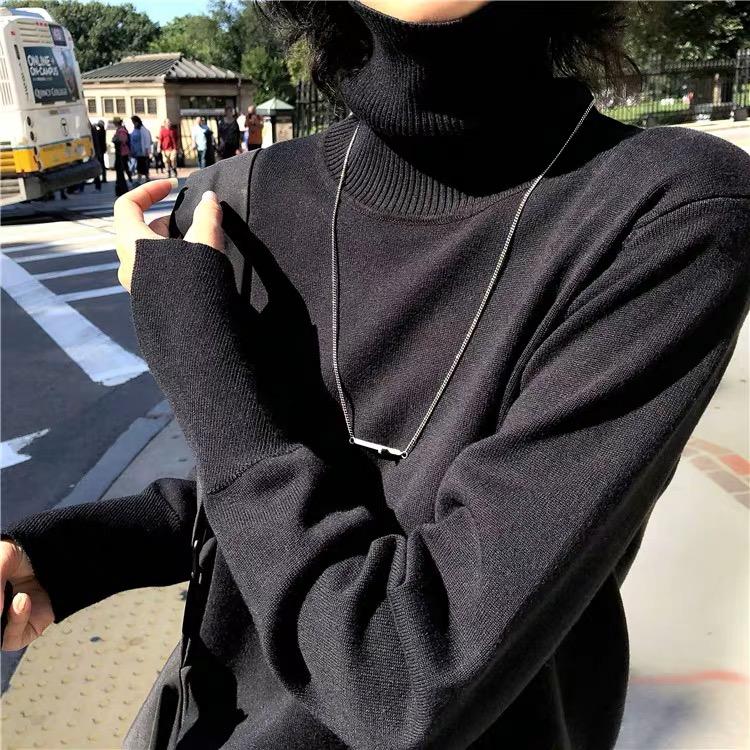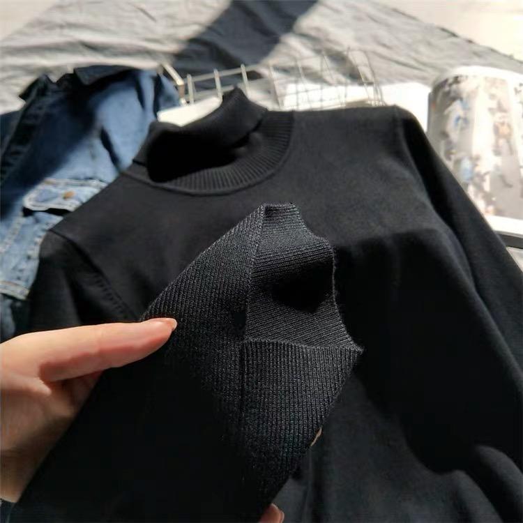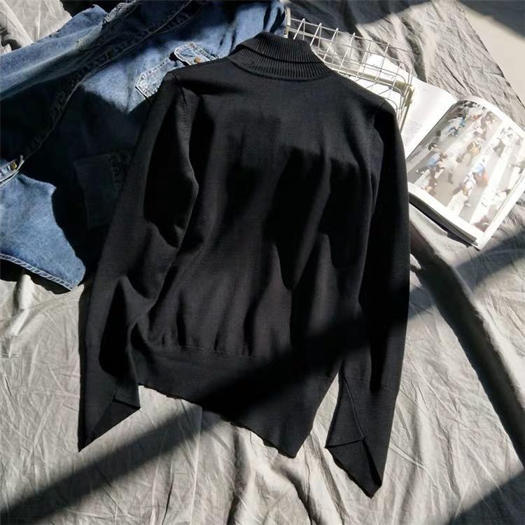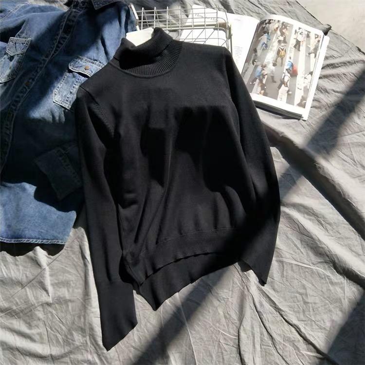 Suéter de manga larga de lana 50% para mujer, camisa de cuello alto negra, color liso, combinable con todo, otoño e invierno de 2022