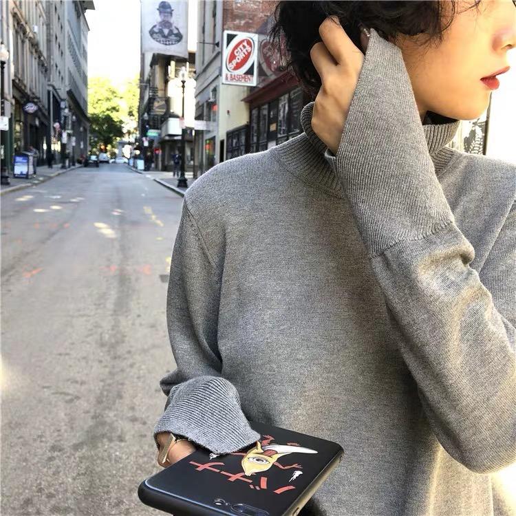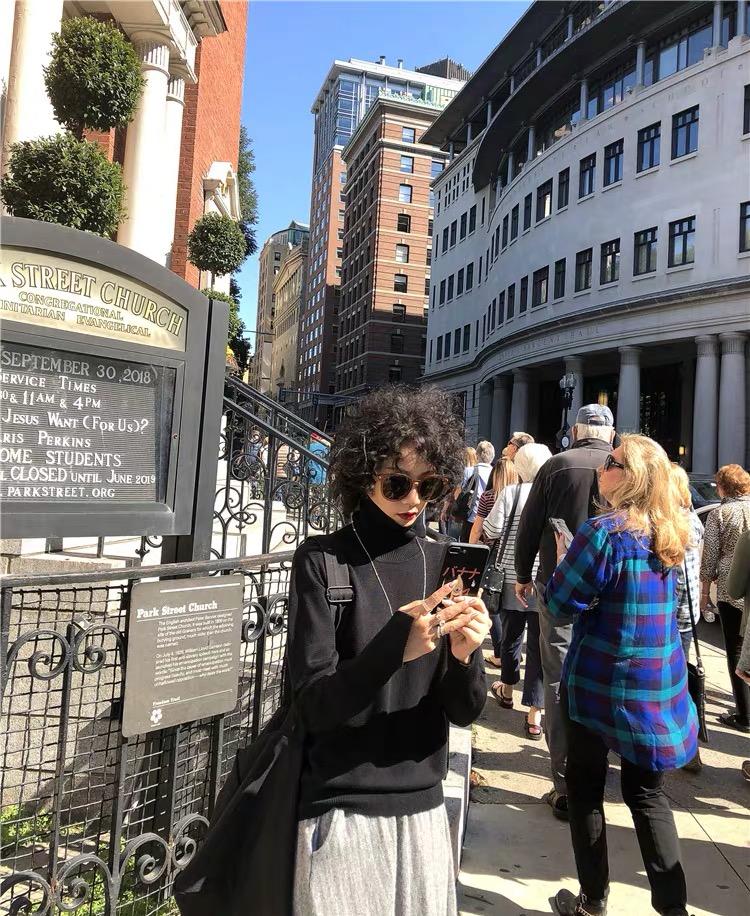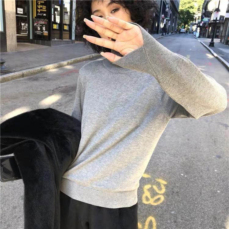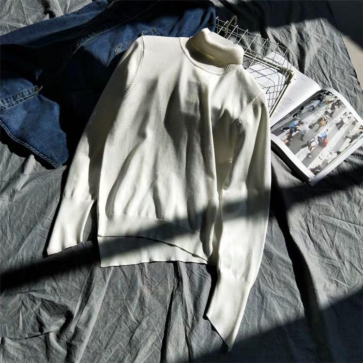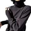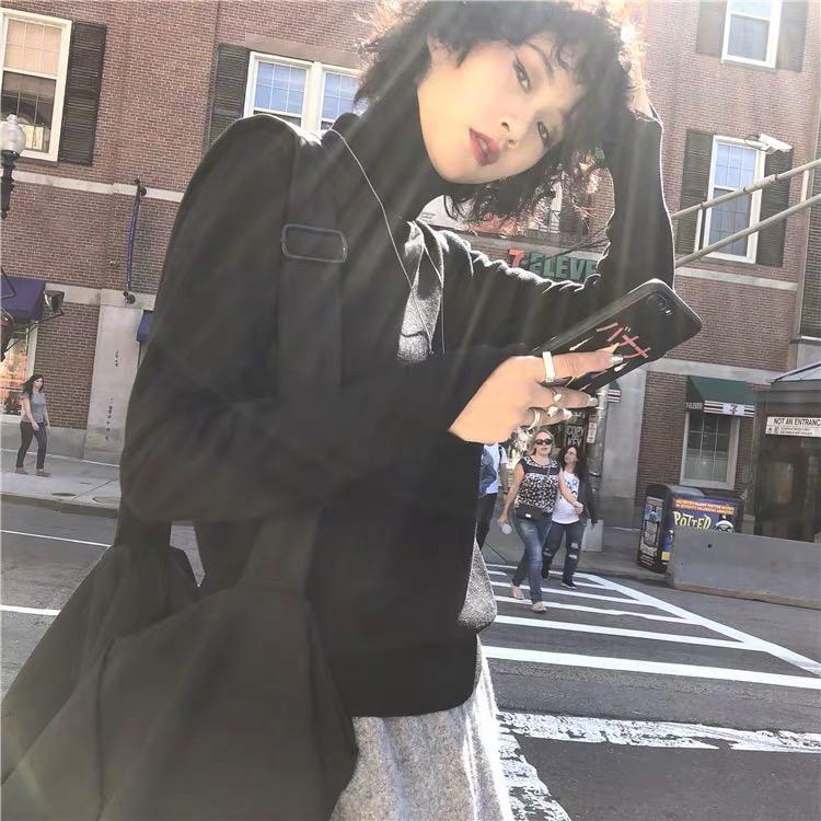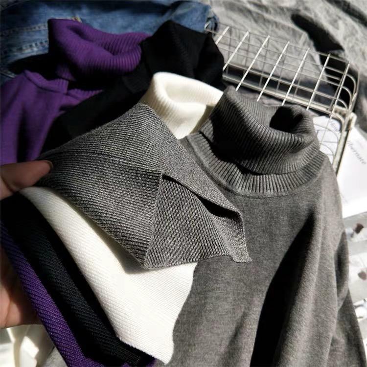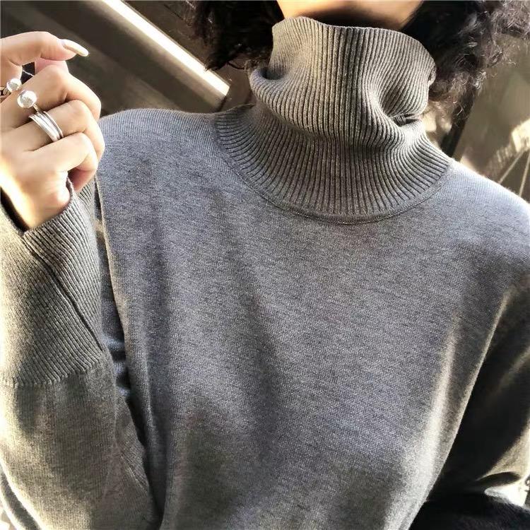 Suéter de manga larga de lana 50% para mujer, camisa de cuello alto negra, color liso, combinable con todo, otoño e invierno de 2022