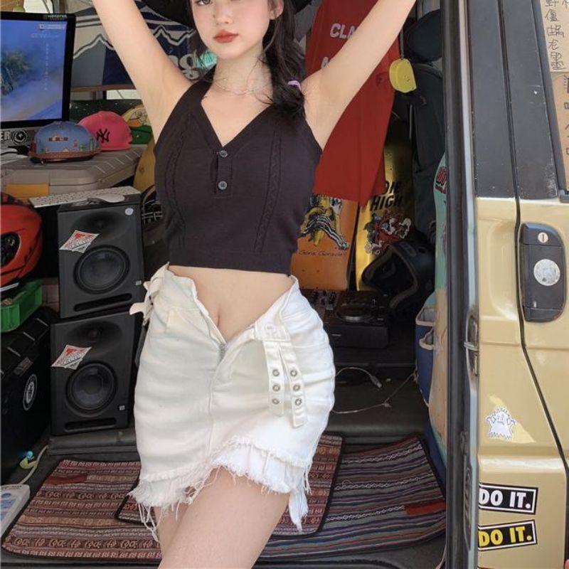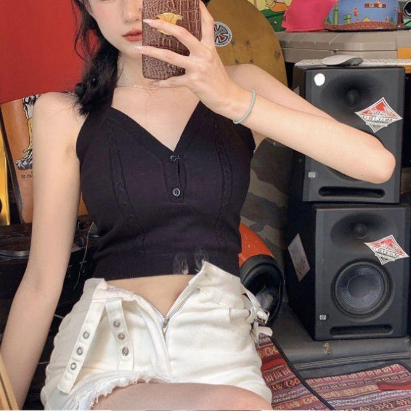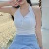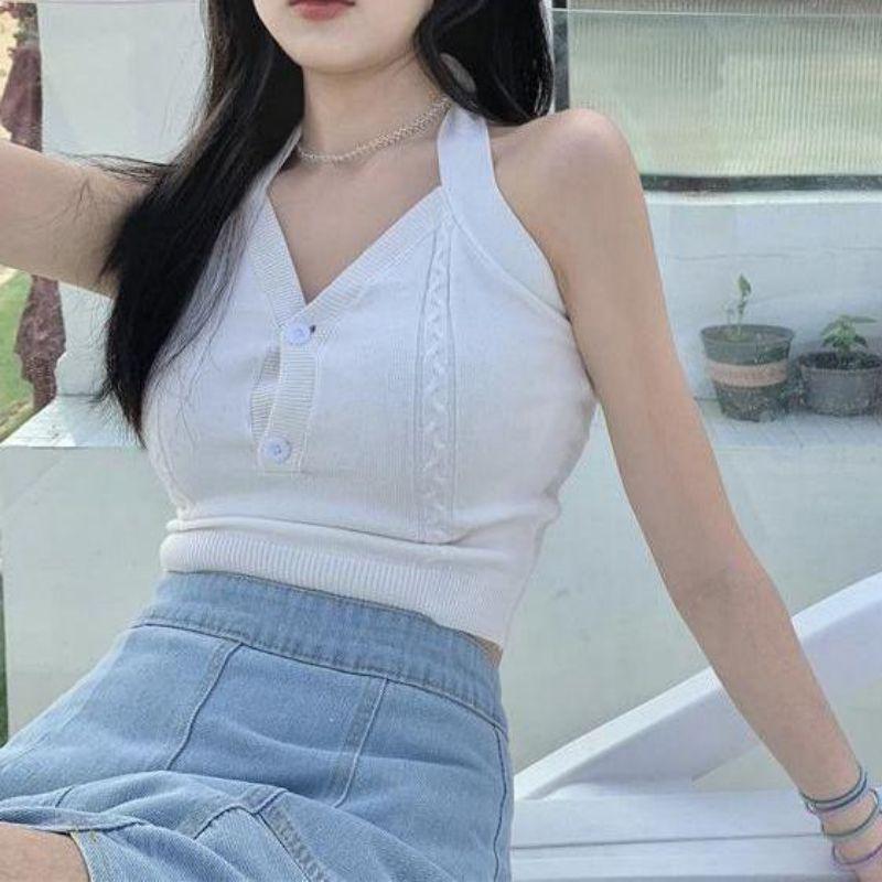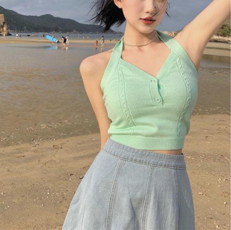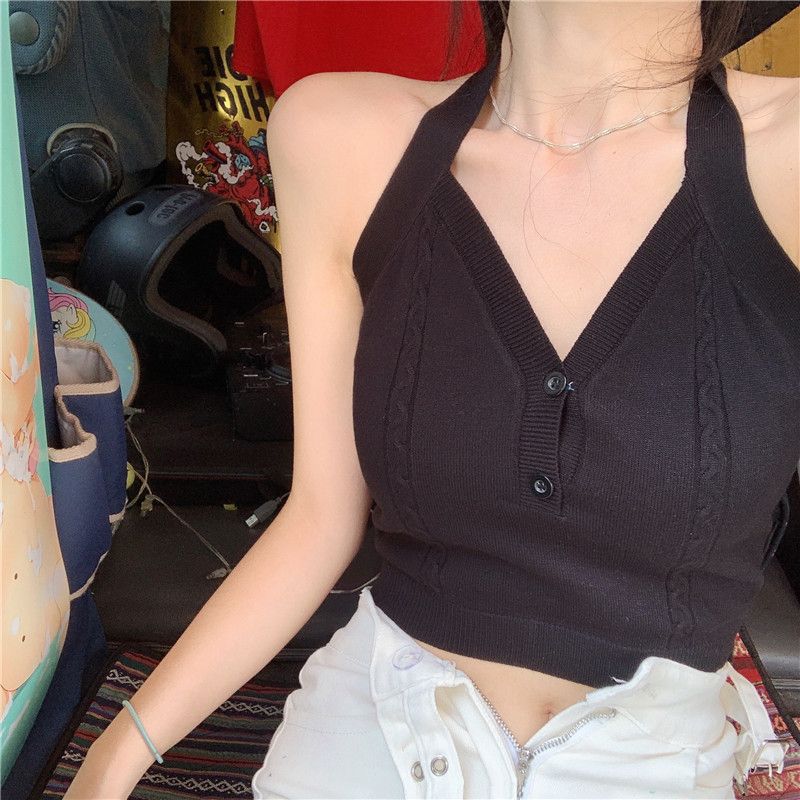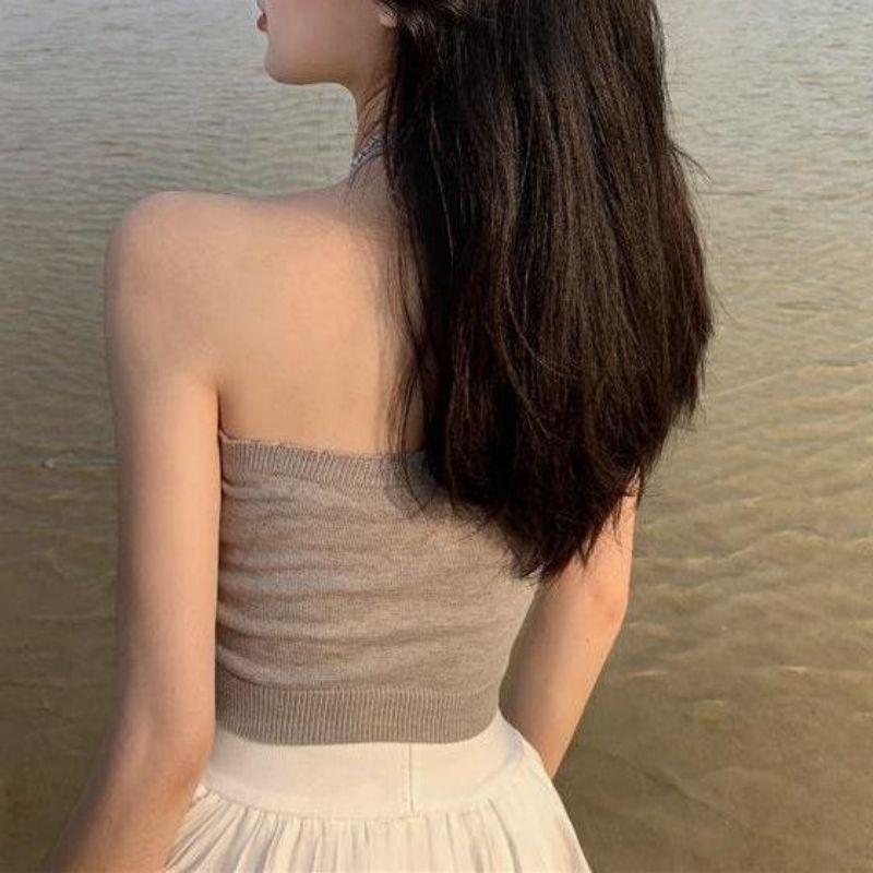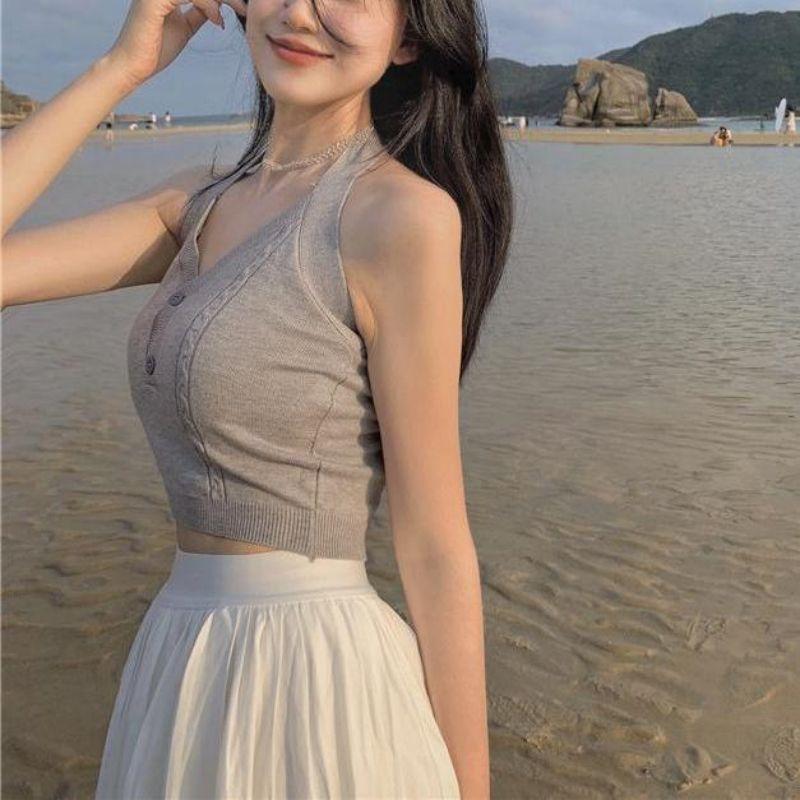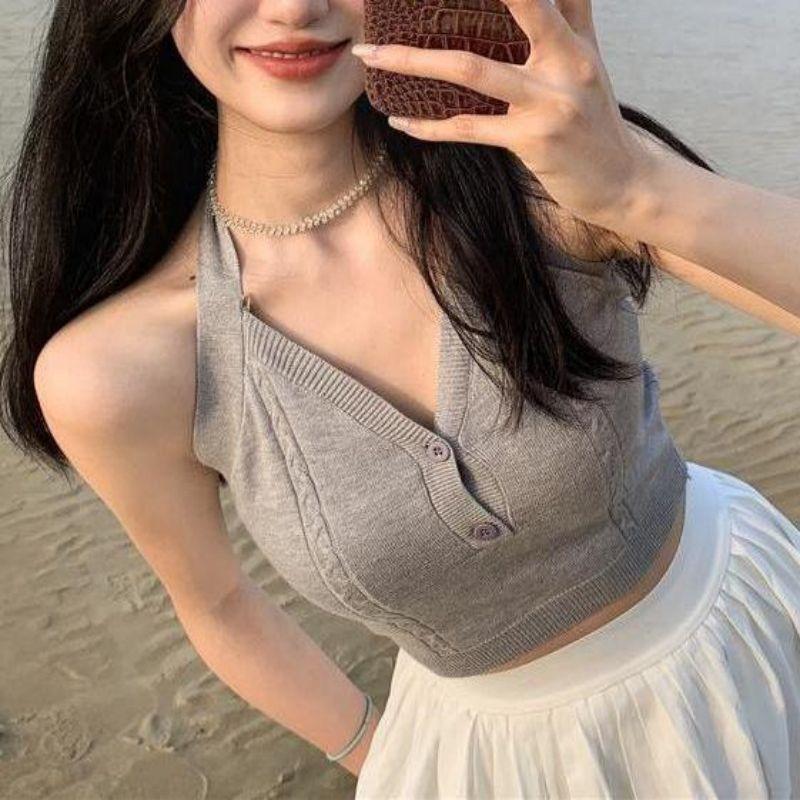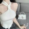 Camisola pequeña estilo francés para mujer, top con cuello halter interior, chaleco corto, suéter para mujer