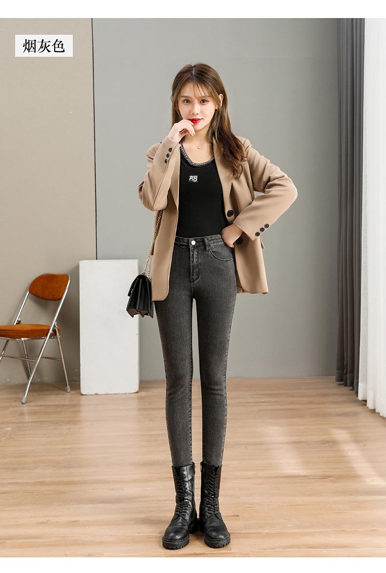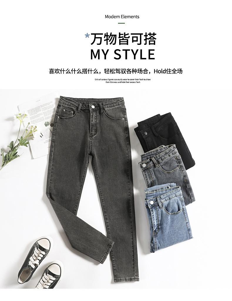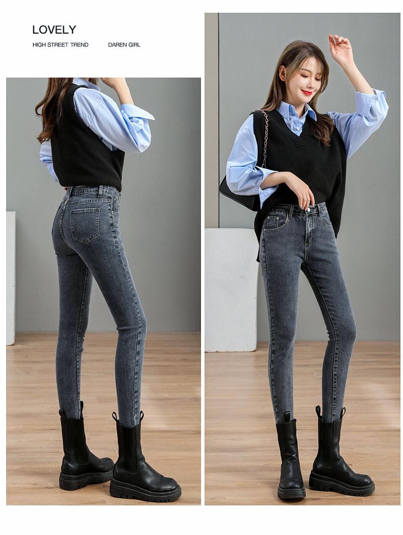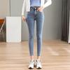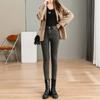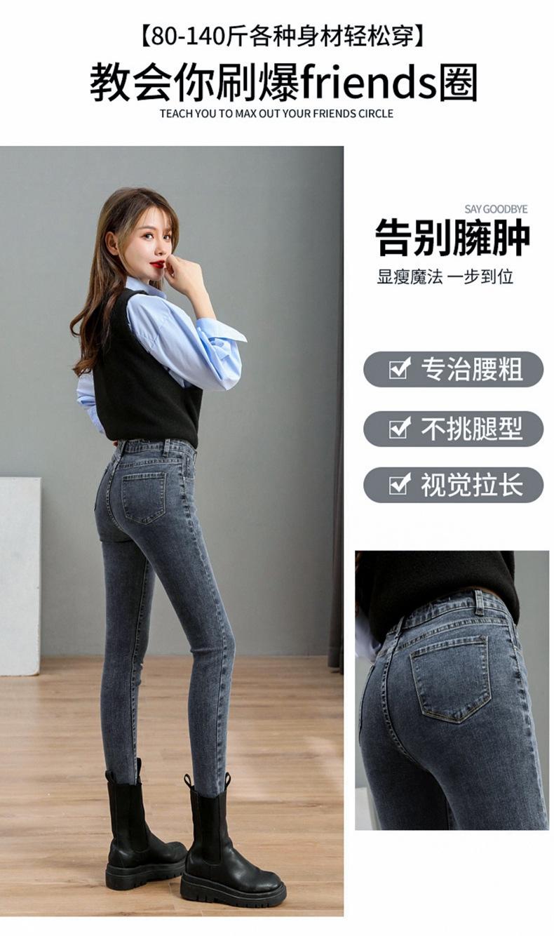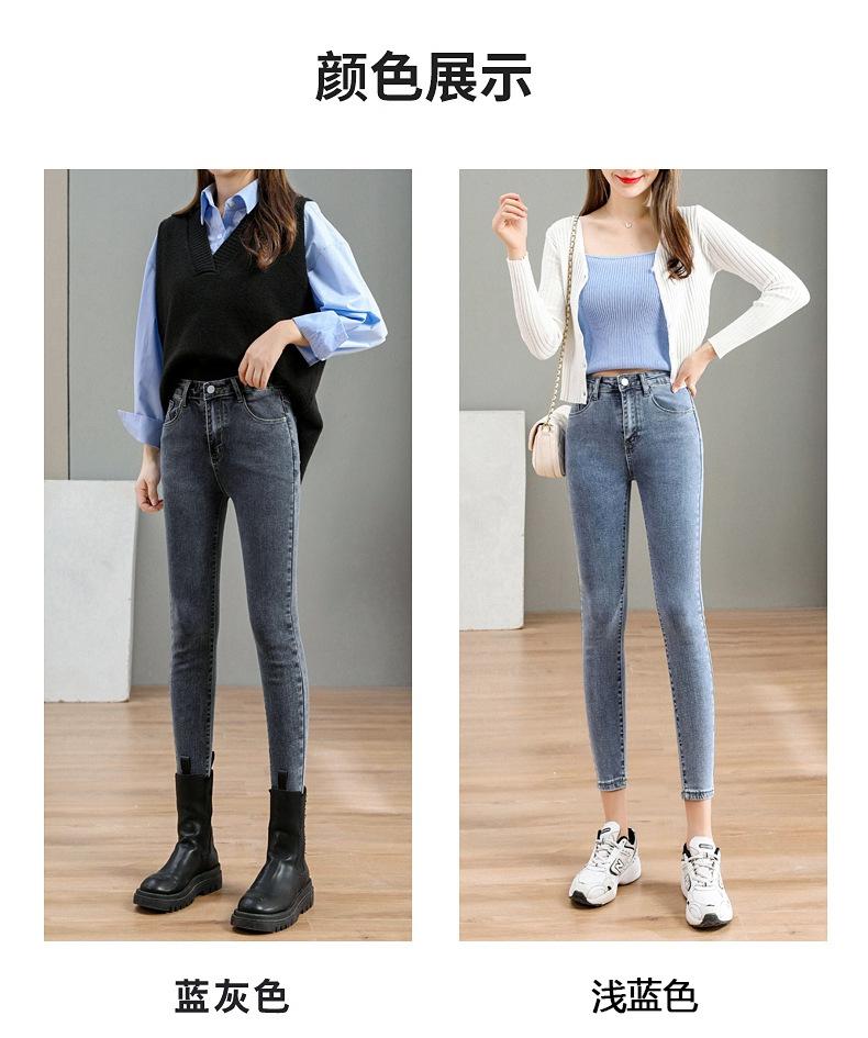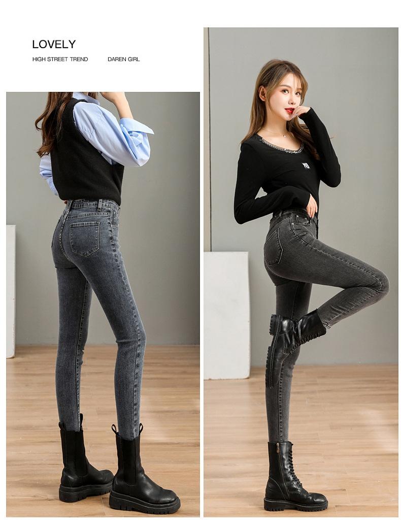 Pantalones vaqueros ajustados de otoño e invierno para mujer, estilo coreano, de talla grande, elásticos, ajustados, adelgazantes, de cintura alta, recortados
