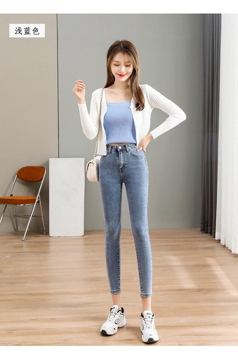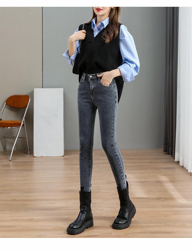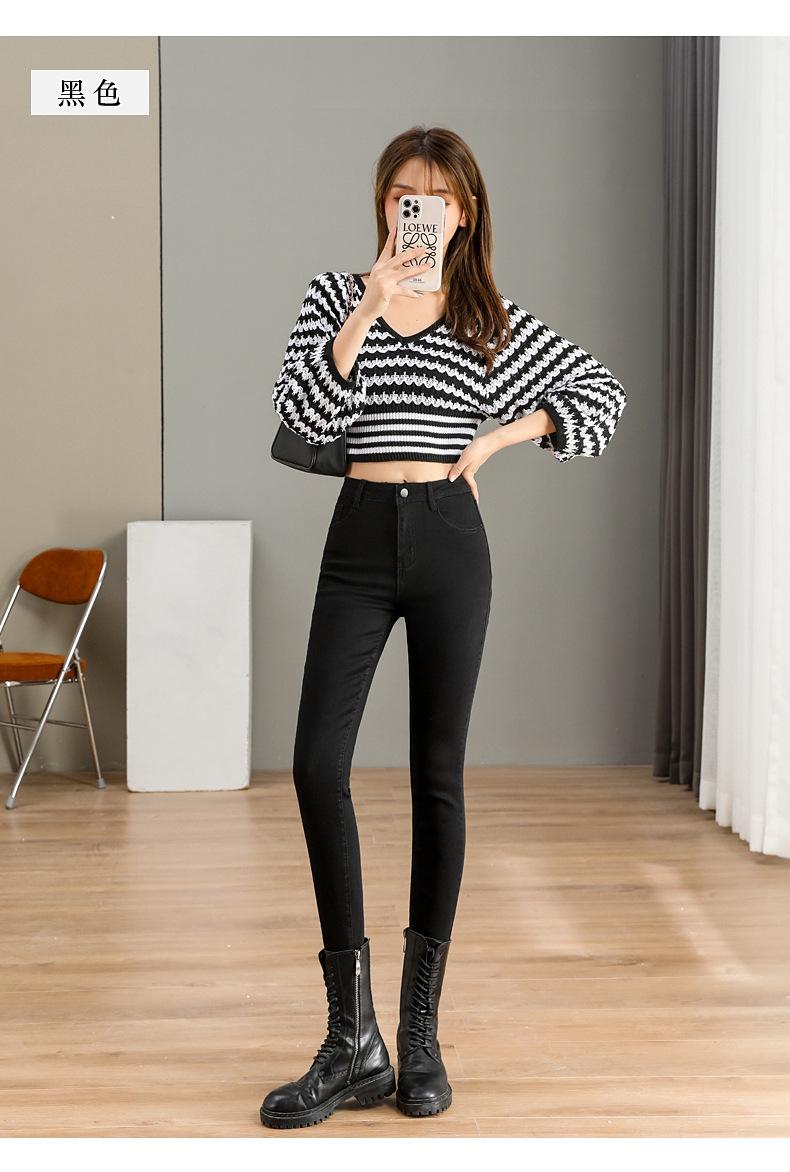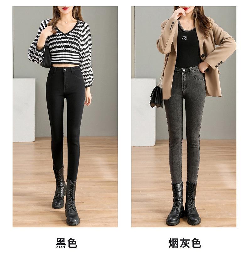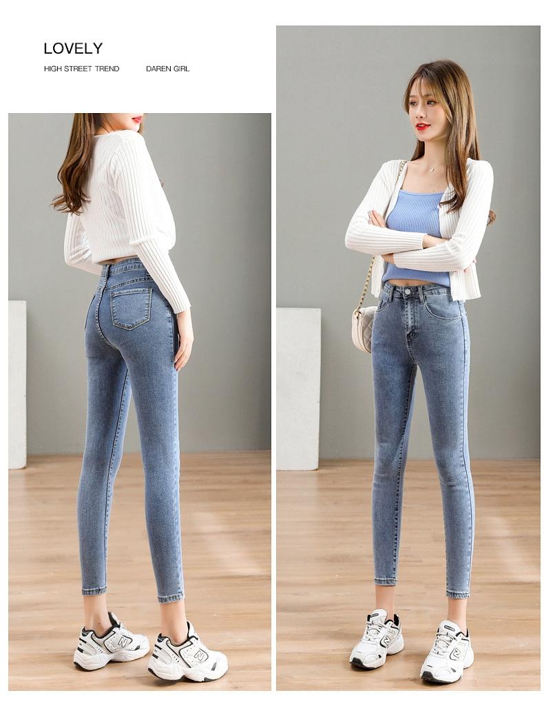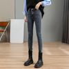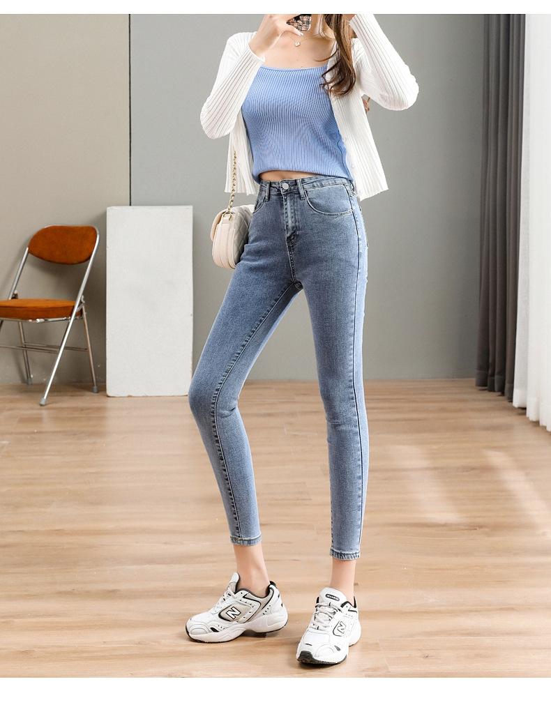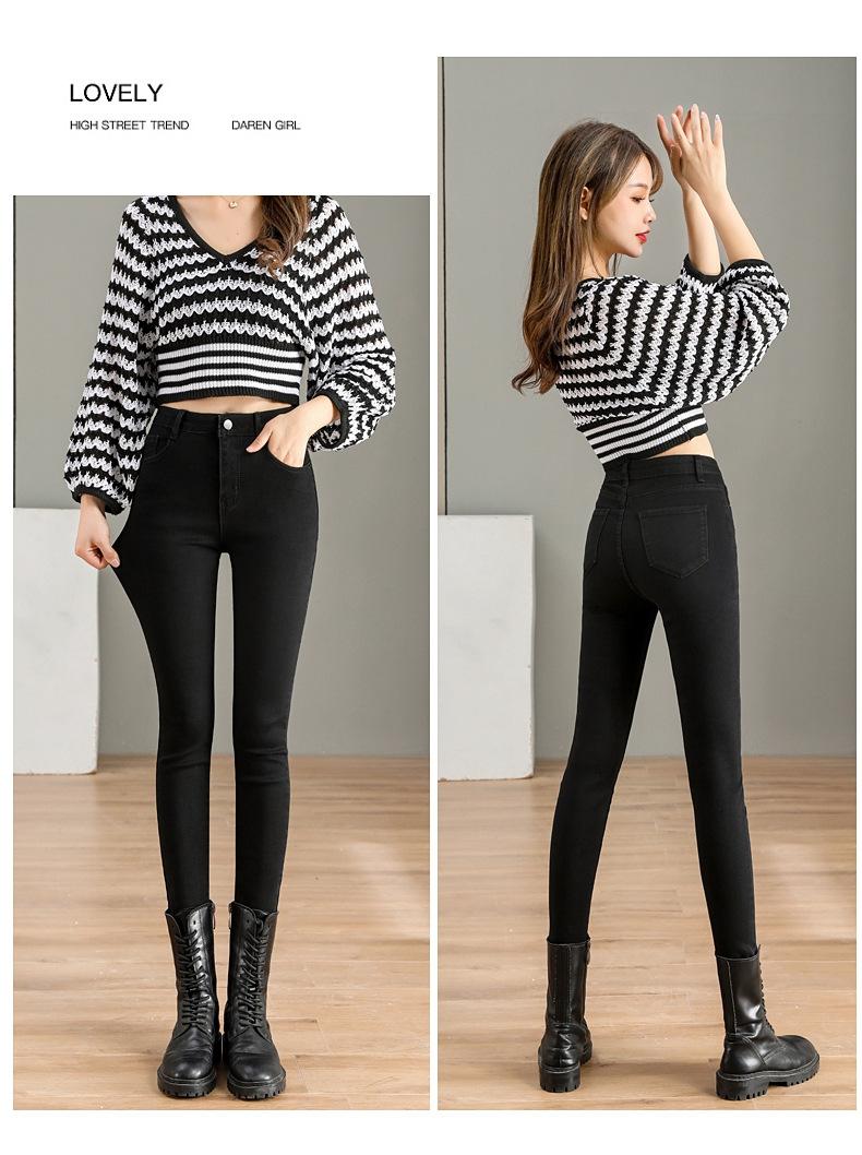 Pantalones vaqueros ajustados de otoño e invierno para mujer, estilo coreano, de talla grande, elásticos, ajustados, adelgazantes, de cintura alta, recortados