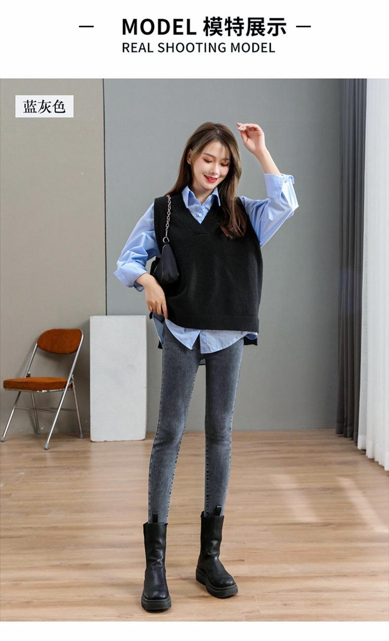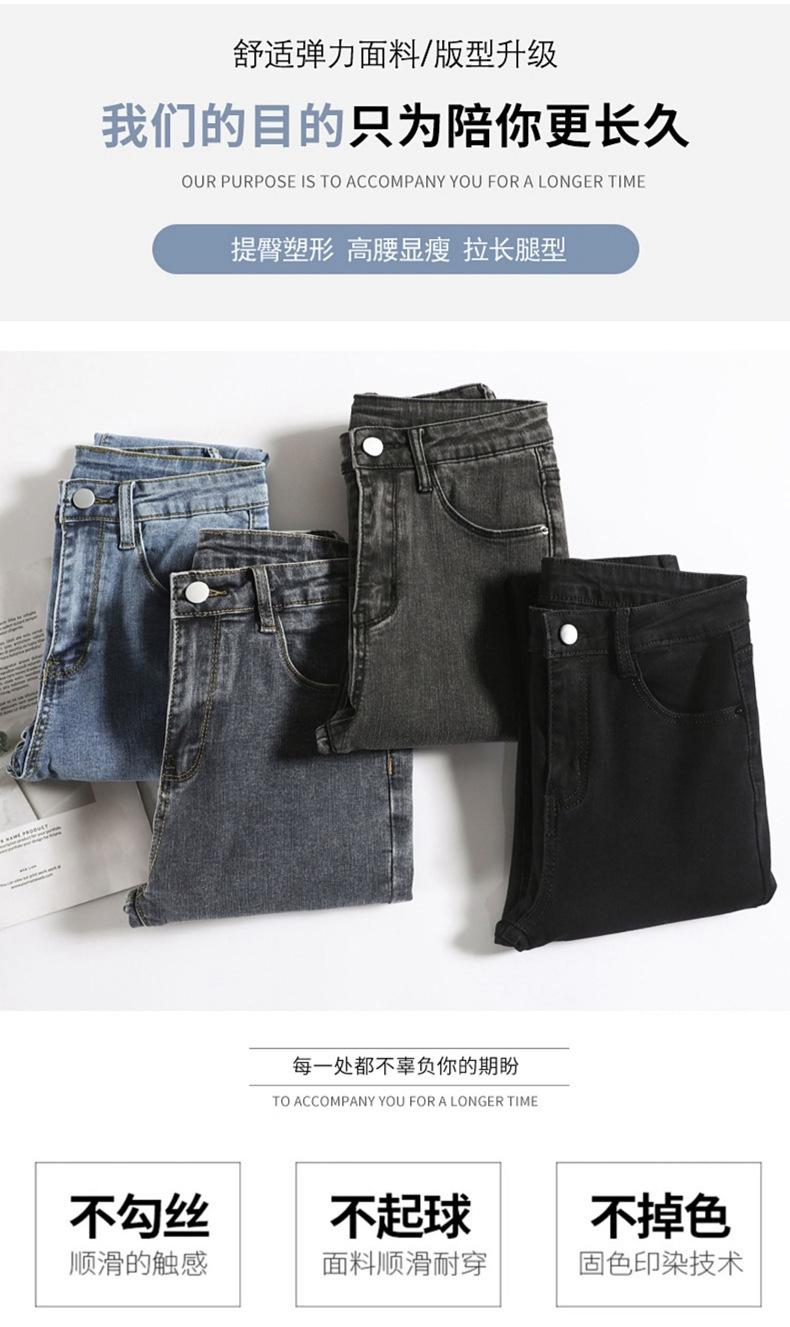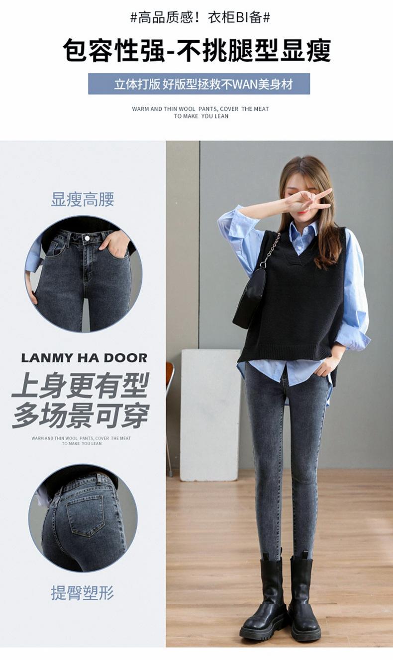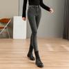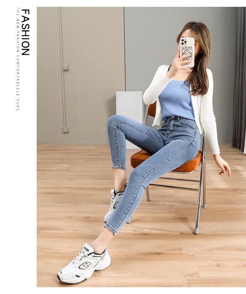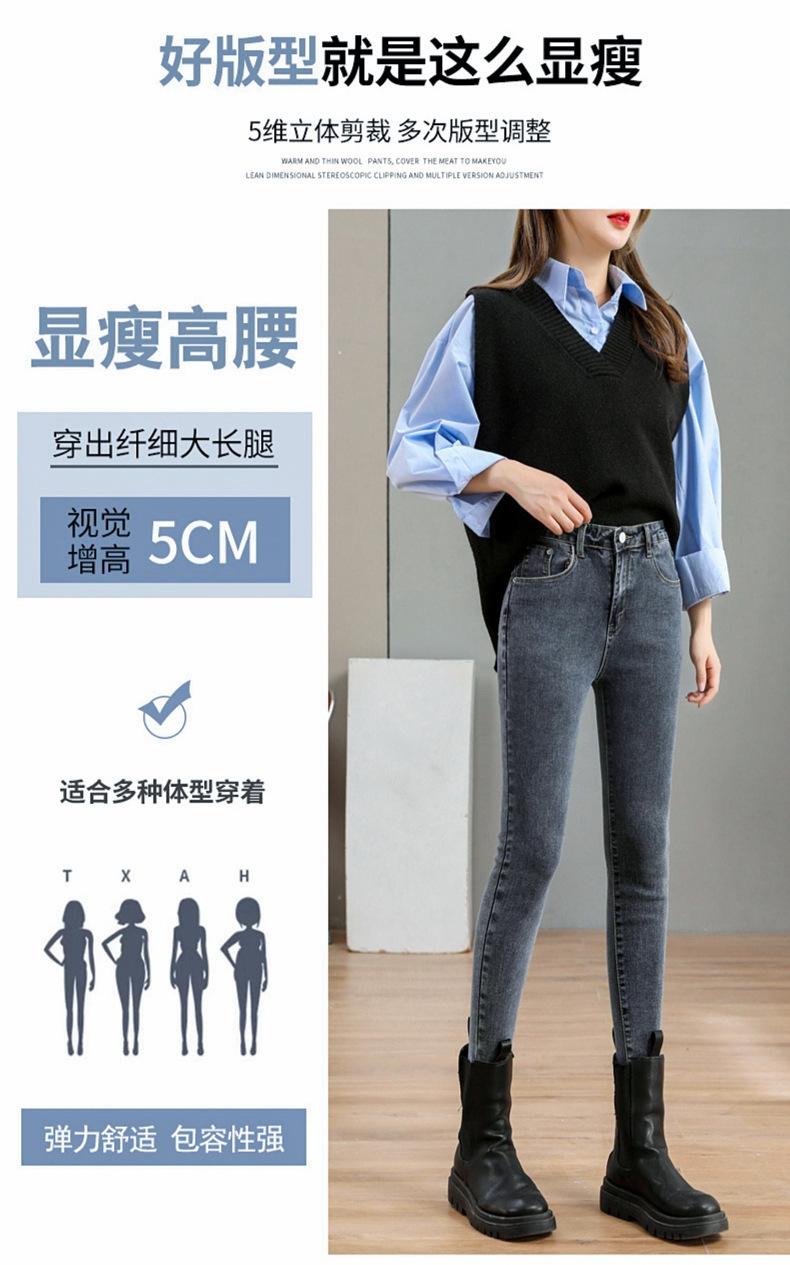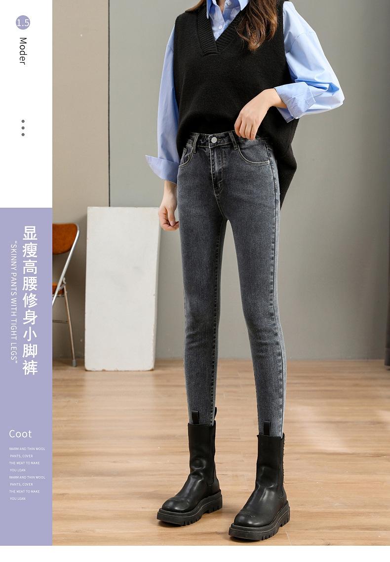 Pantalones vaqueros ajustados de otoño e invierno para mujer, estilo coreano, de talla grande, elásticos, ajustados, adelgazantes, de cintura alta, recortados