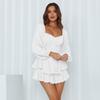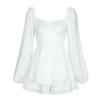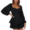 Mono Europeo y Americano de Moda Urbana con Volantes para Mujer Verano Manga Larga Farol Cuello Cuadrado Cintura Elegante Moderno Casual Pantalón Falda