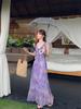 Hermoso vestido azul sin mangas con cuello estilo francés, primavera y verano 2024, elegante vestido de vacaciones en la playa.