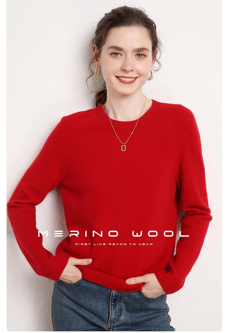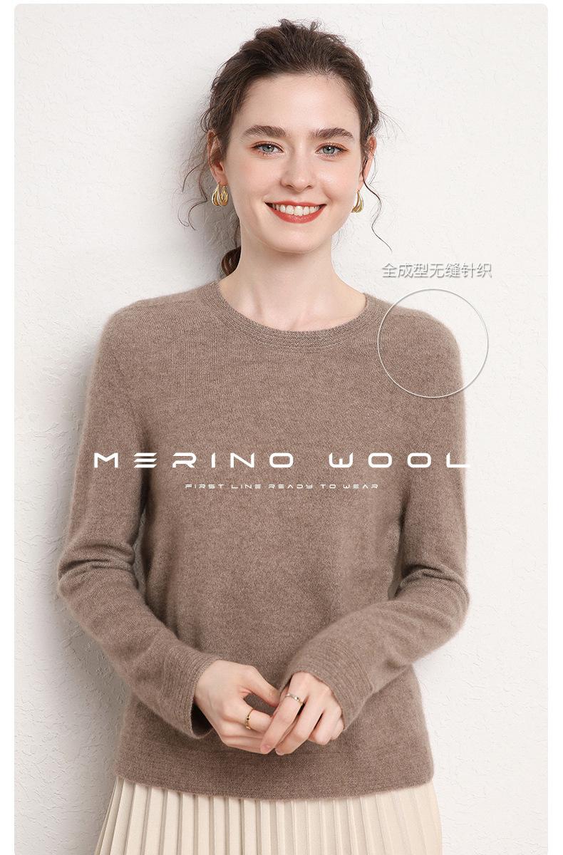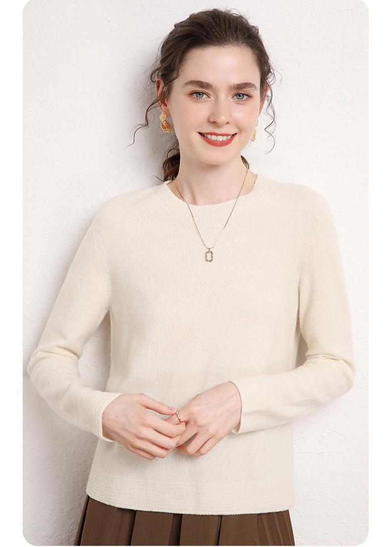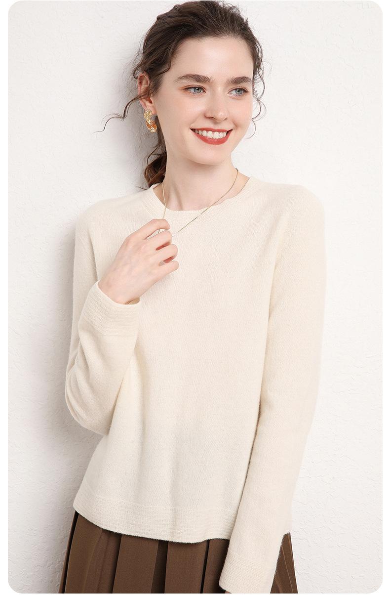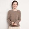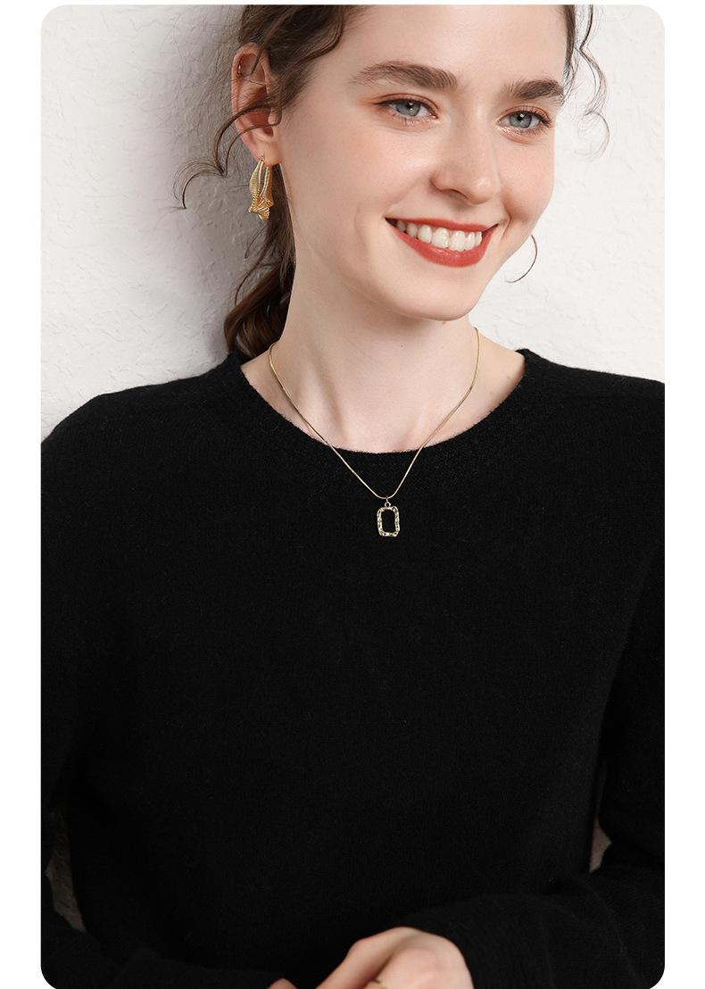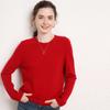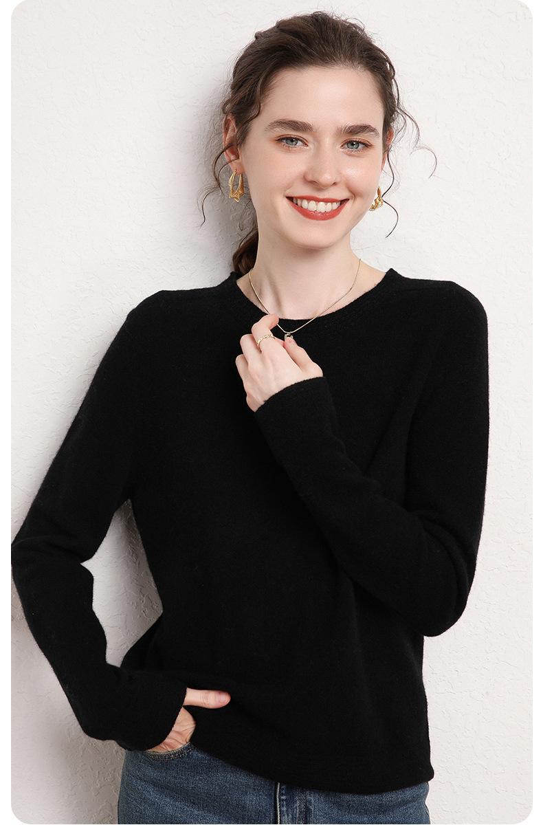 Suéter de cuello redondo de 100% lana para mujer, jersey corto de color liso, elegante, para otoño e invierno
