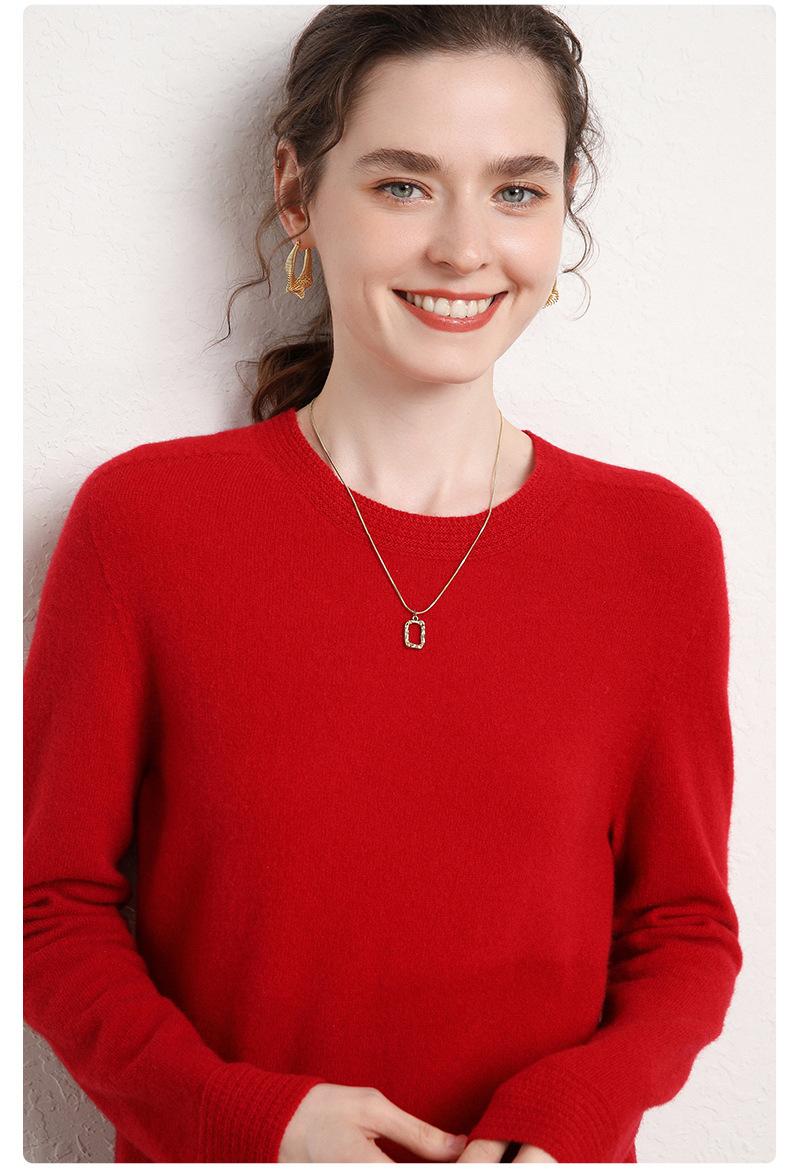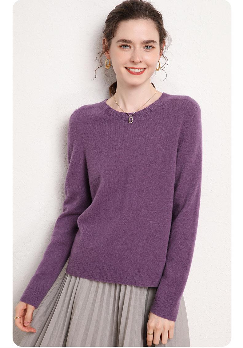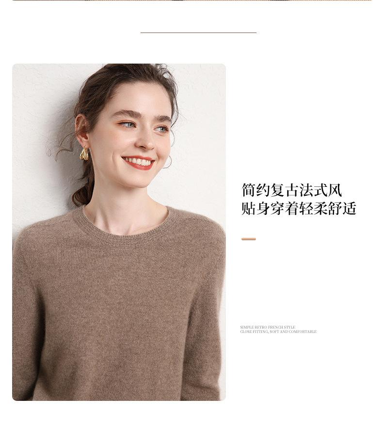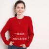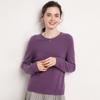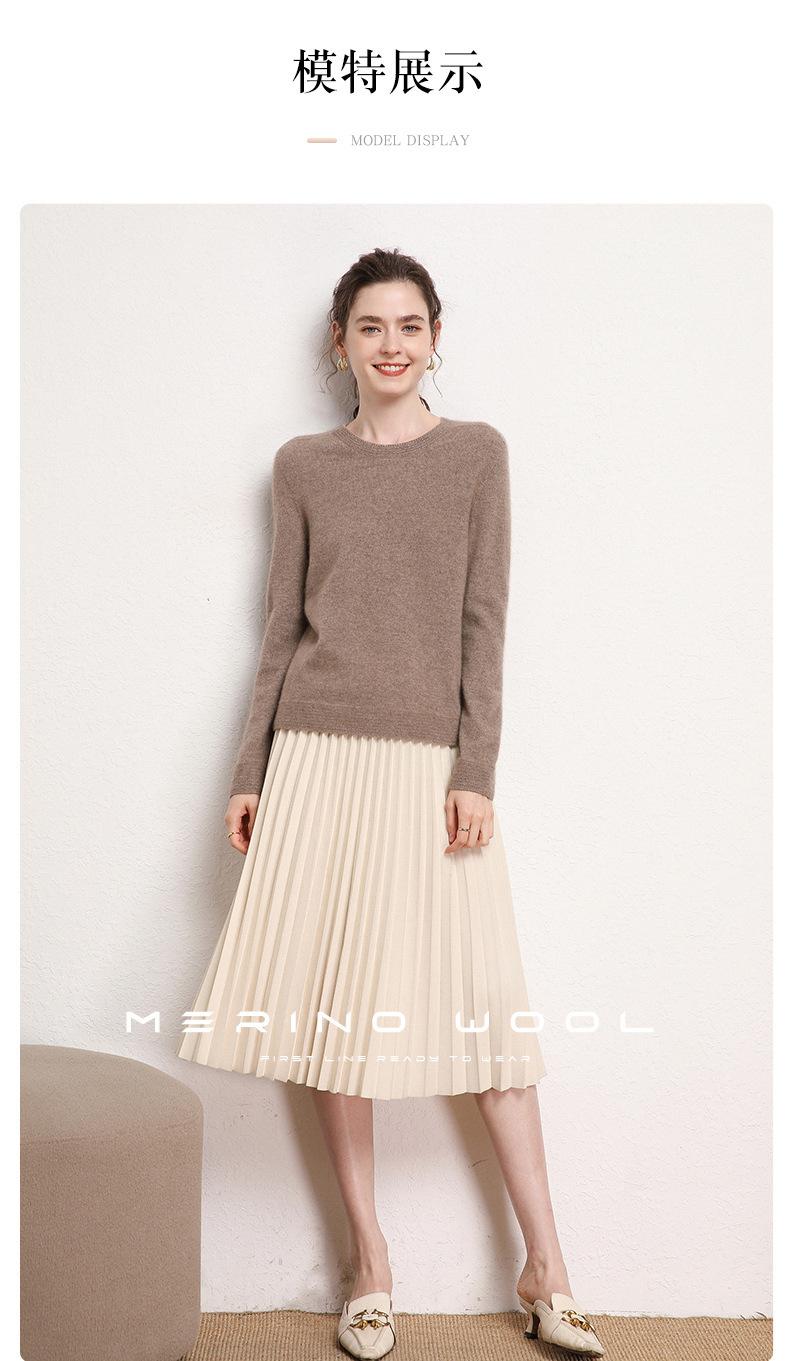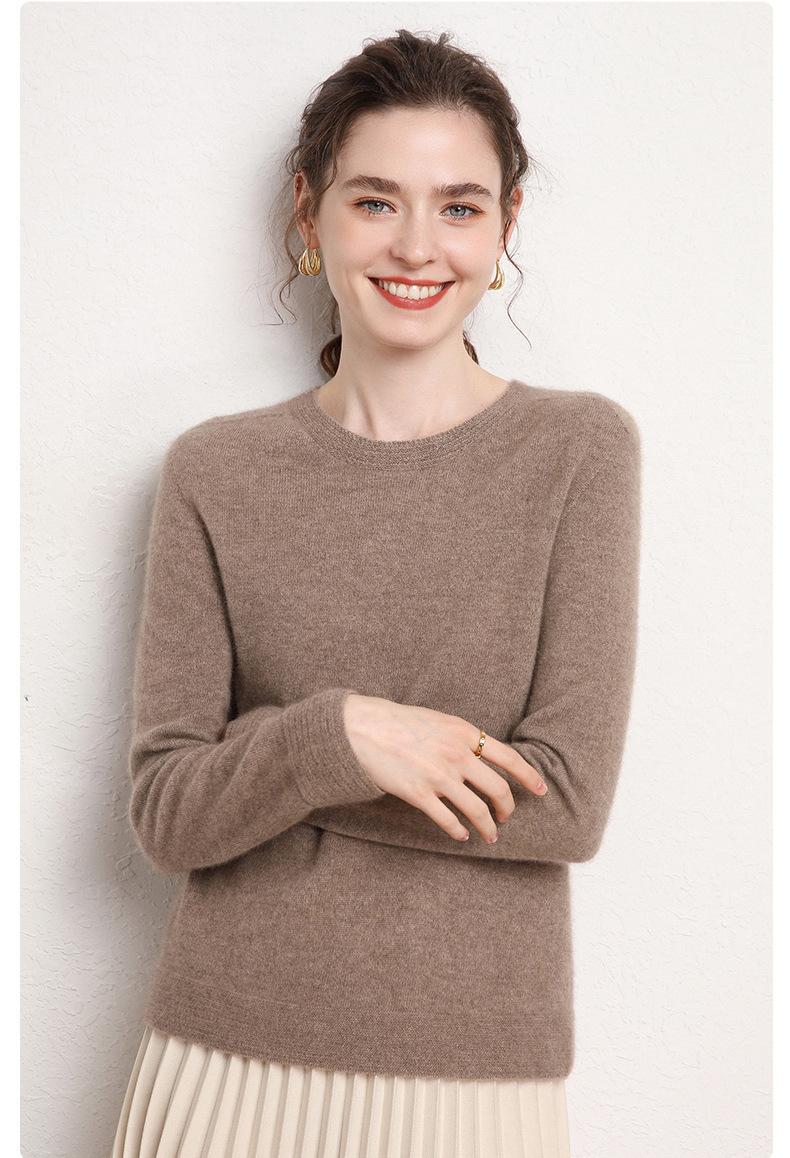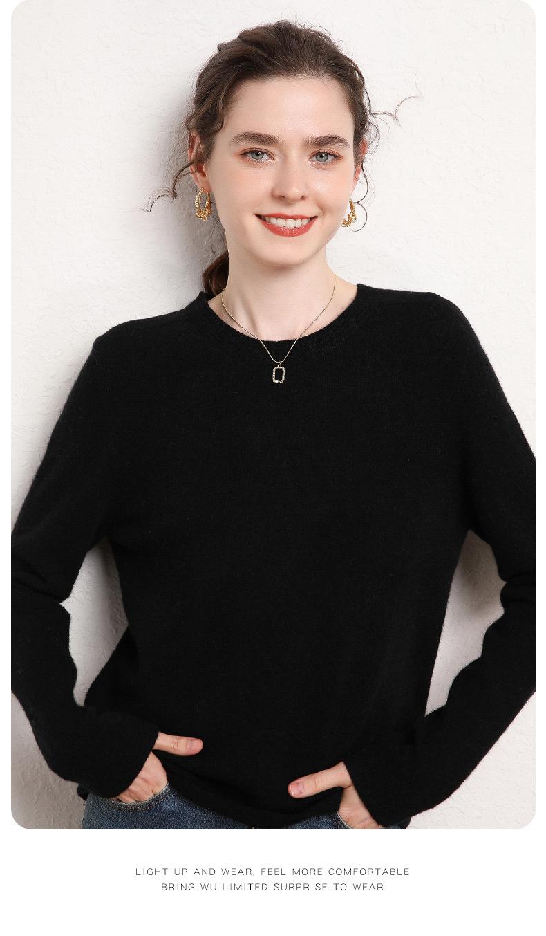 Suéter de cuello redondo de 100% lana para mujer, jersey corto de color liso, elegante, para otoño e invierno