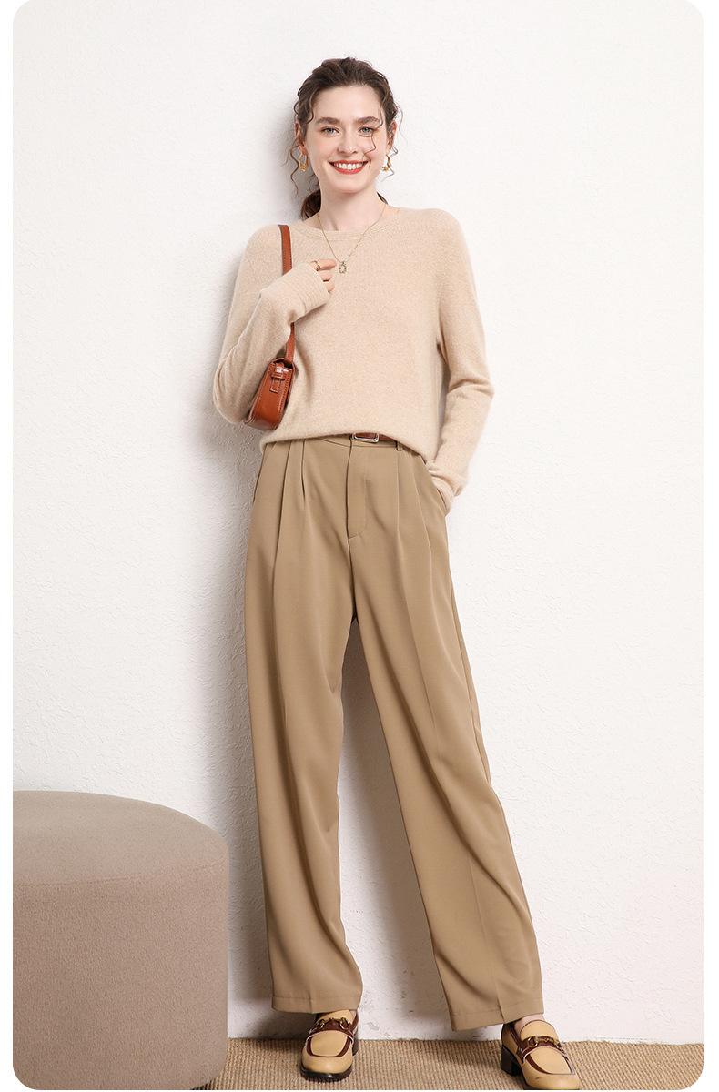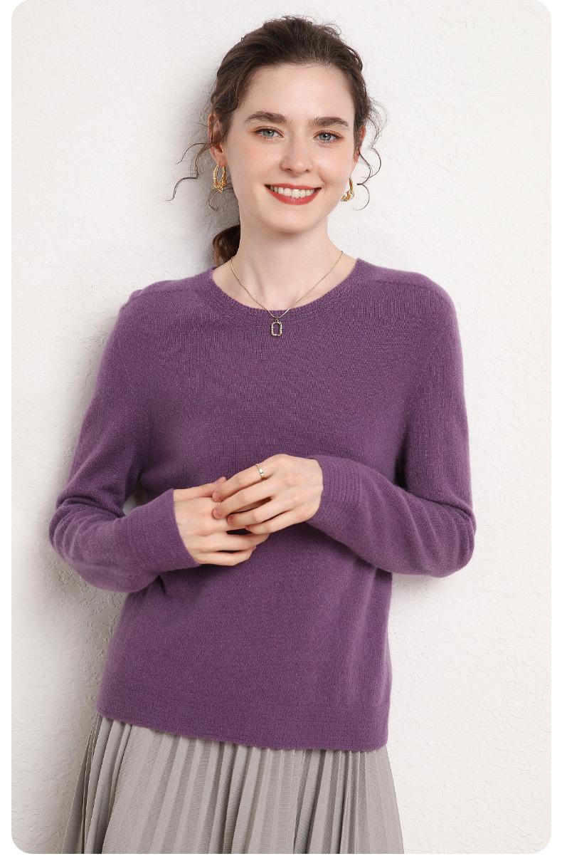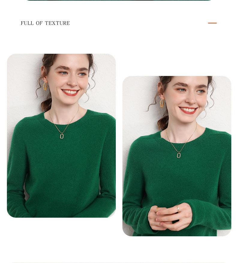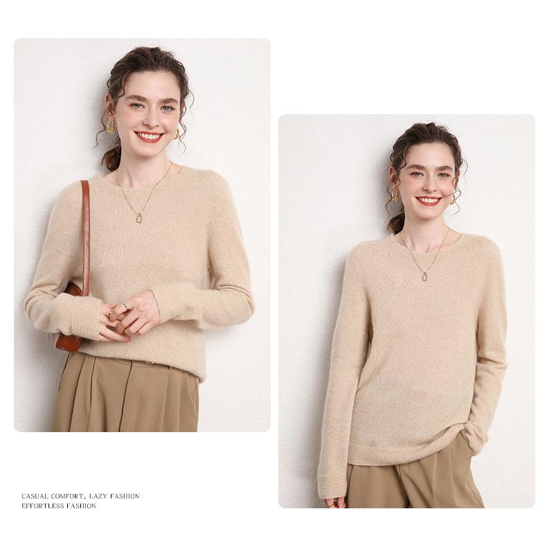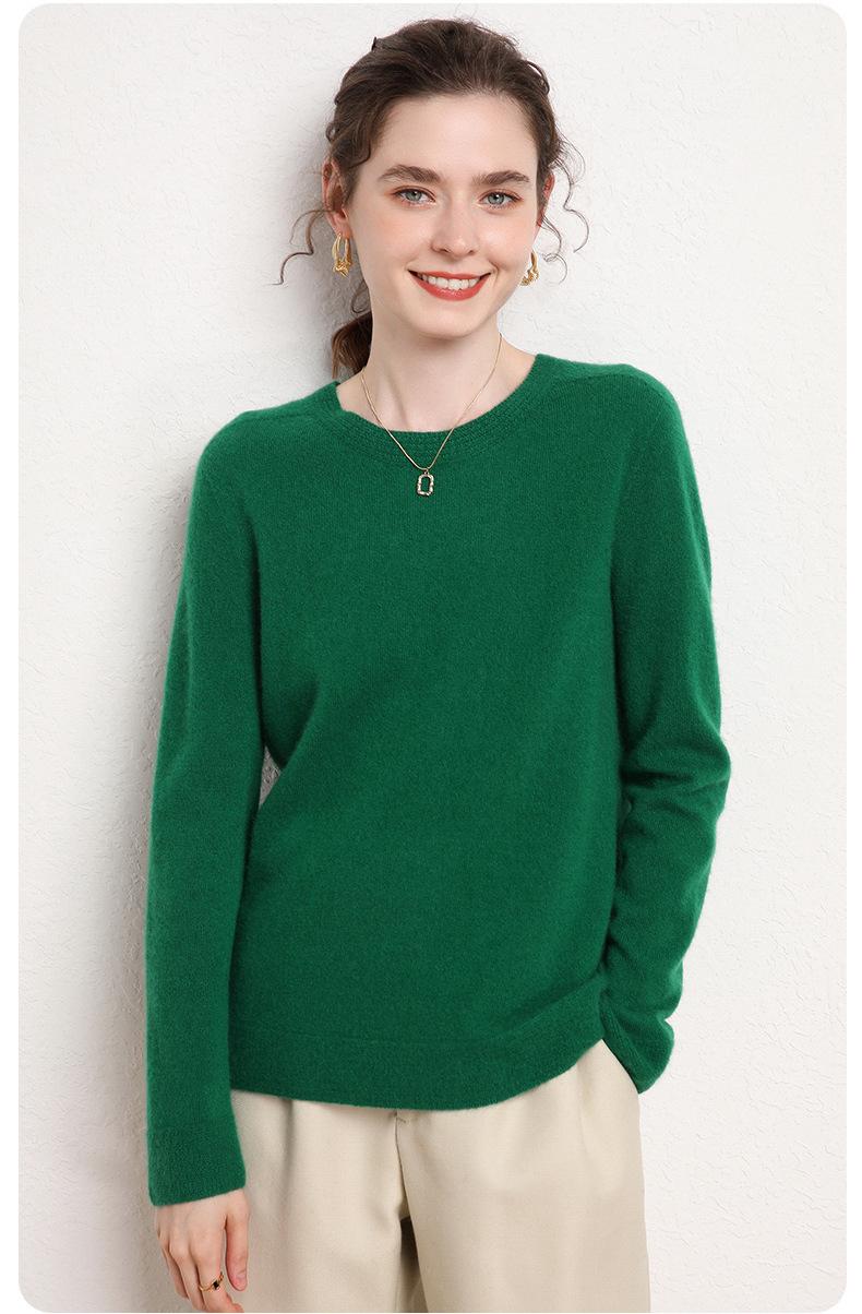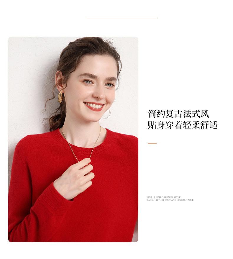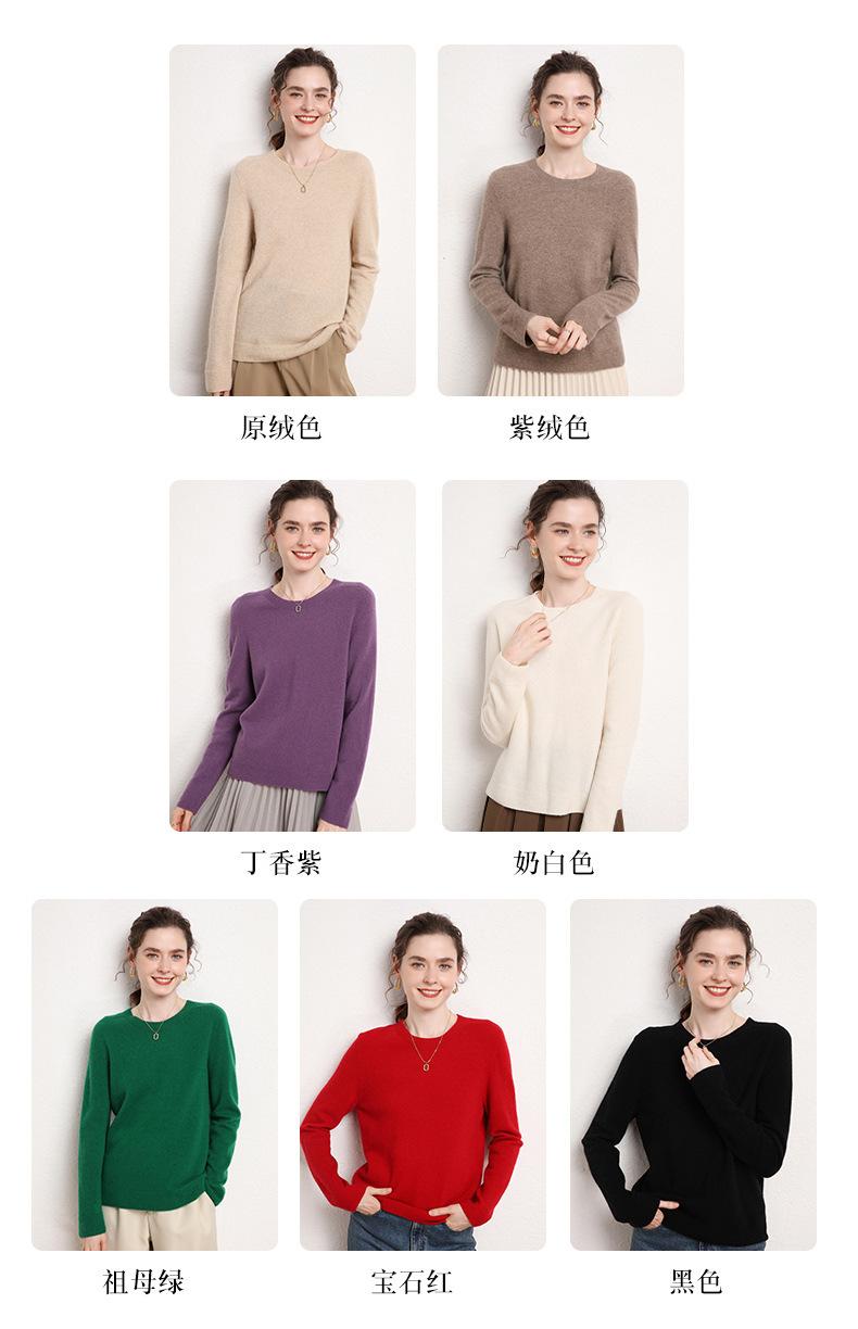 Suéter de cuello redondo de 100% lana para mujer, jersey corto de color liso, elegante, para otoño e invierno