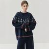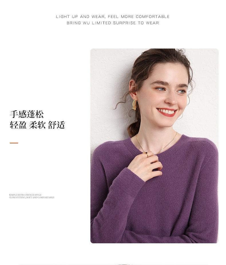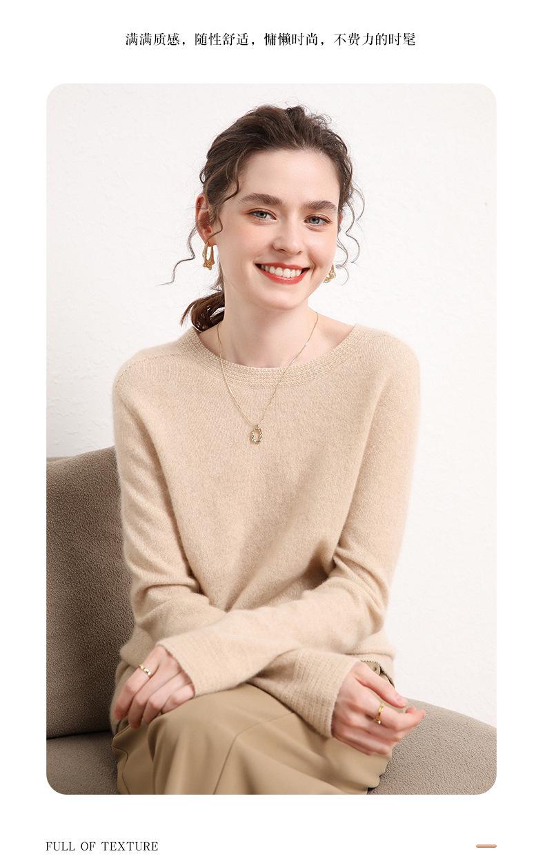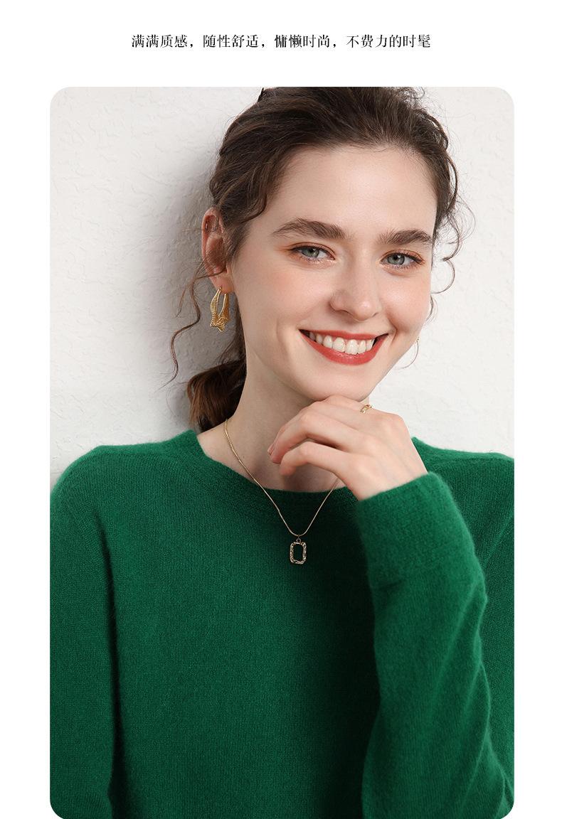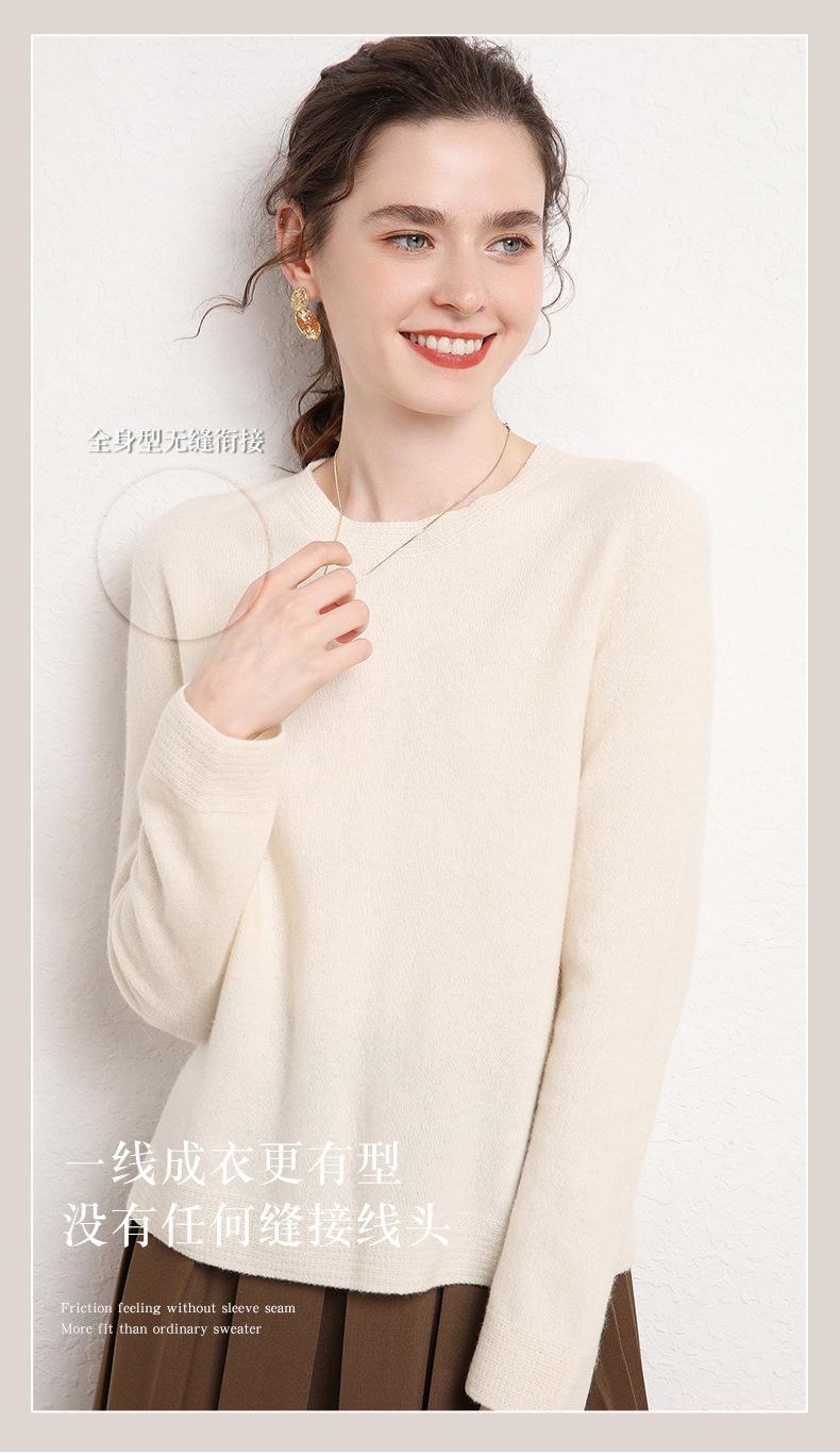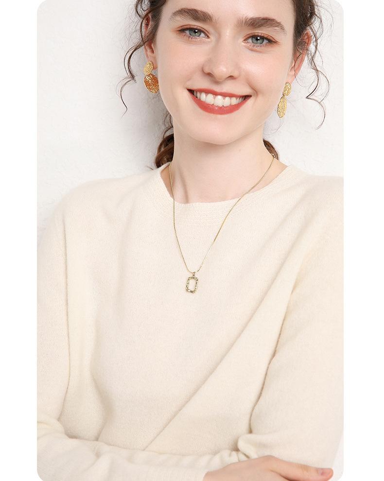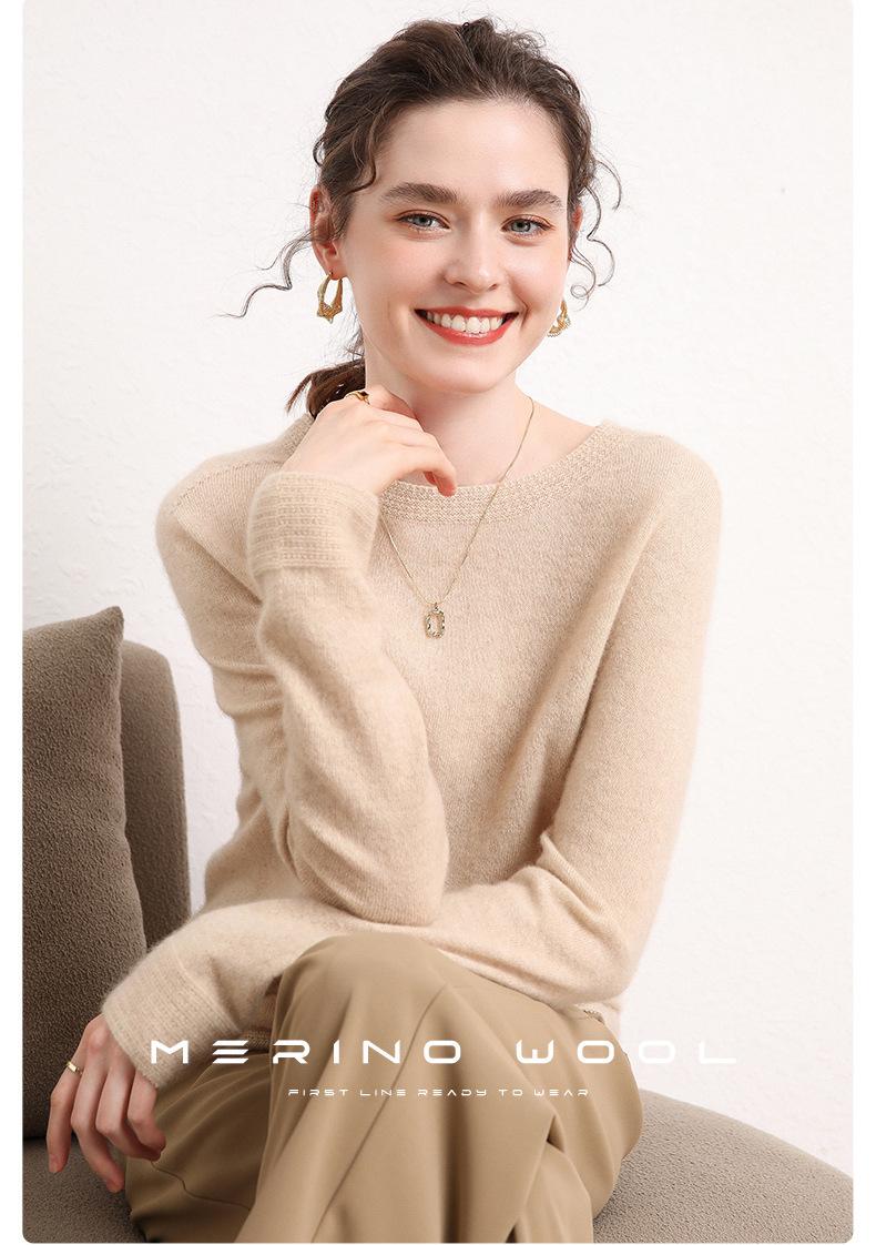 Suéter de cuello redondo de 100% lana para mujer, jersey corto de color liso, elegante, para otoño e invierno