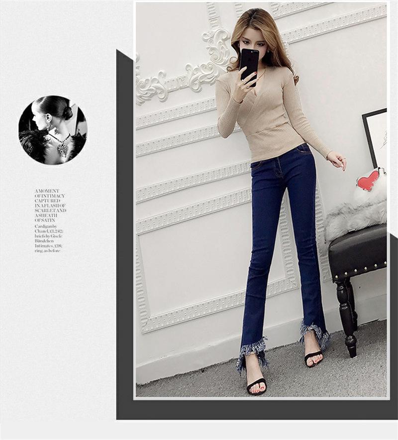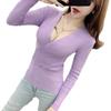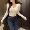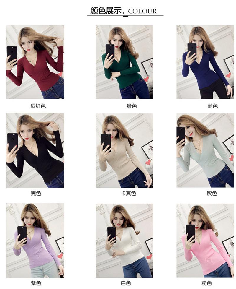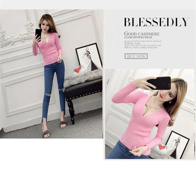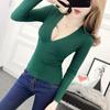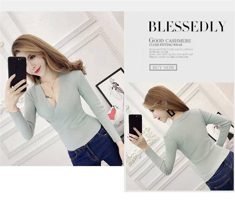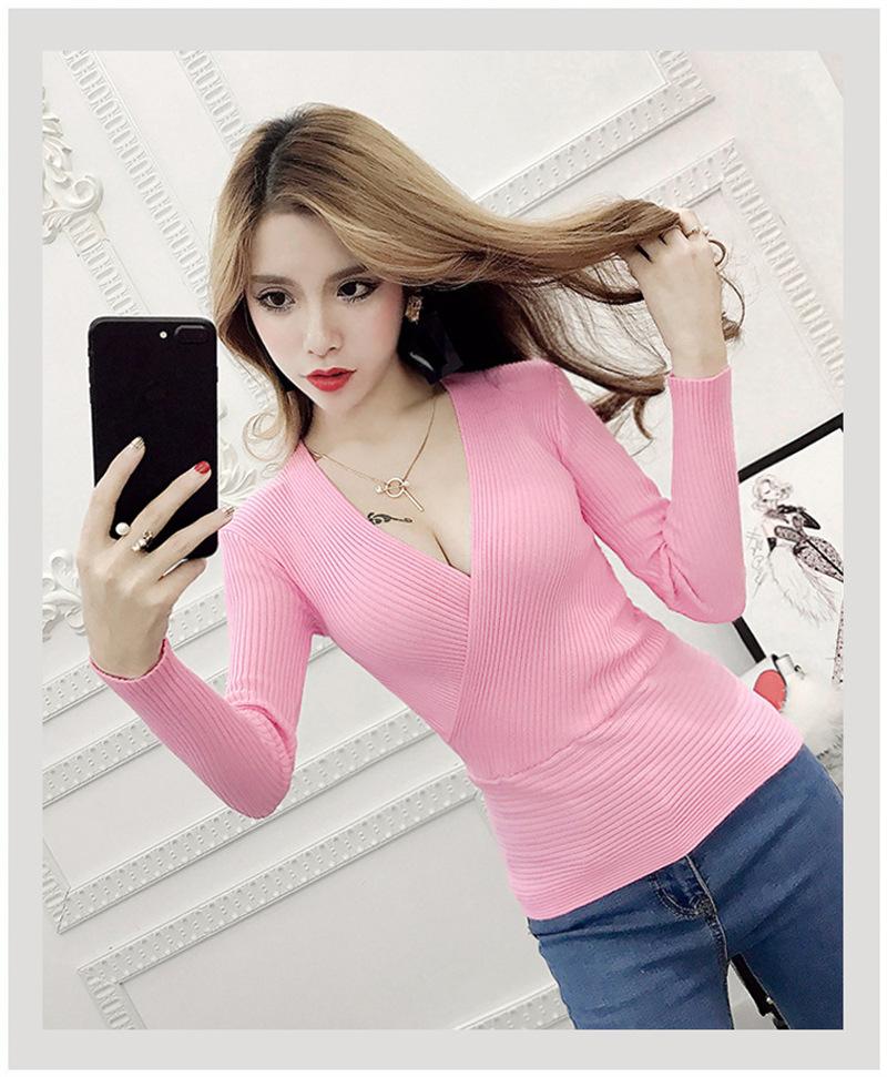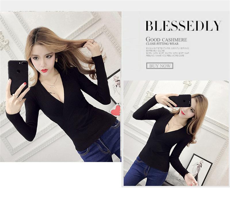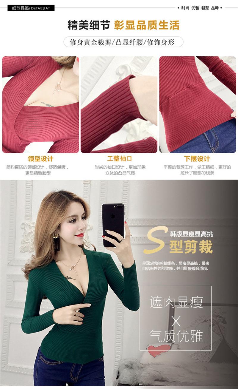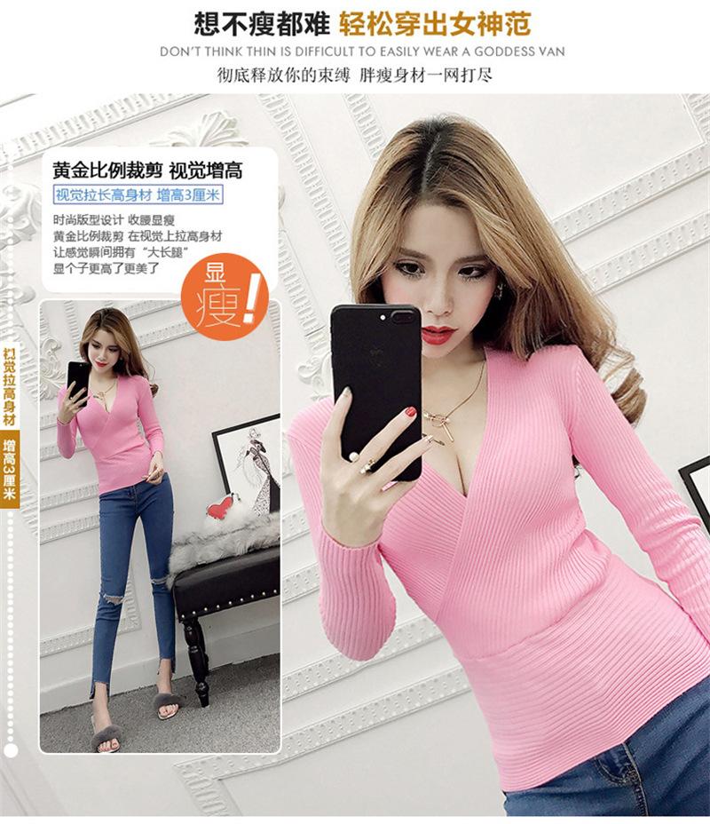 Suéter de punto de manga larga ajustado y escotado con cuello en V cruzado de color sólido sexy para otoño e invierno para mujer