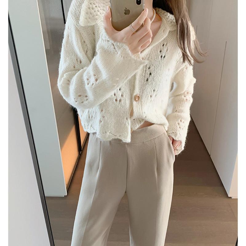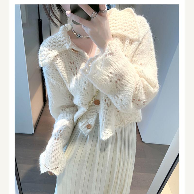 2022 Principios de Otoño Nuevo Estilo Perezoso Chaqueta Cárdigan de Punto Suéter Holgado Calado para Mujer