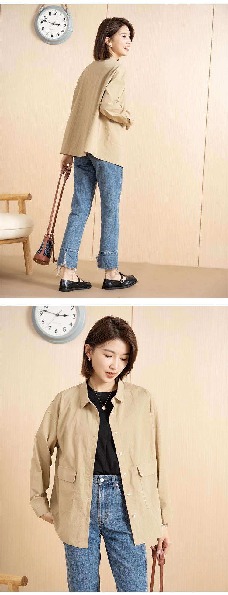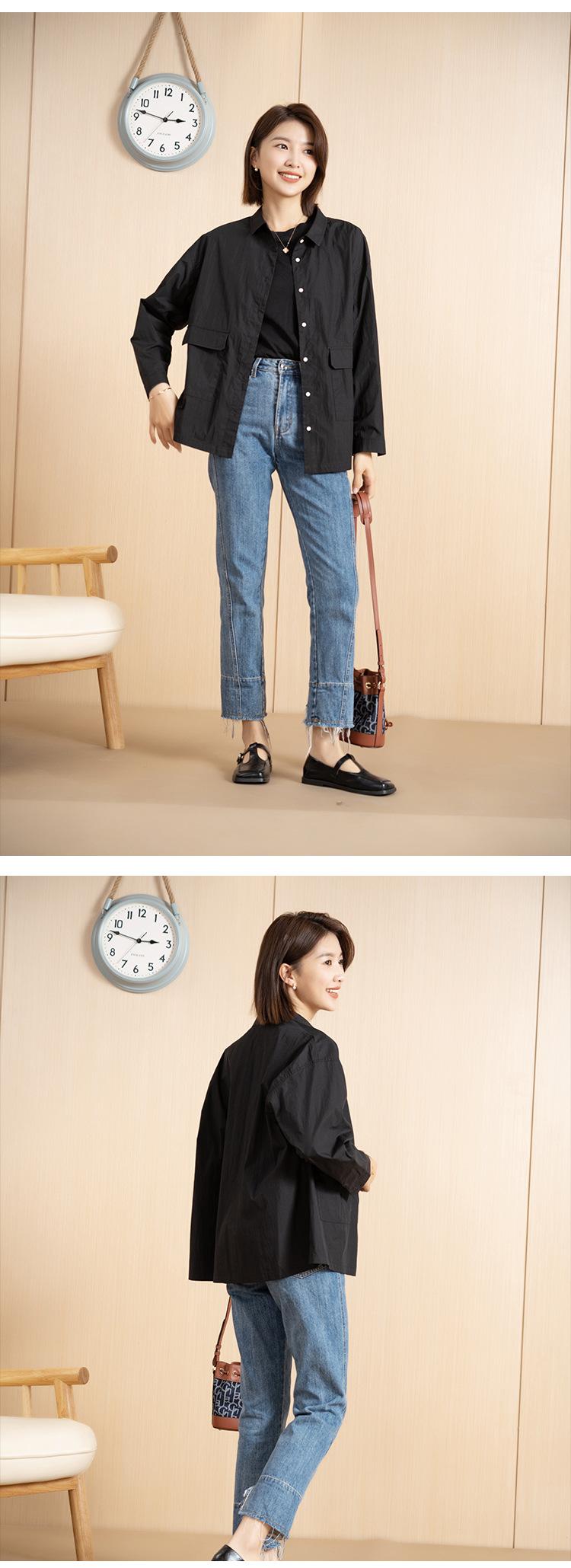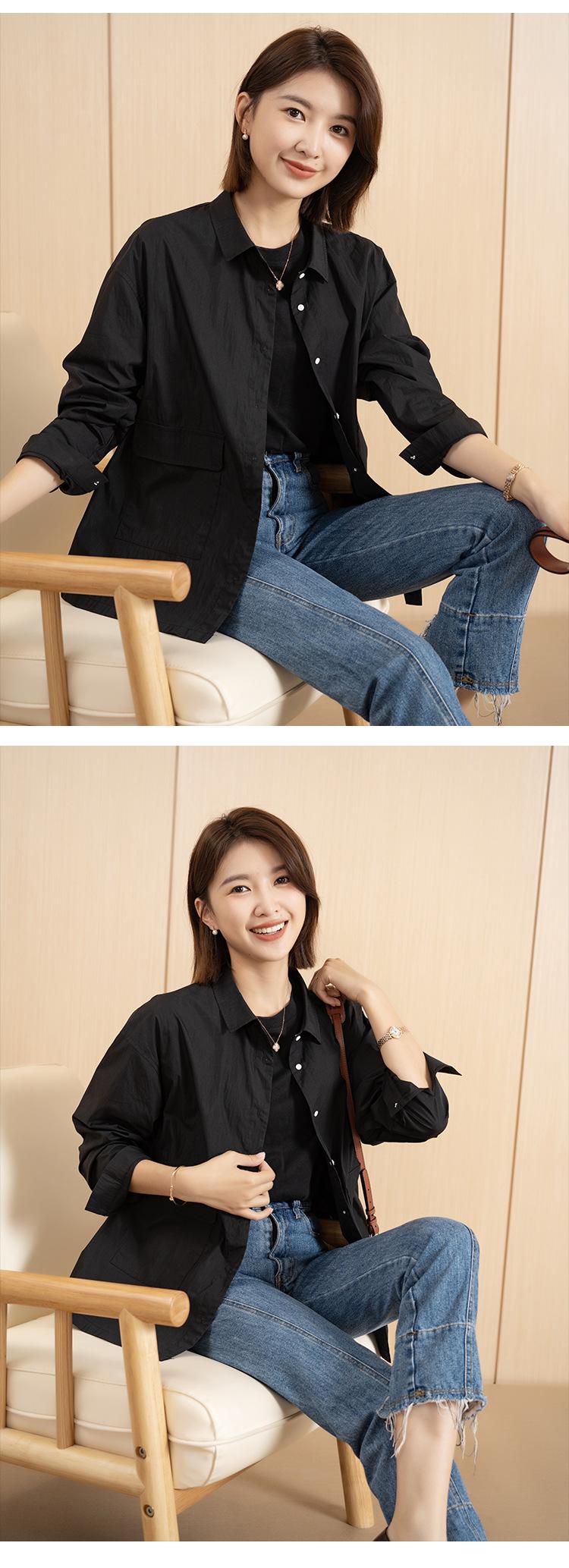 Yun Abrigo Negro para Mujer Estilo Ropa de Trabajo de Primavera Camisa Corta Moderna Elegante Ropa de Trabajo Estilo Coreano Casual Solapa Top