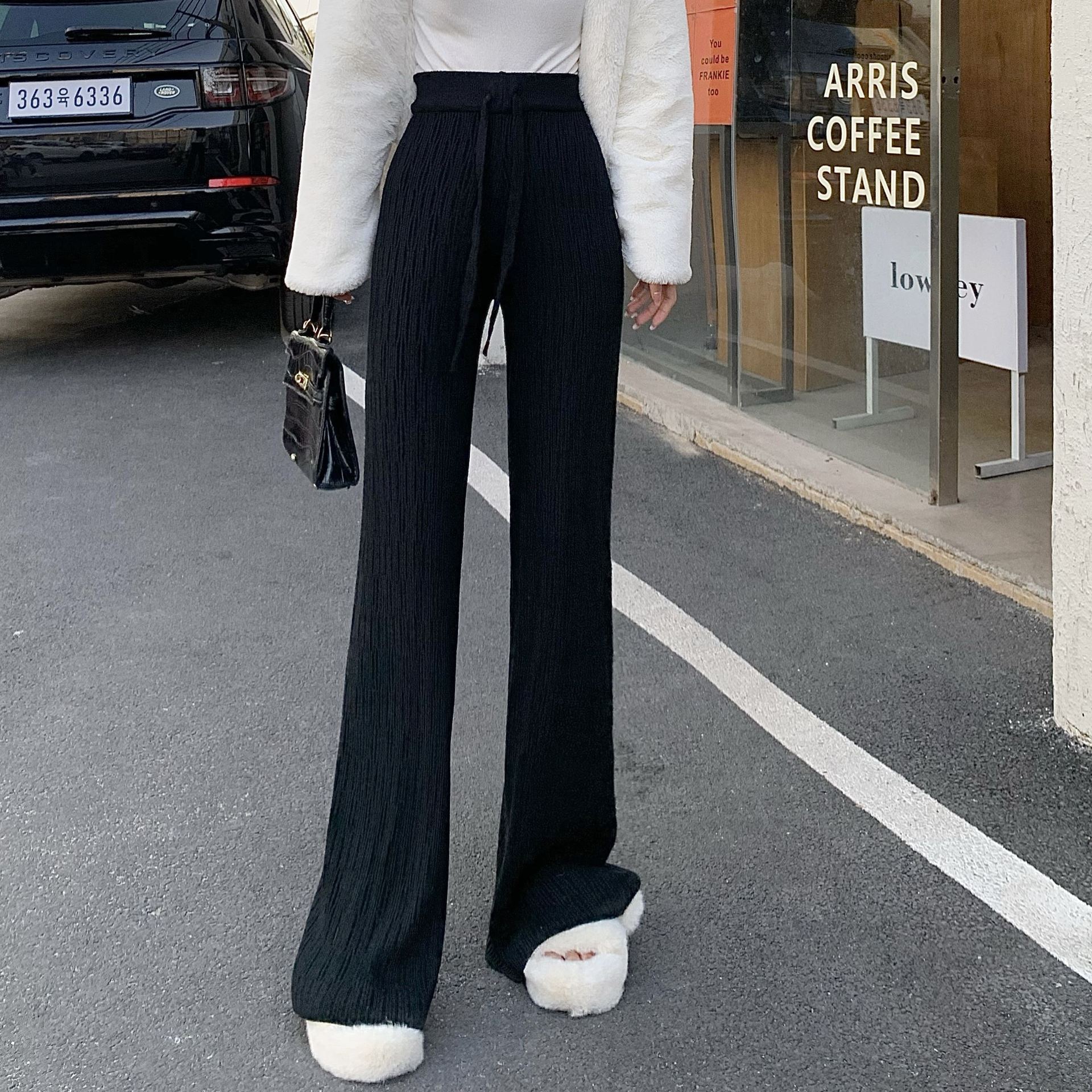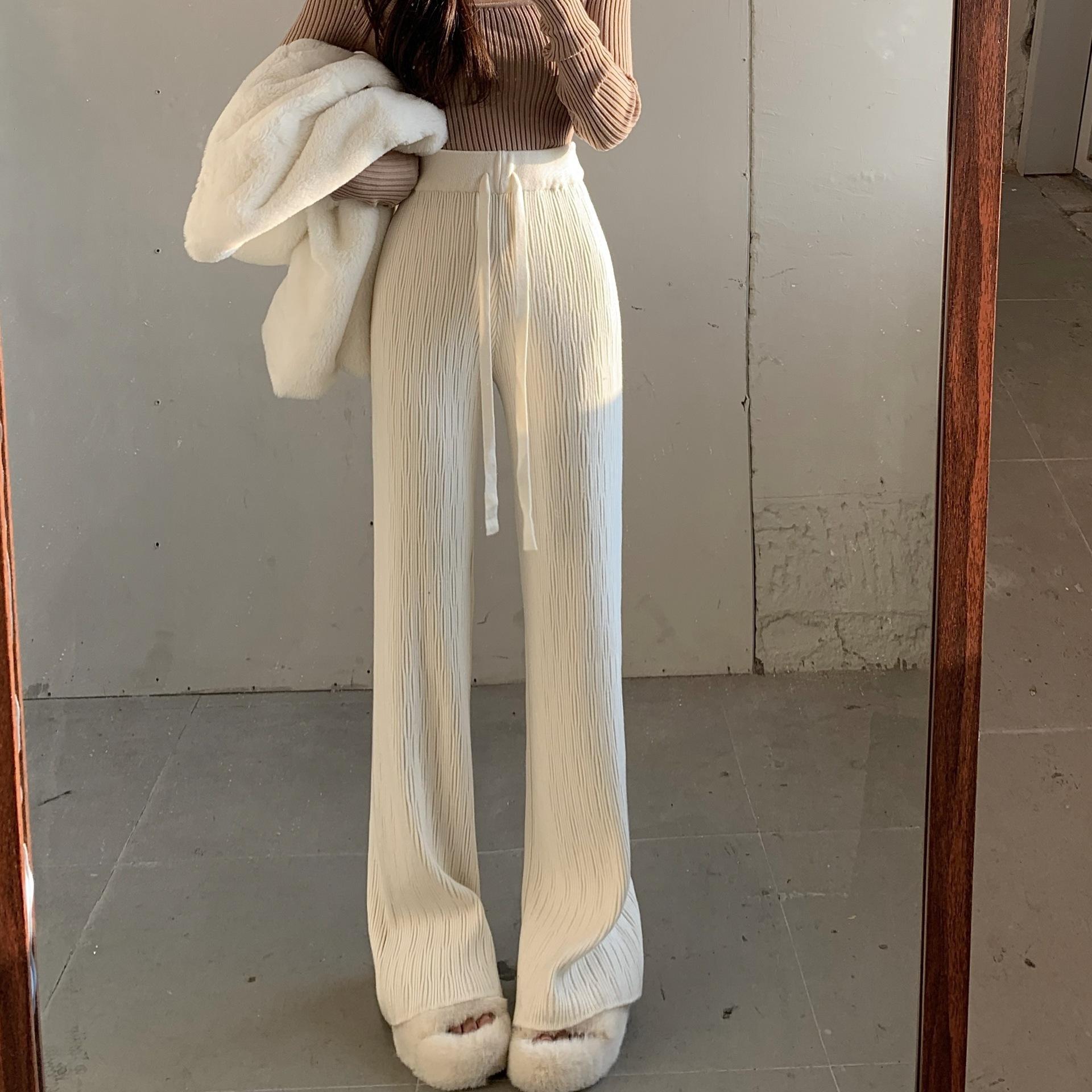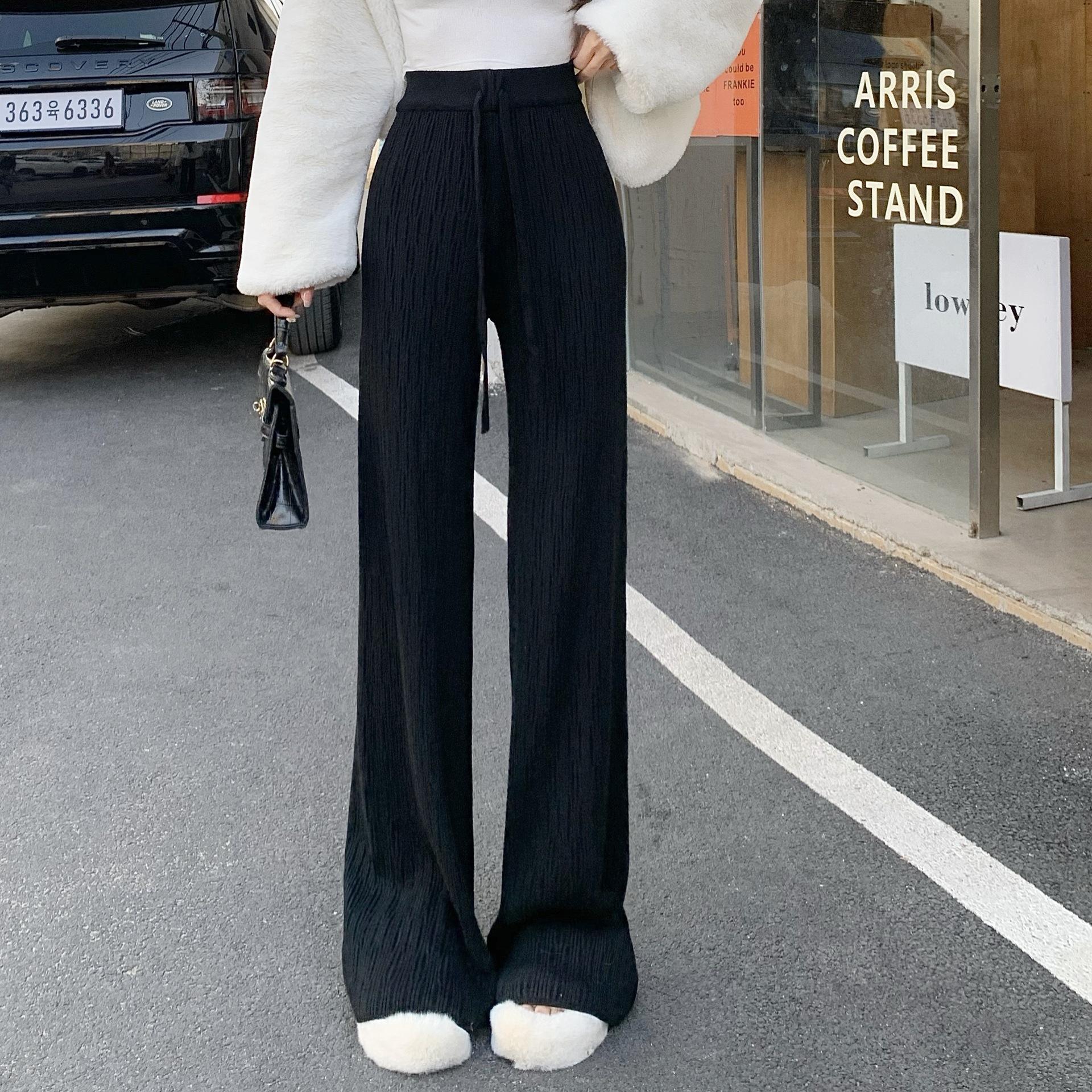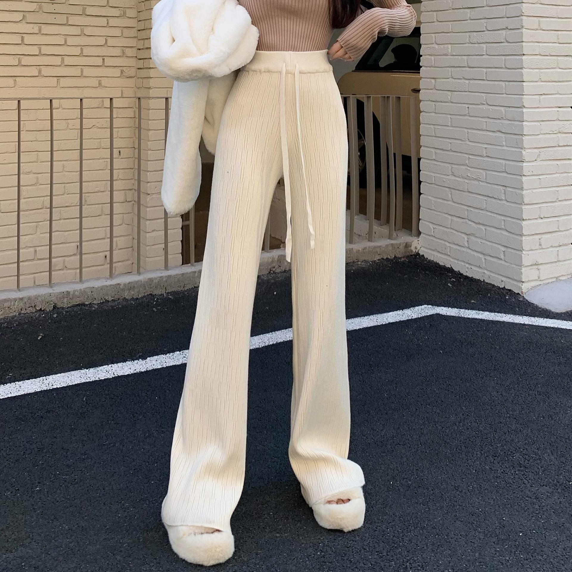 Pantalones anchos de punto Design Sense 2024 para mujer, pantalones casuales altos de primavera y otoño, pantalones acampanados modernos y holgados.
