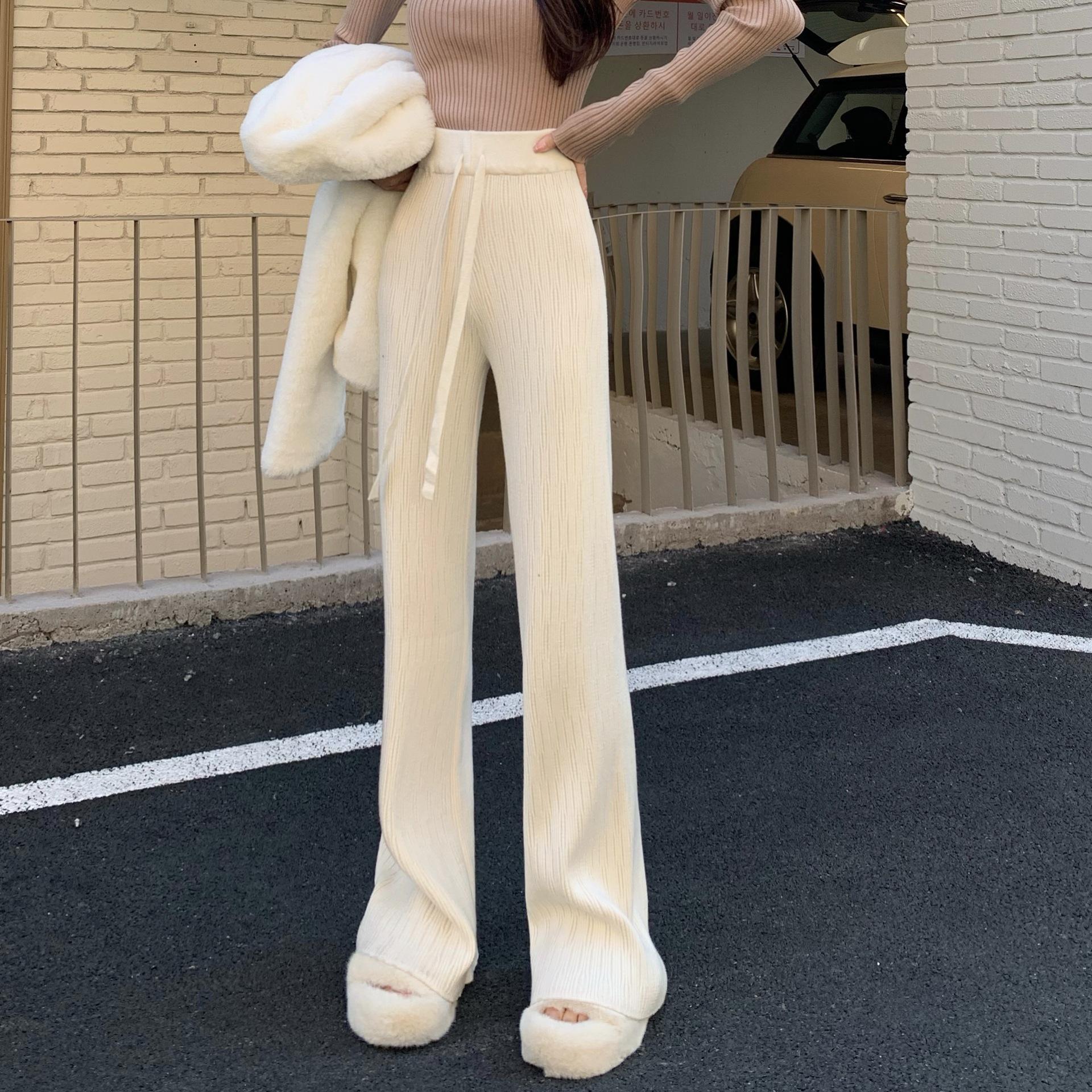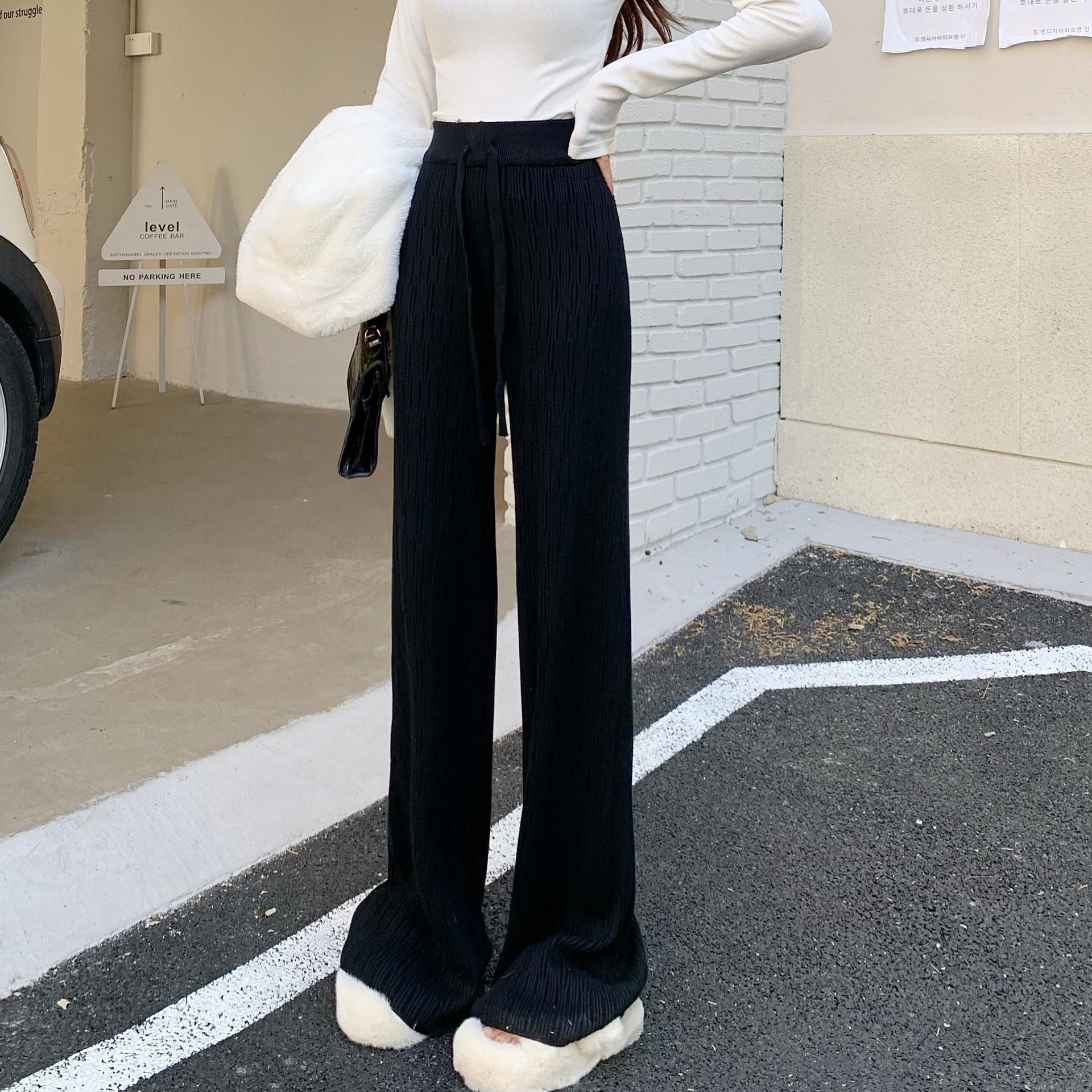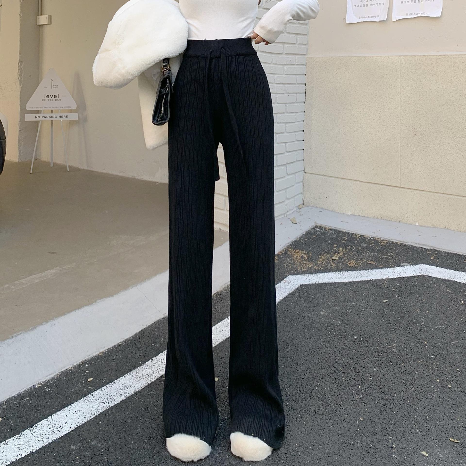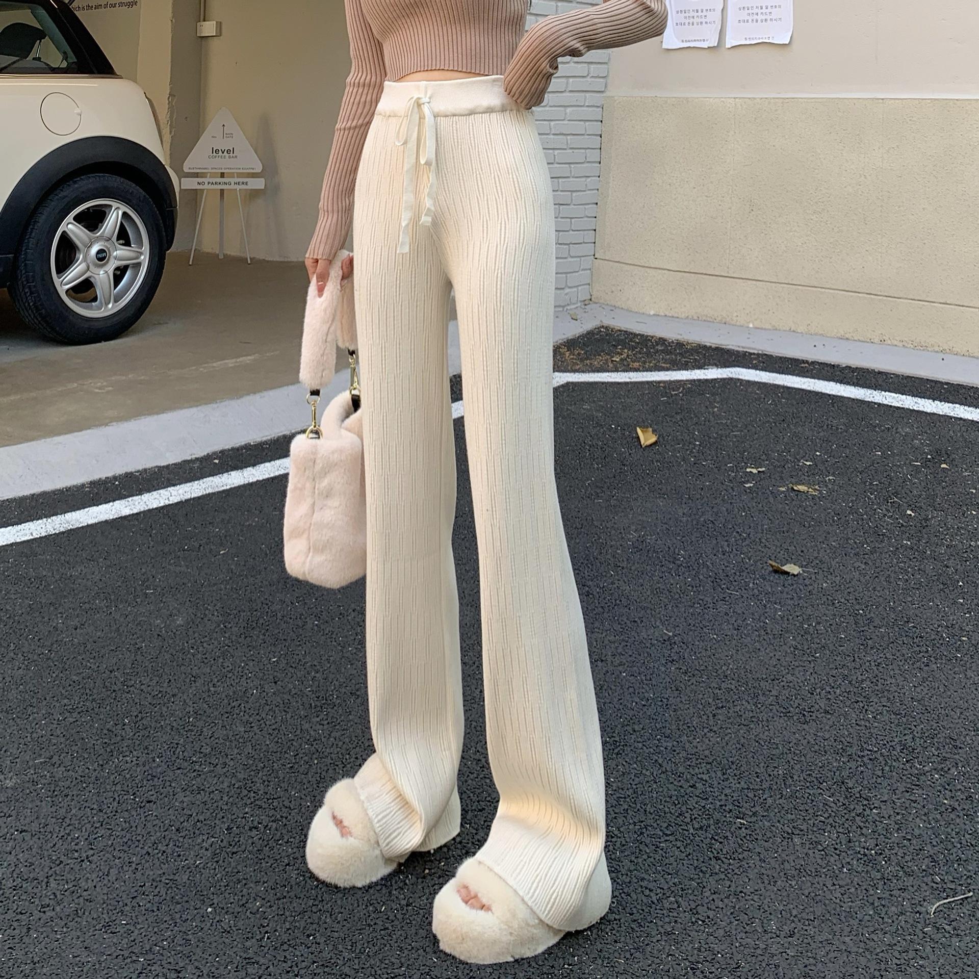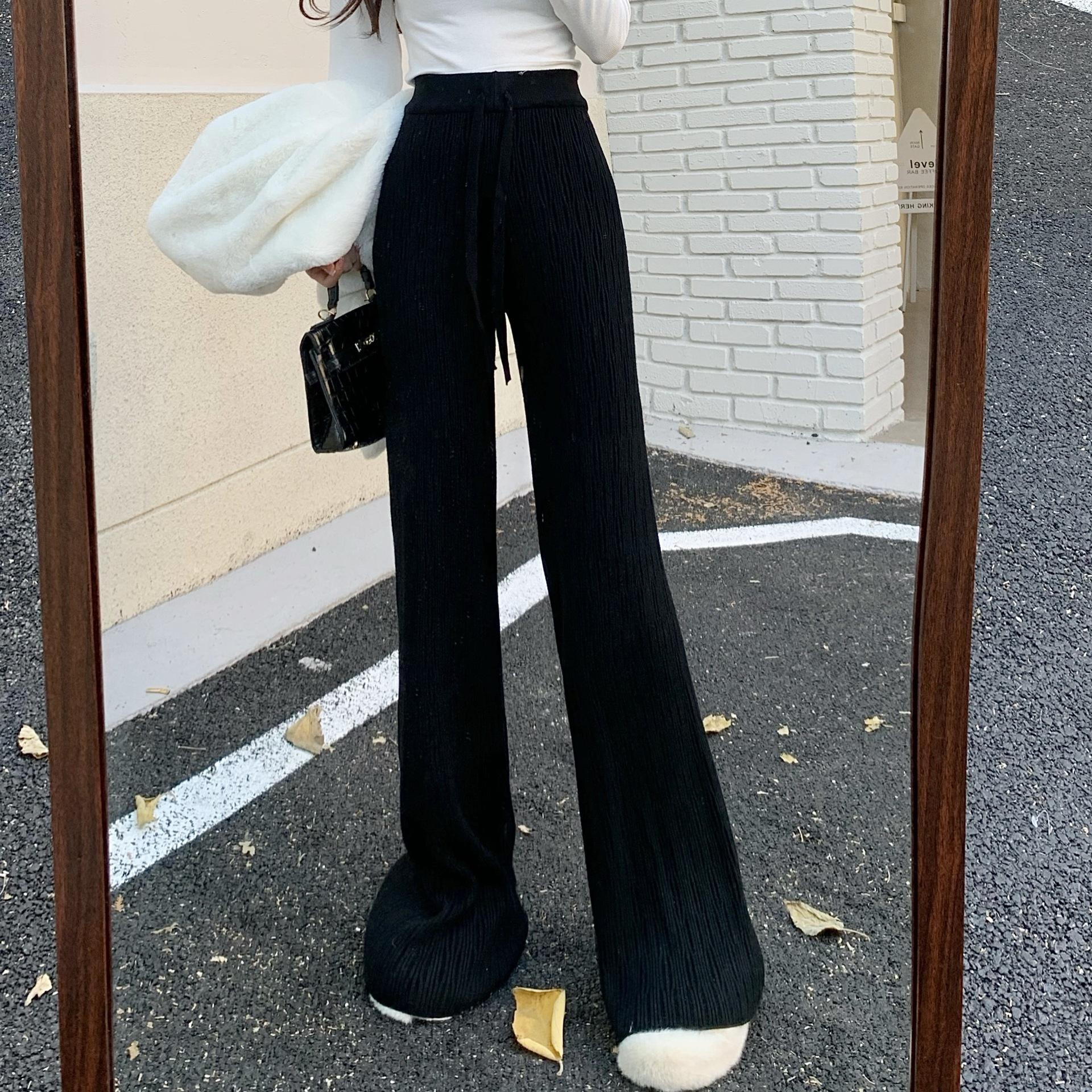 Pantalones anchos de punto Design Sense 2024 para mujer, pantalones casuales altos de primavera y otoño, pantalones acampanados modernos y holgados.