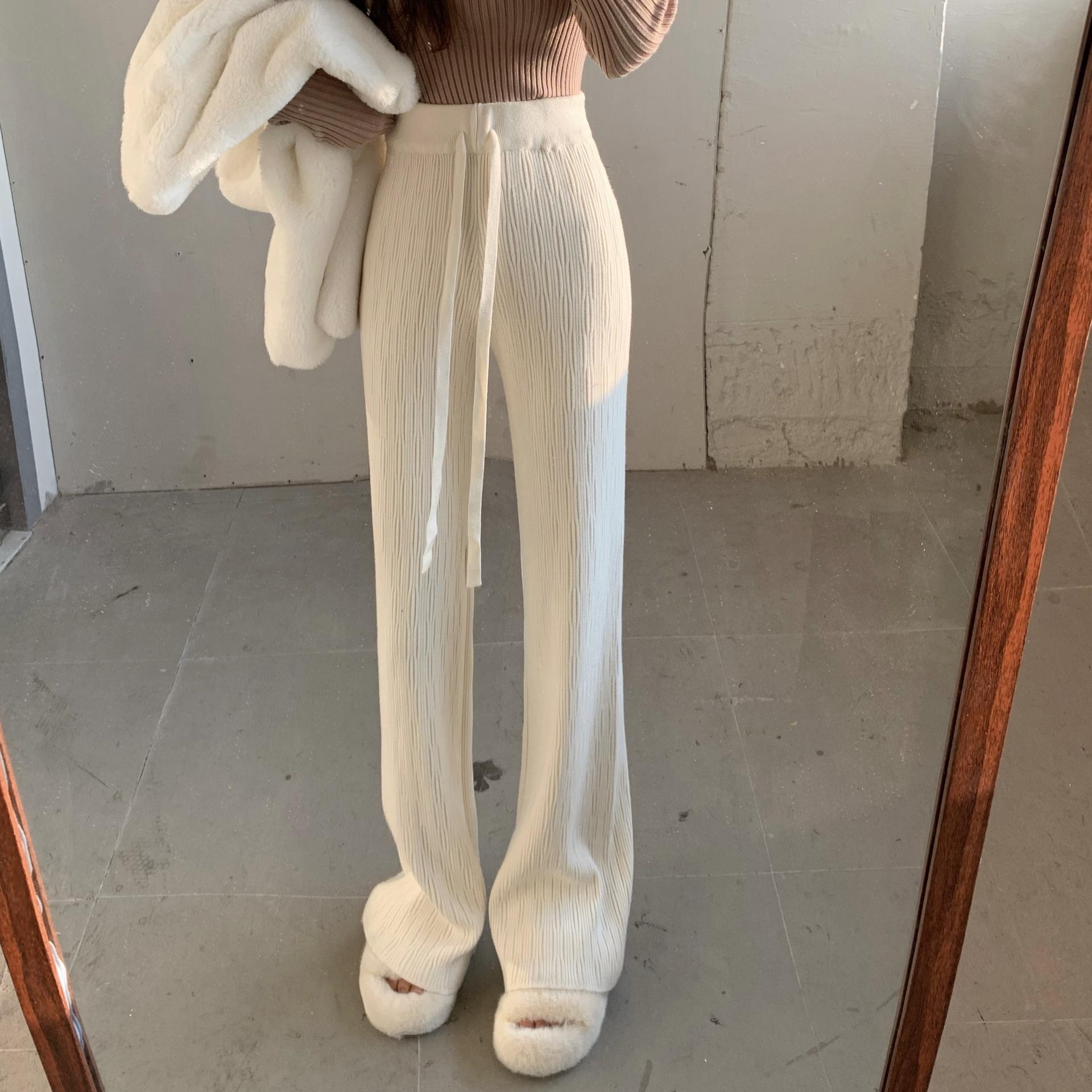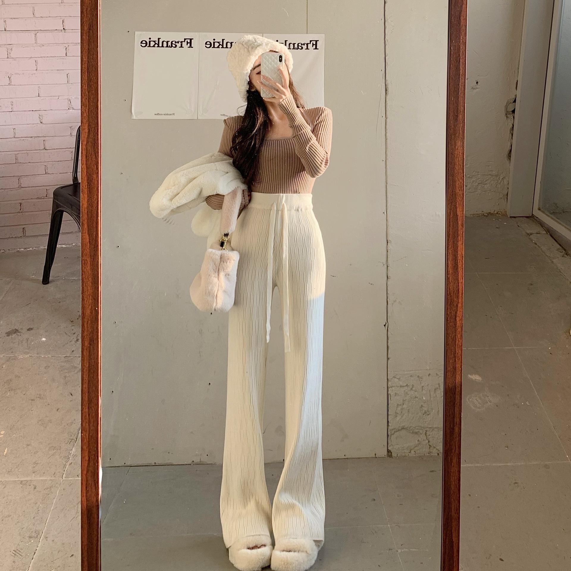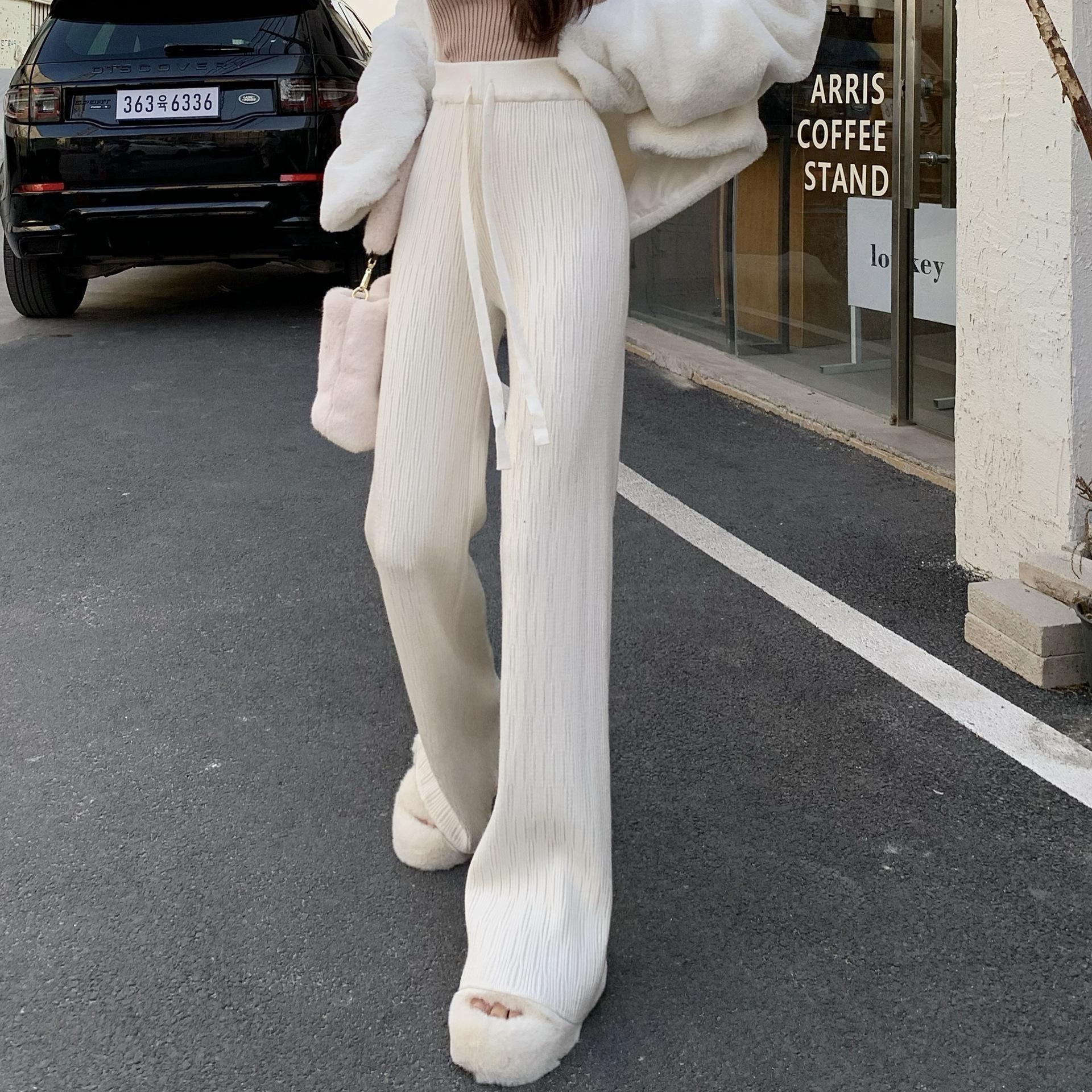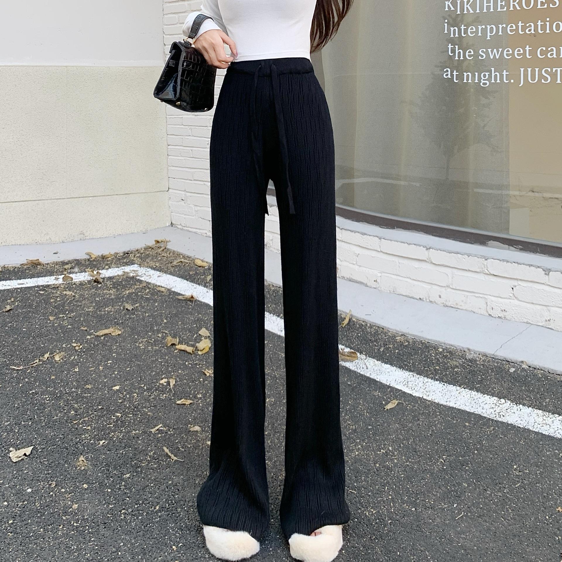 Pantalones anchos de punto Design Sense 2024 para mujer, pantalones casuales altos de primavera y otoño, pantalones acampanados modernos y holgados.