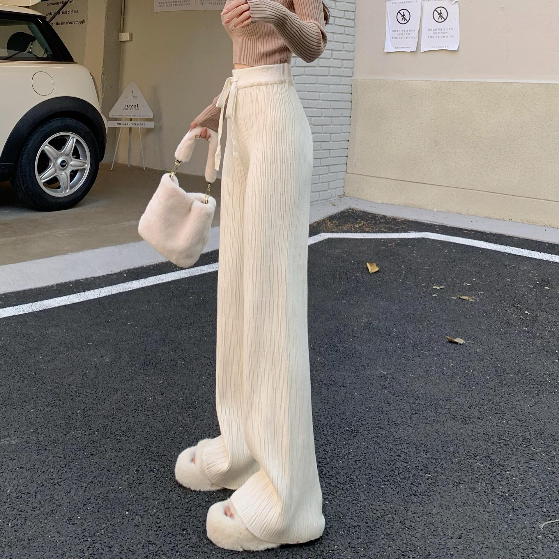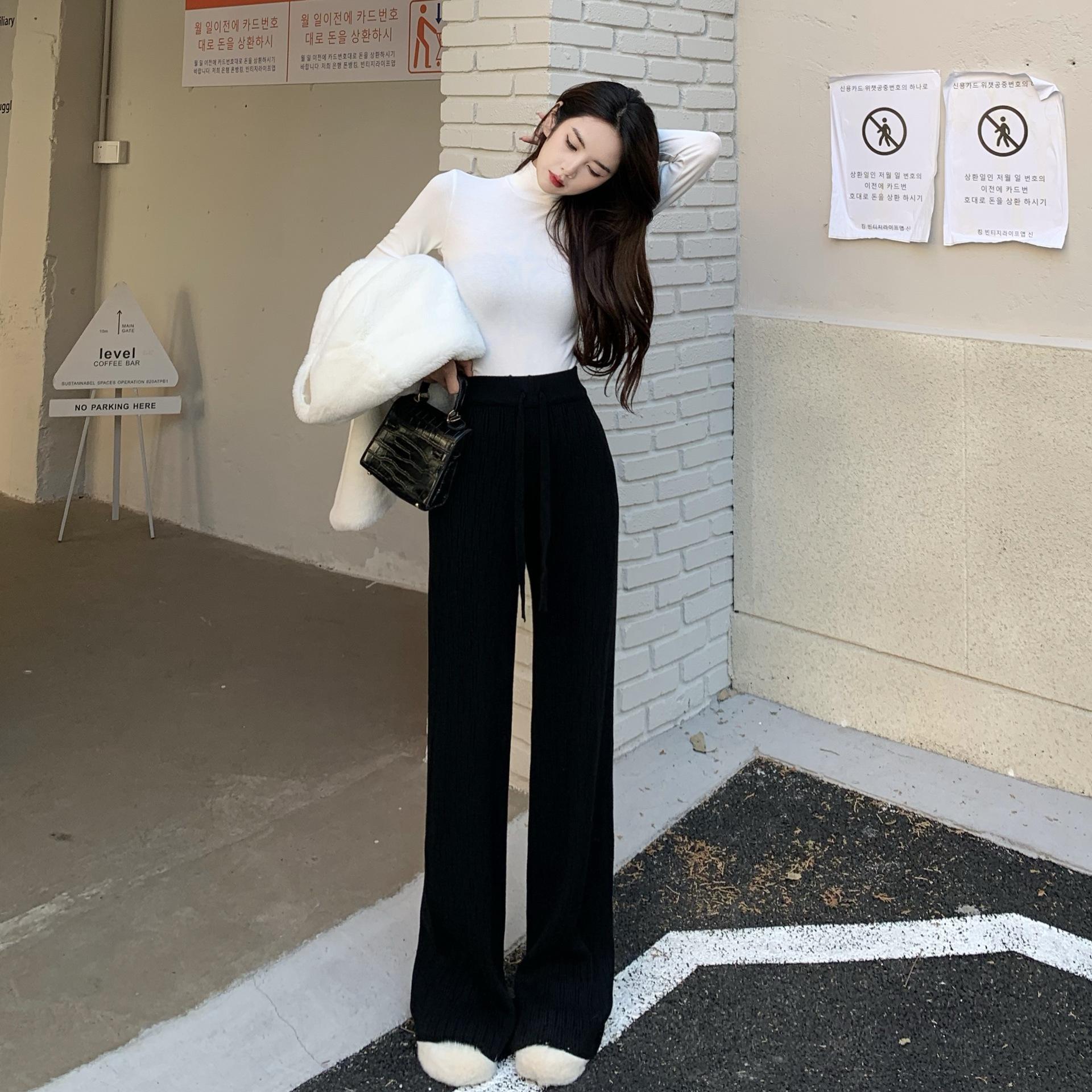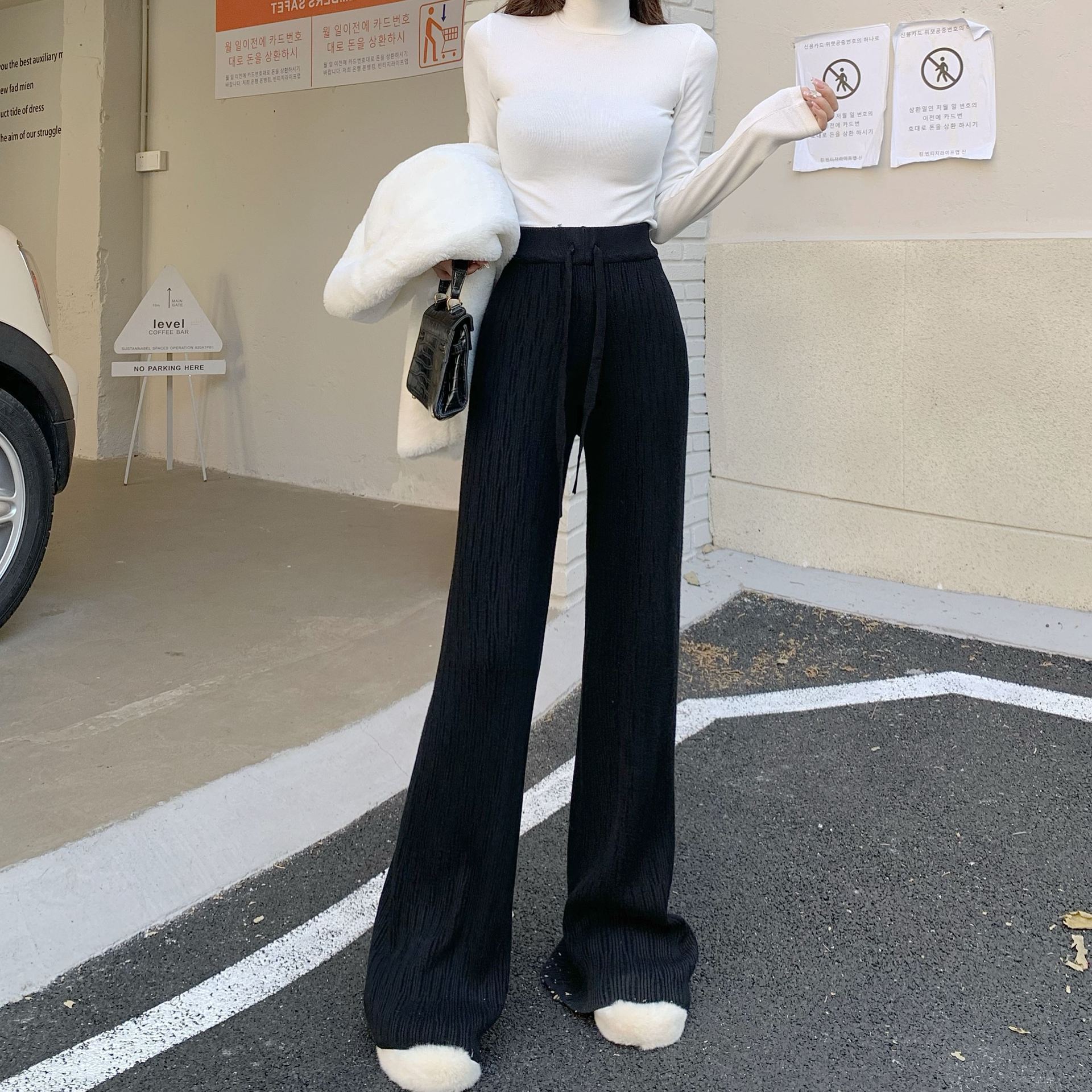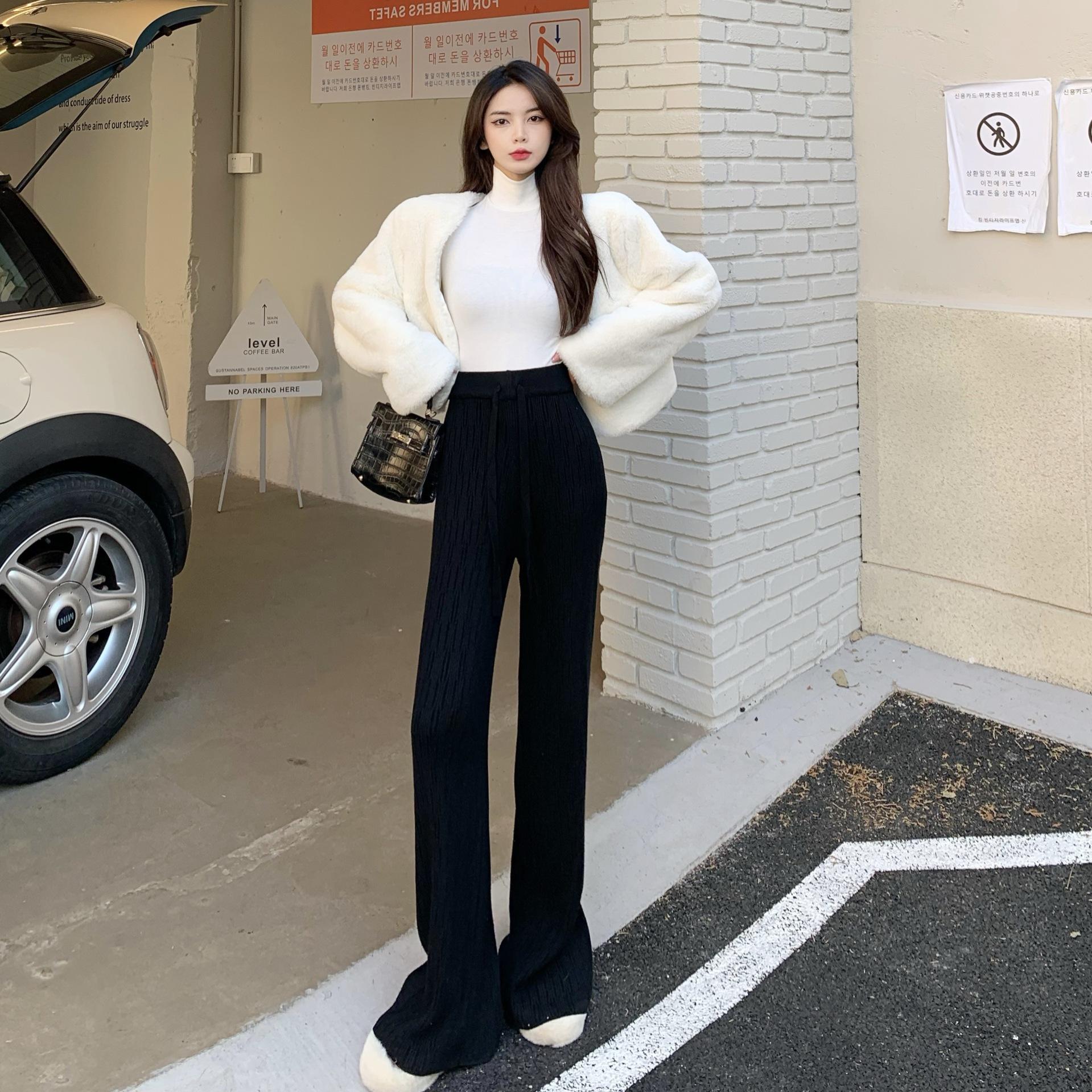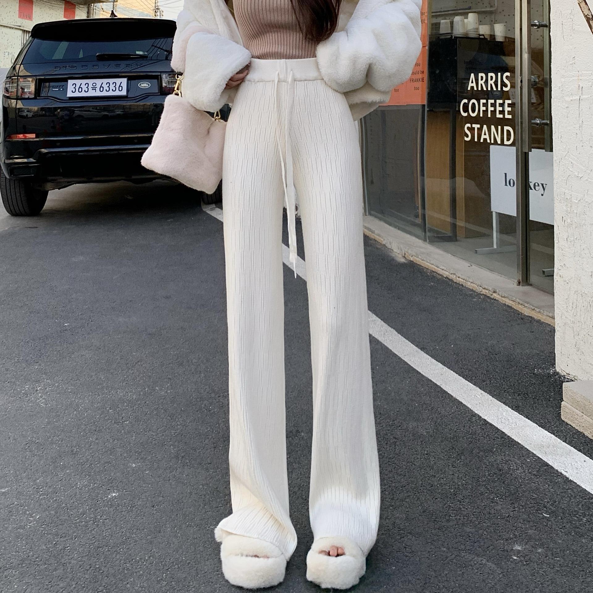 Pantalones anchos de punto Design Sense 2024 para mujer, pantalones casuales altos de primavera y otoño, pantalones acampanados modernos y holgados.