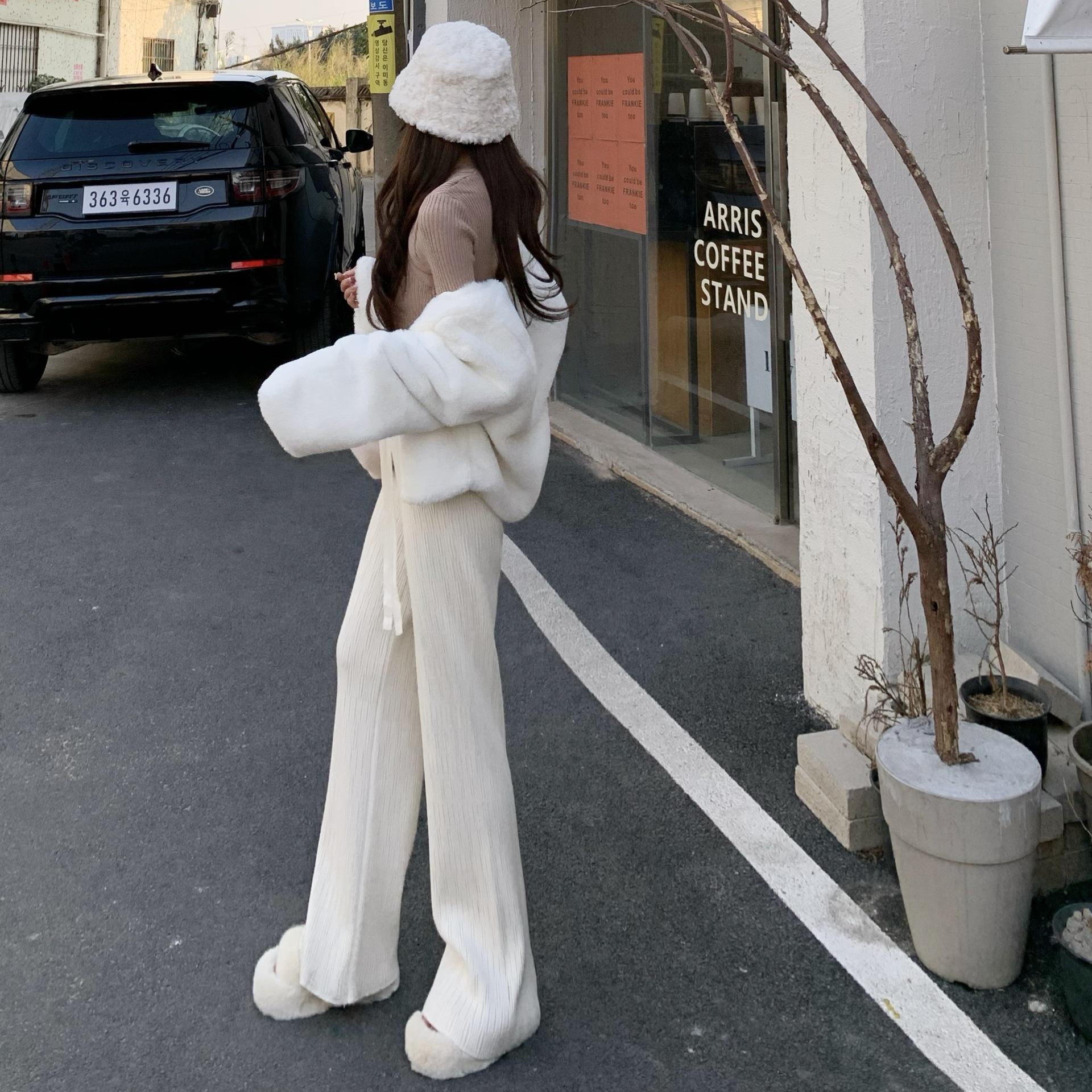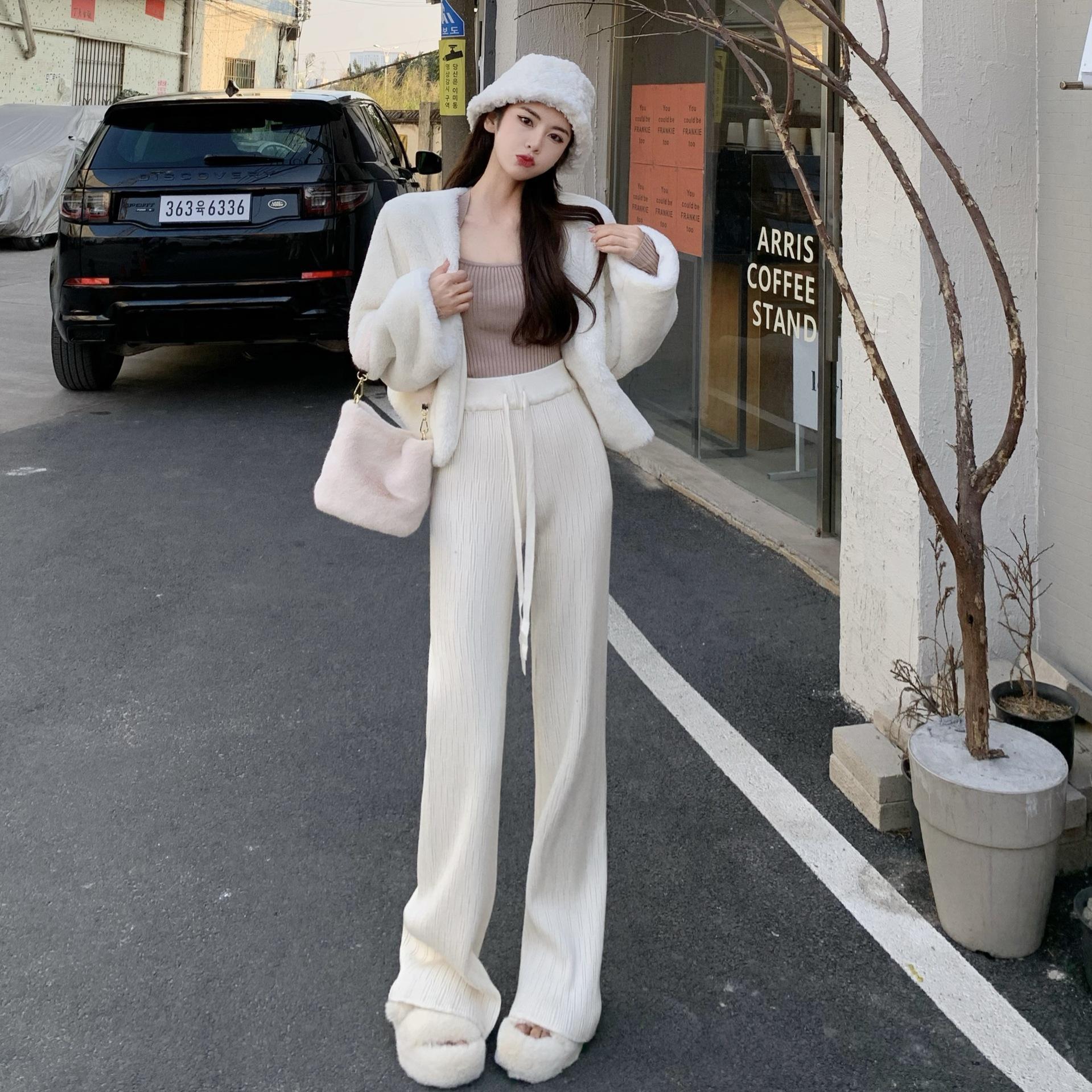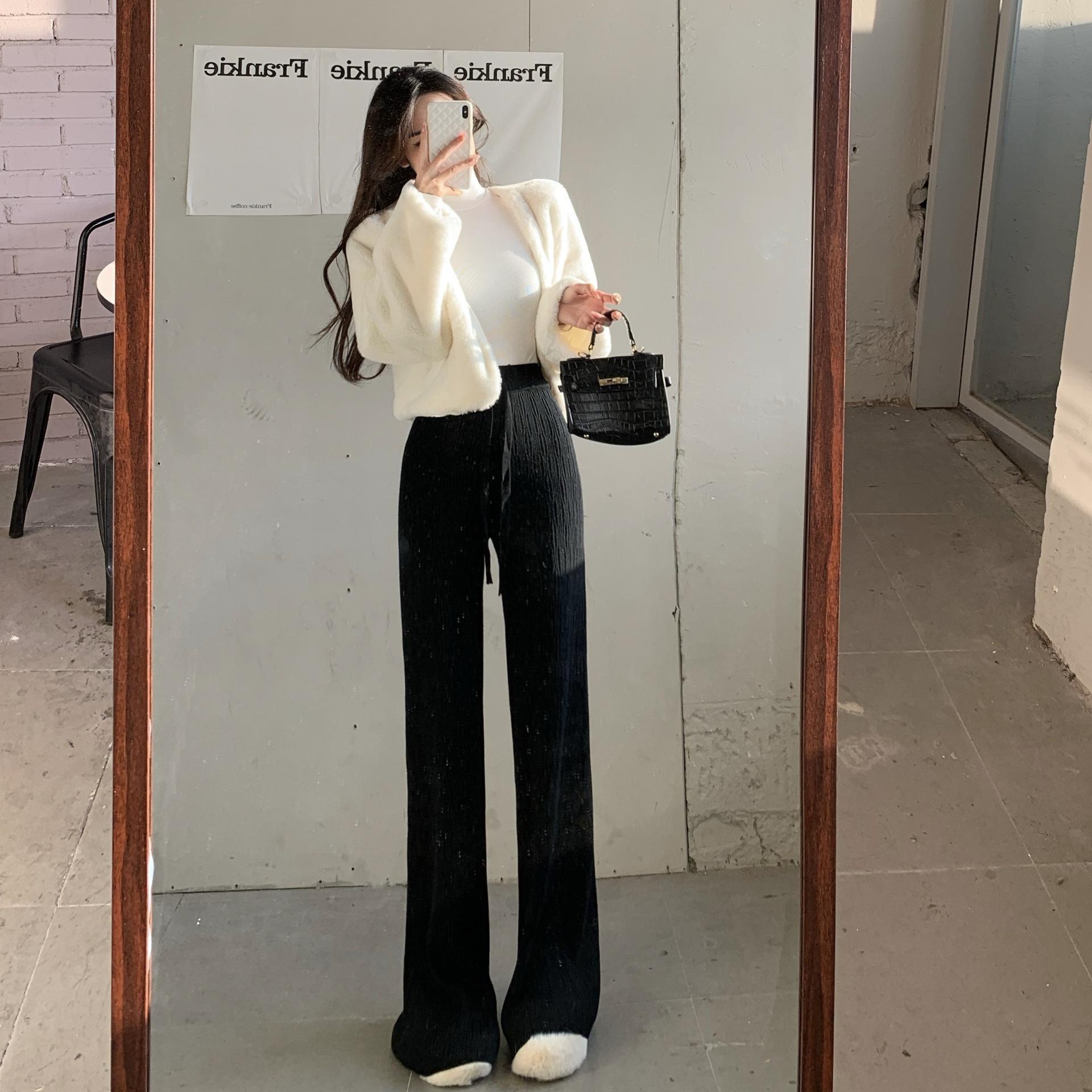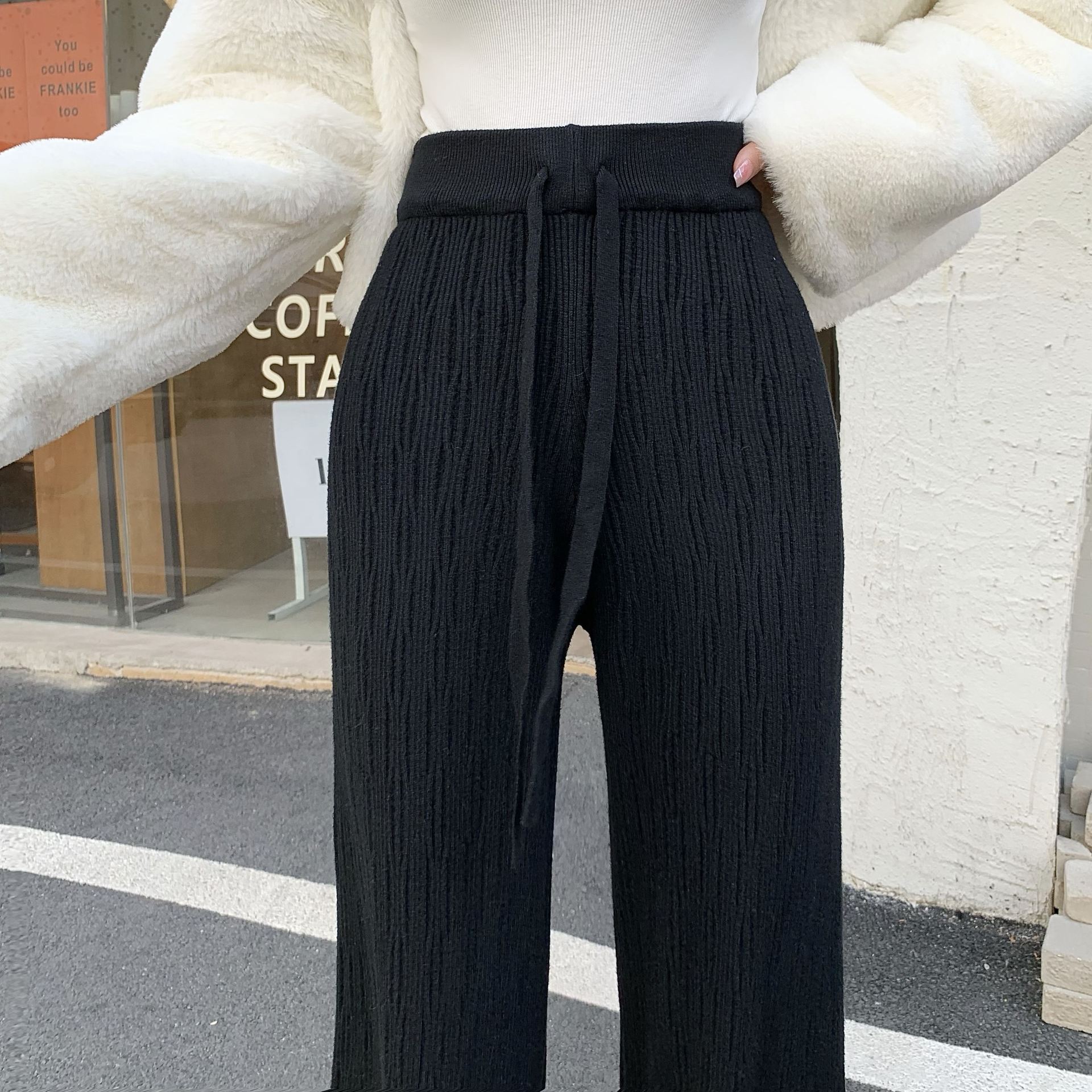 Pantalones anchos de punto Design Sense 2024 para mujer, pantalones casuales altos de primavera y otoño, pantalones acampanados modernos y holgados.