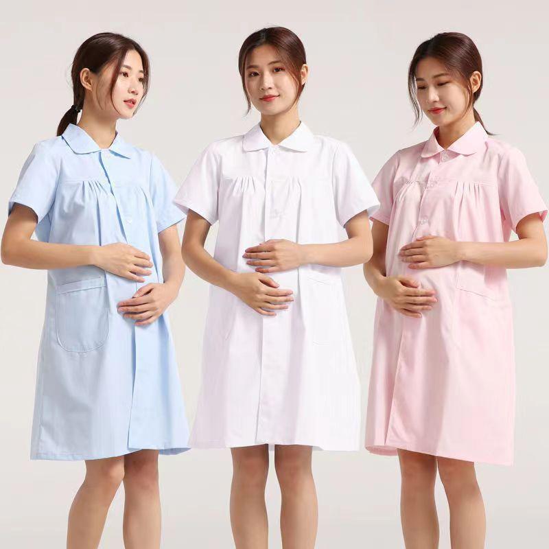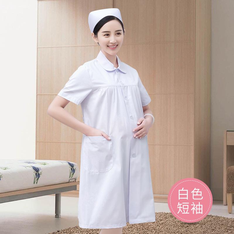 Ropa de enfermera para embarazadas con cuello de muñeca, bata blanca ajustada coreana para mujeres embarazadas, mono de enfermera con soporte abdominal para mujeres embarazadas