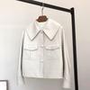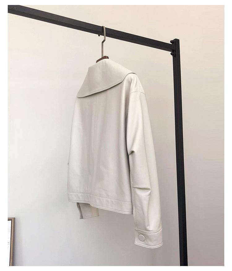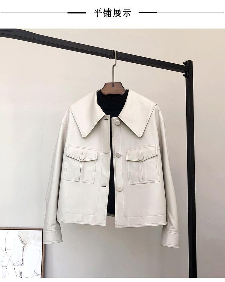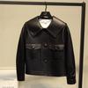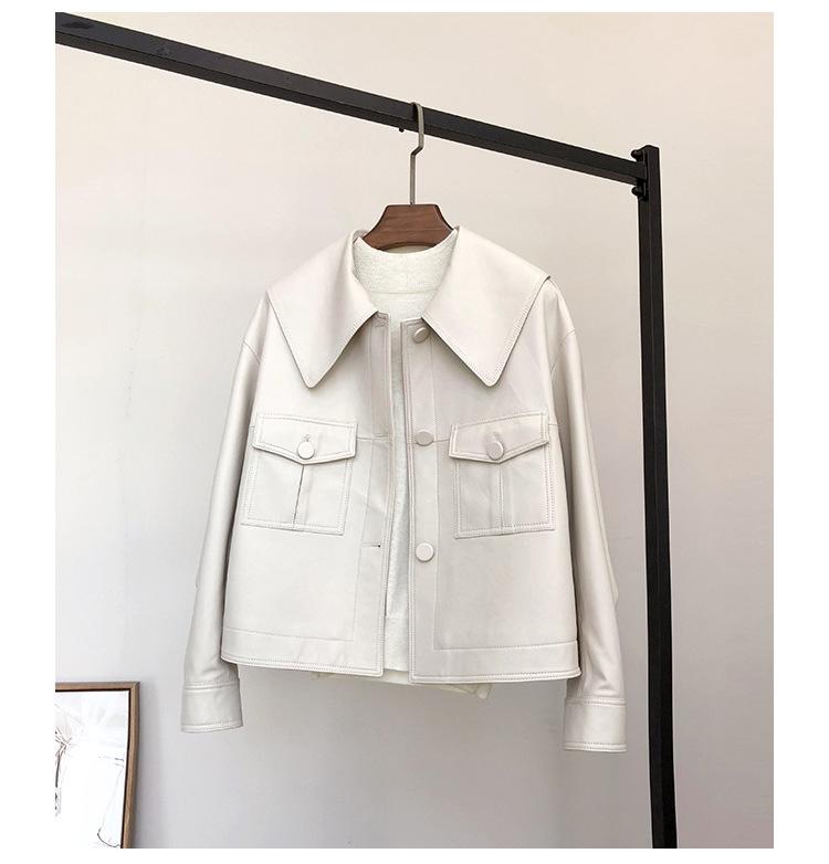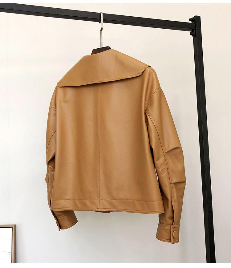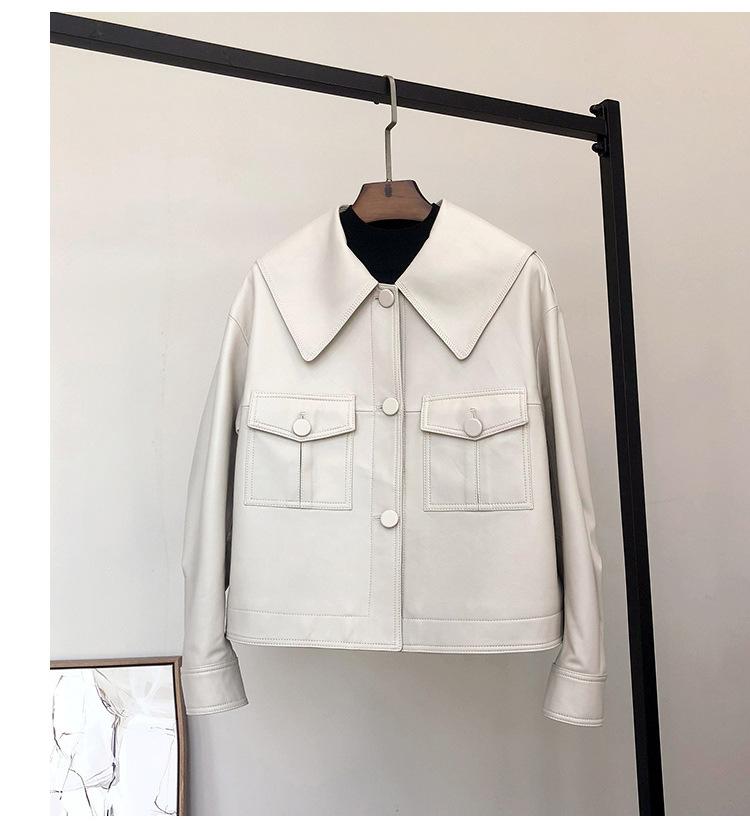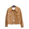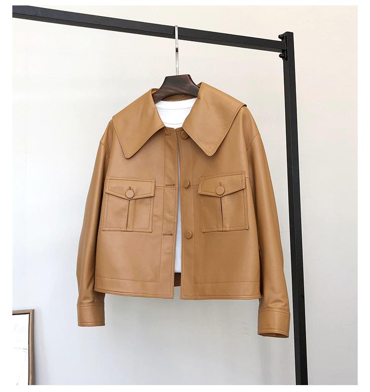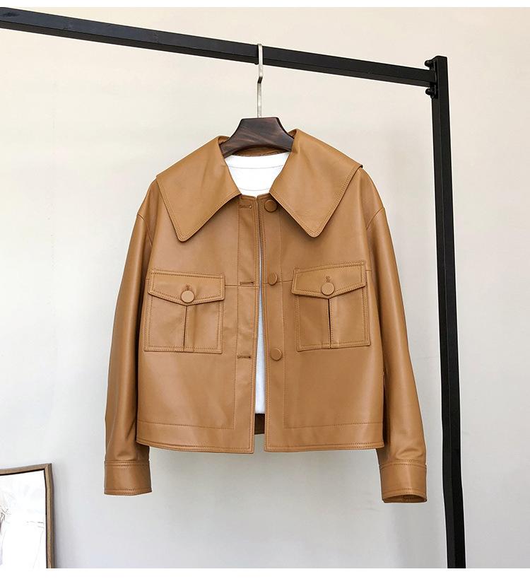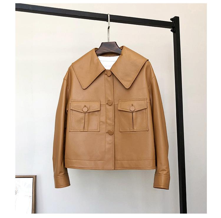 Chaqueta de Otoño 2025 Nueva Haining Cuero Genuino para Mujer Corta Cuero Genuino Piel de Oveja Cuello Cuadrado Chaqueta de Moda