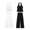 Qqh Export Mono Pantalón Cintura Drapeada Tirantes Pantalón Negro Mono Elegante con Clase