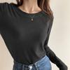 Camiseta Interior de Terciopelo de Doble Cara para Mujer Estilo Bm Otoño e Invierno Cepillada de Manga Larga con Forro Polar Estilo Coreano Blanca Sol Cuello Redondo
