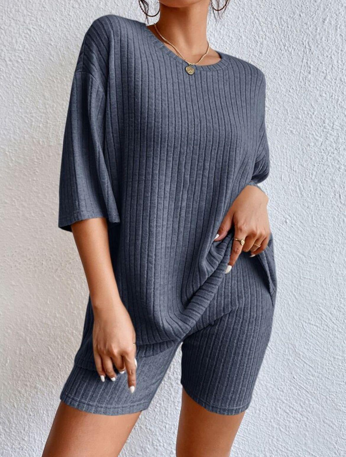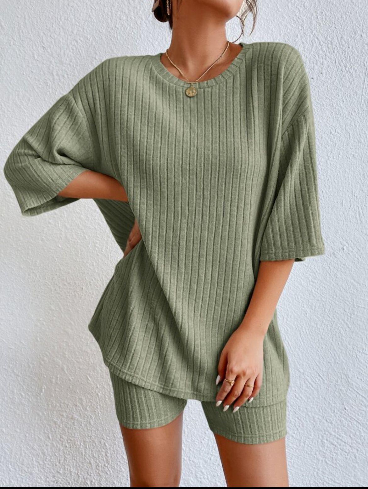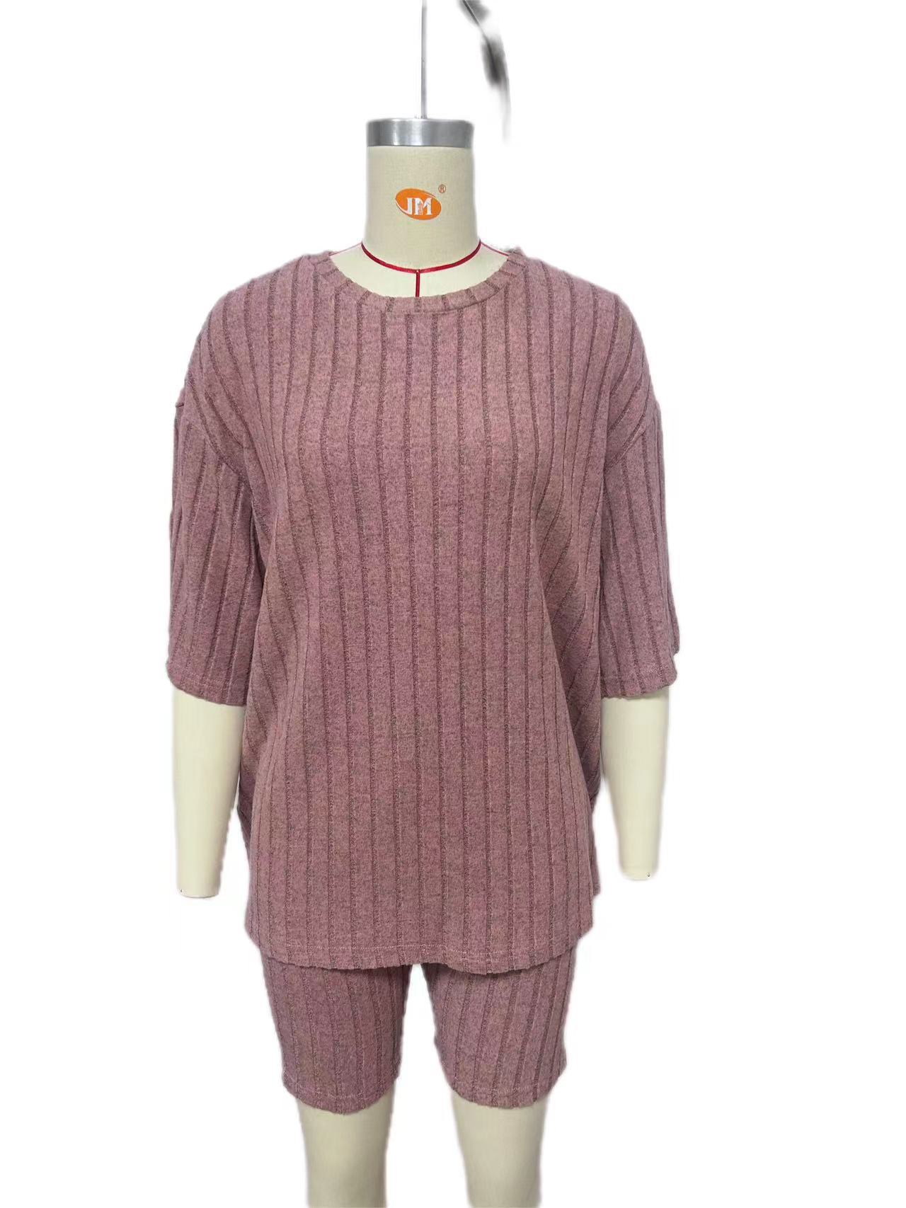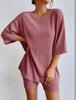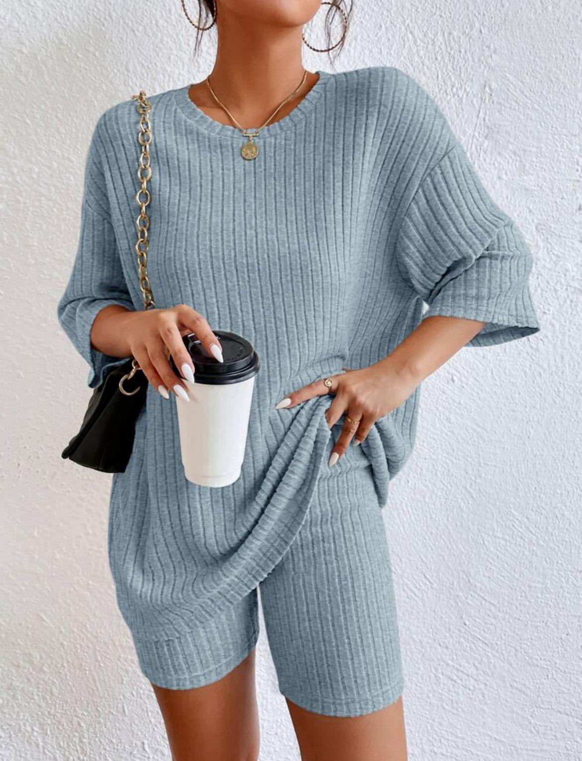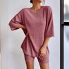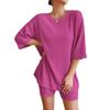 Europeo y Americano Nuevo Estilo 2023 Moda Casual Color Puro Primavera Cuello Redondo Holgado Traje de Shorts para Mujer