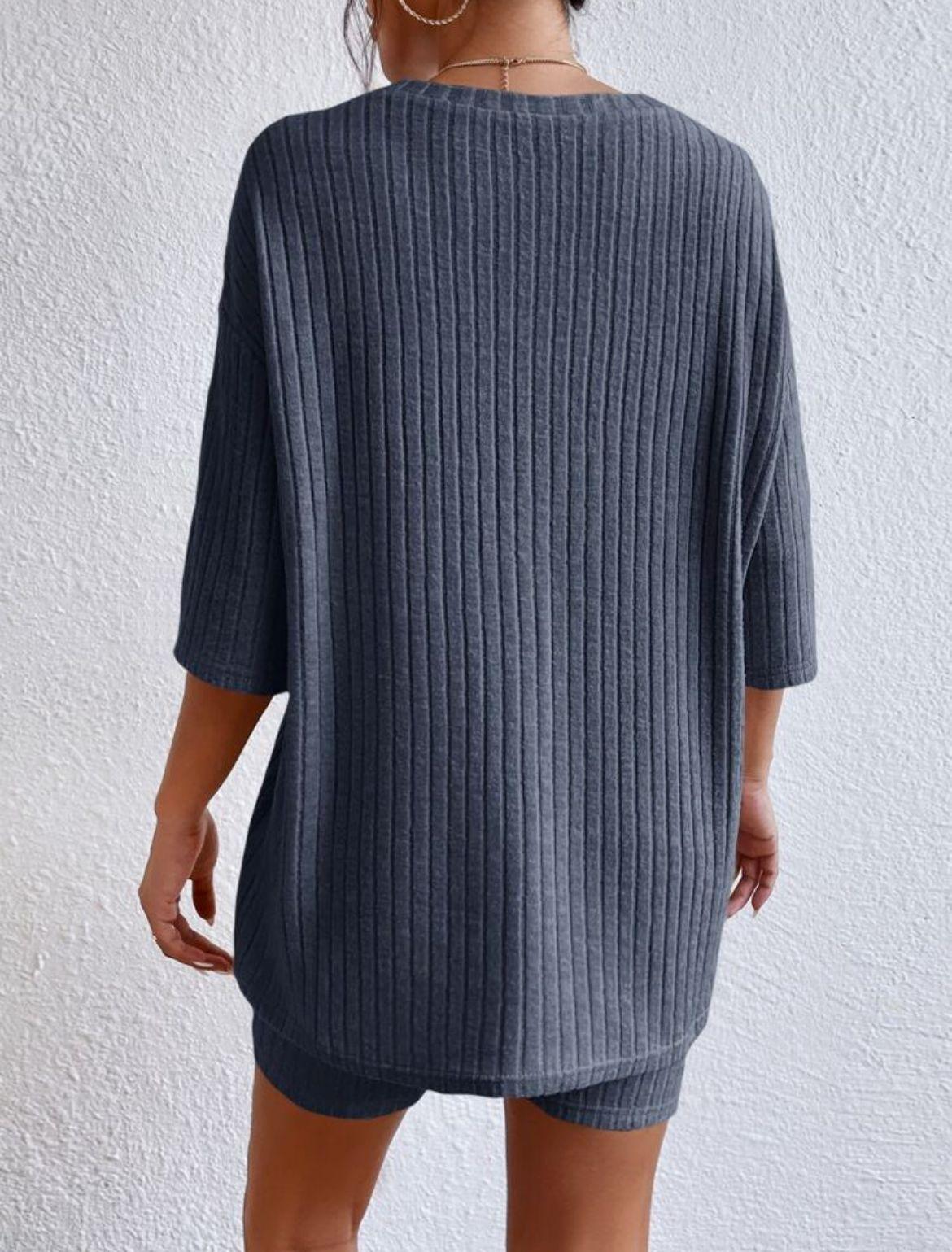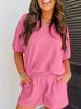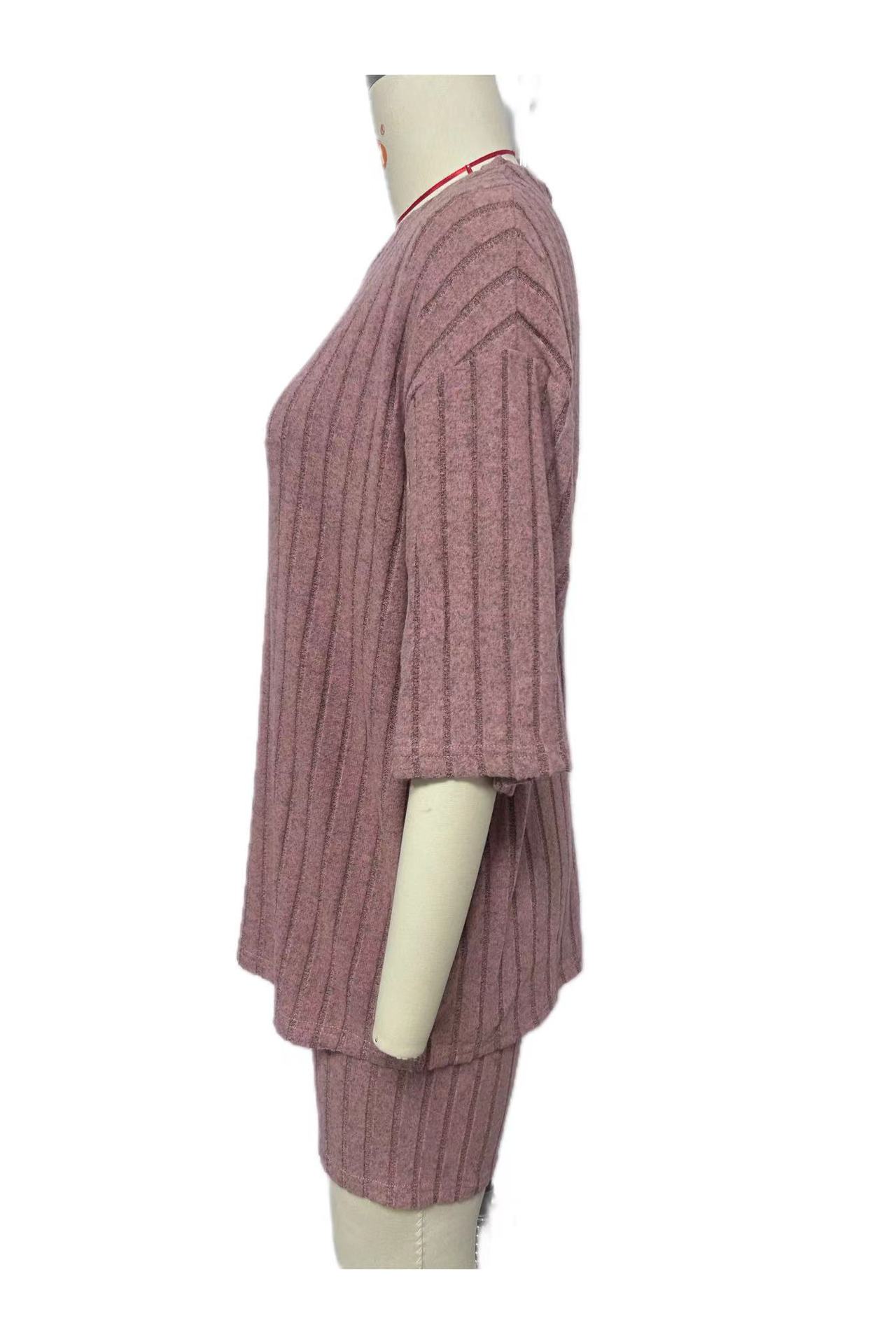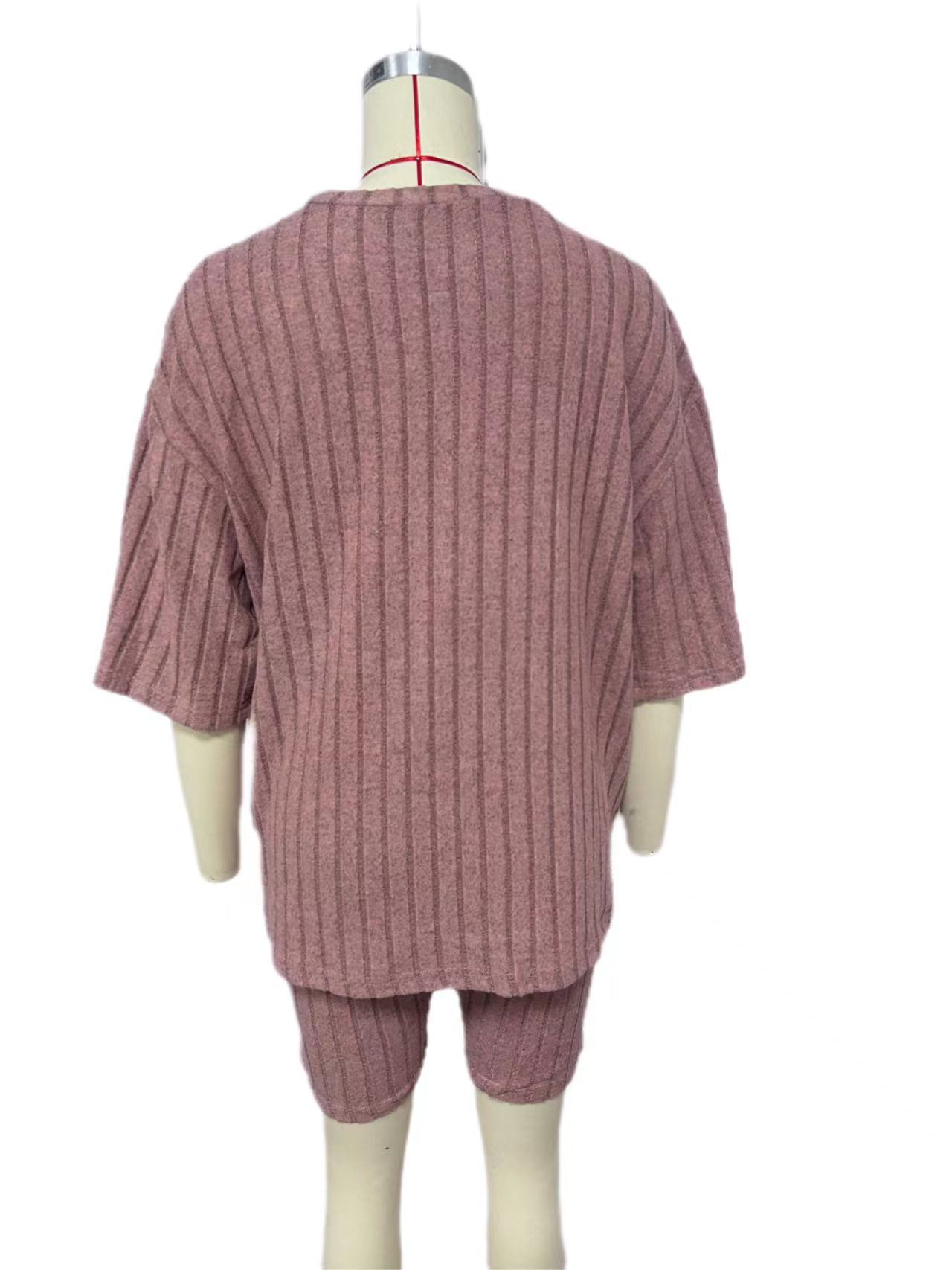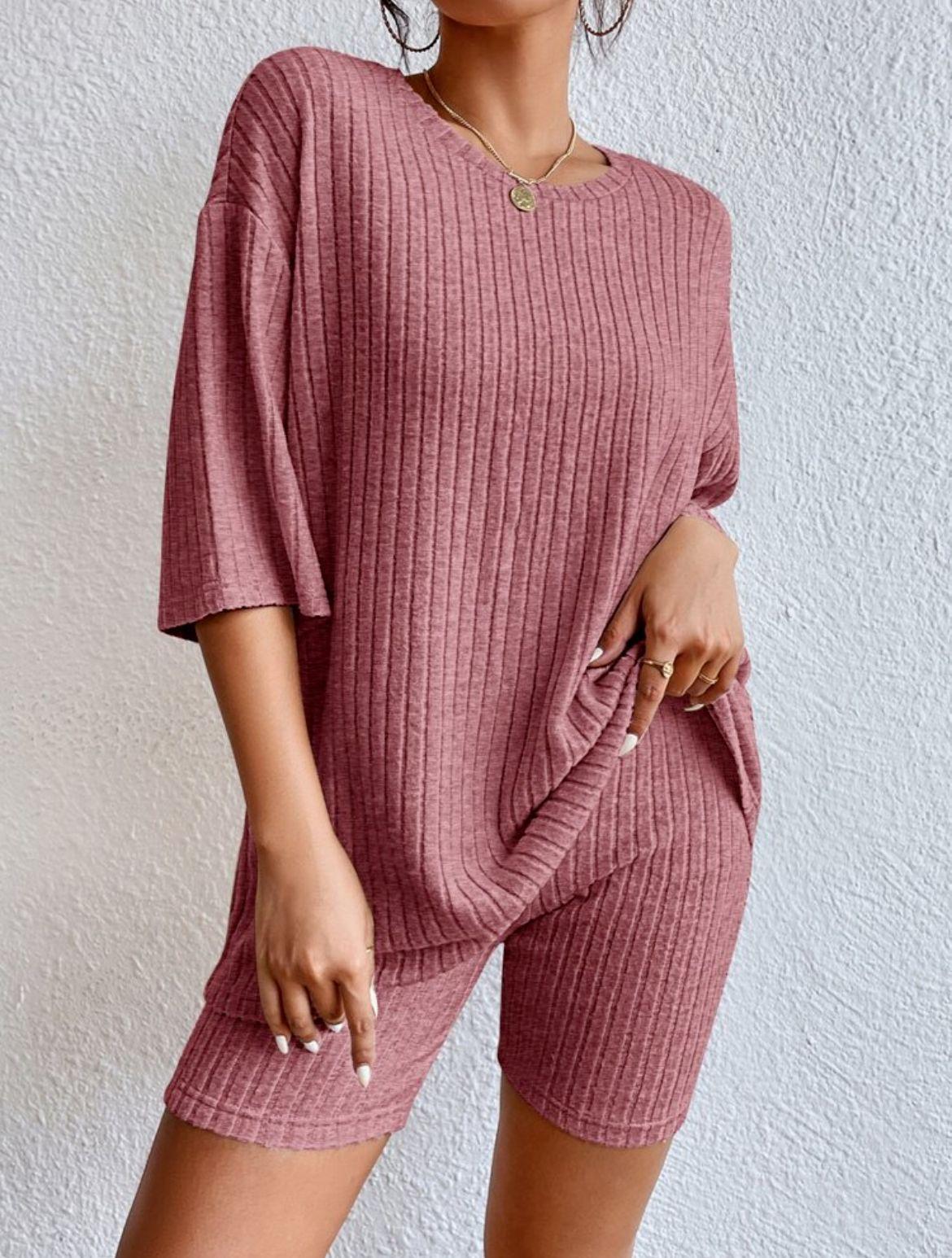Europeo y Americano Nuevo Estilo 2023 Moda Casual Color Puro Primavera Cuello Redondo Holgado Traje de Shorts para Mujer