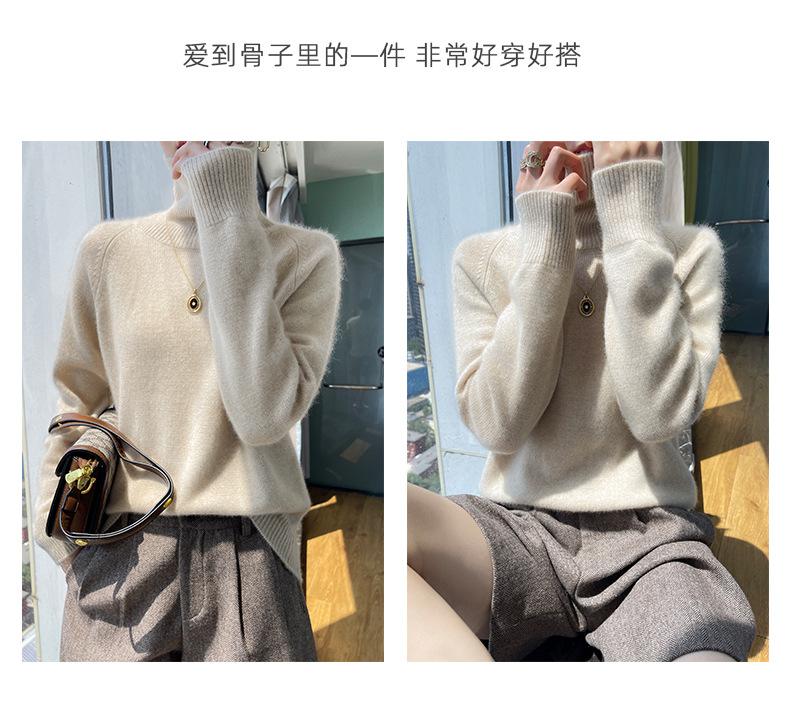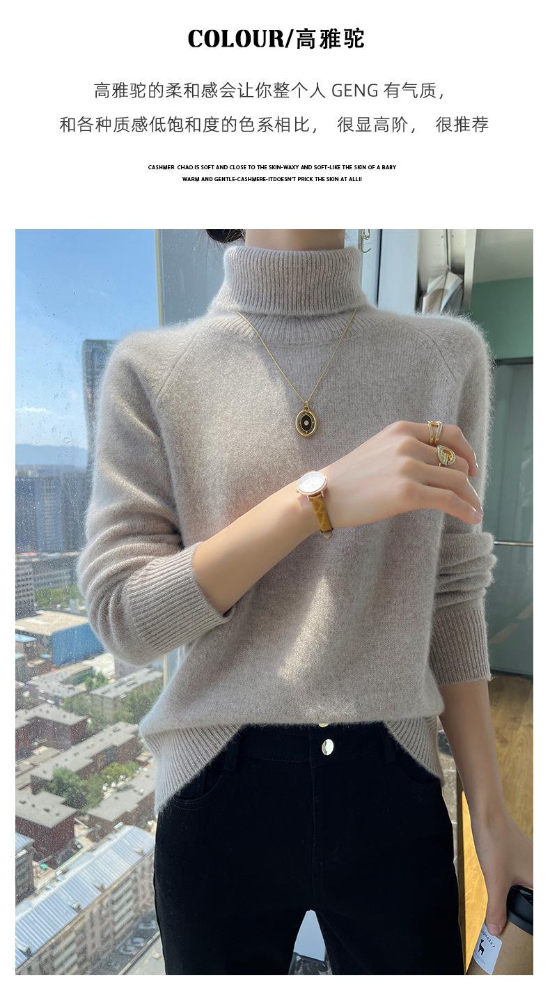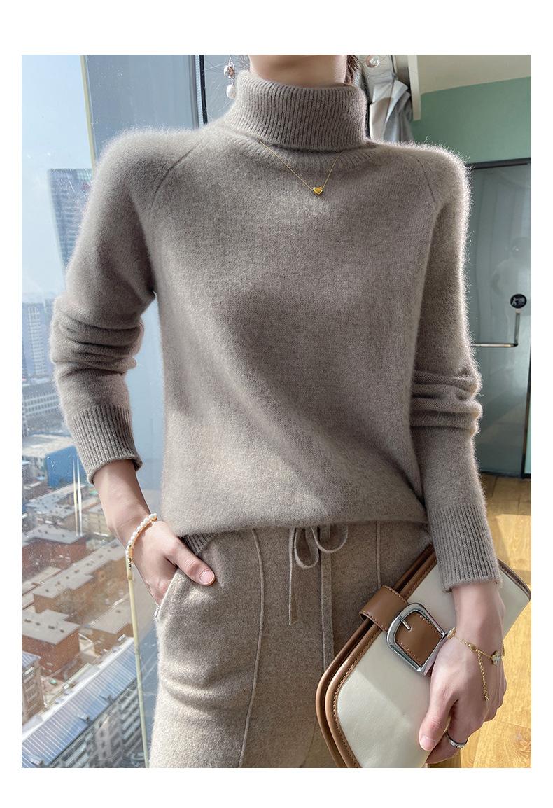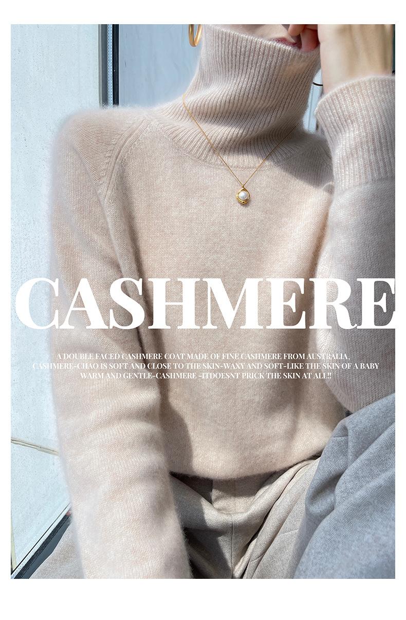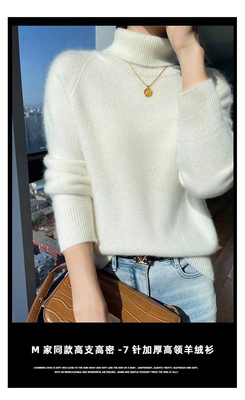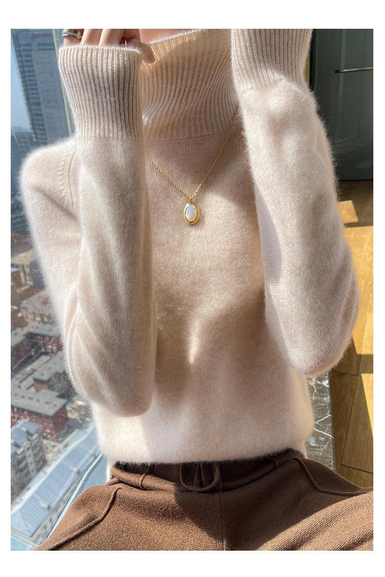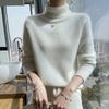 Cachemira 2025 Otoño e Invierno Nuevo Suéter Grueso de Punto para Mujer Top Color Puro Cuello Alto Lana Camiseta Base