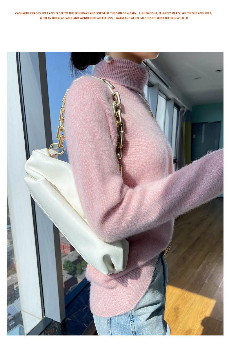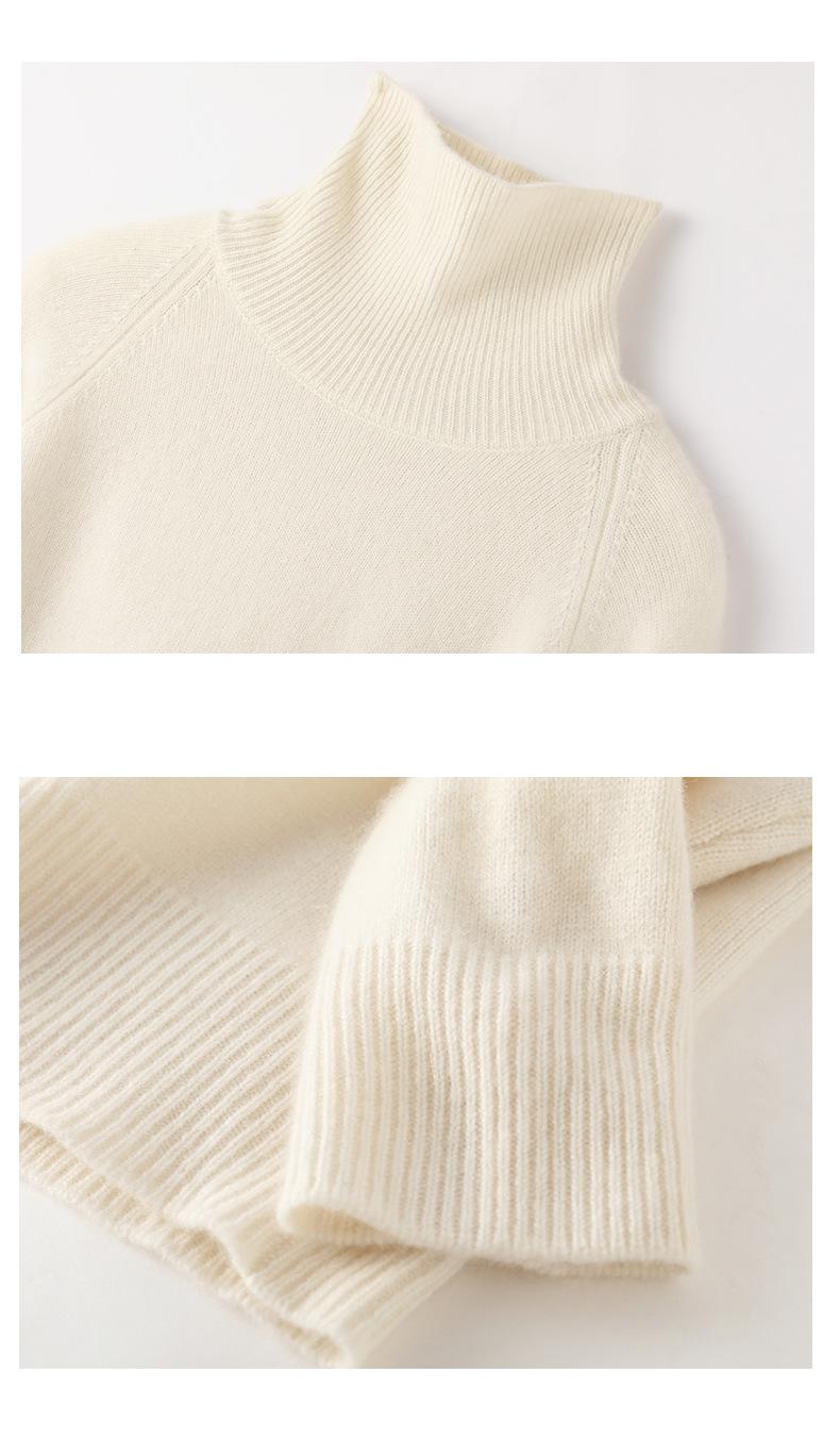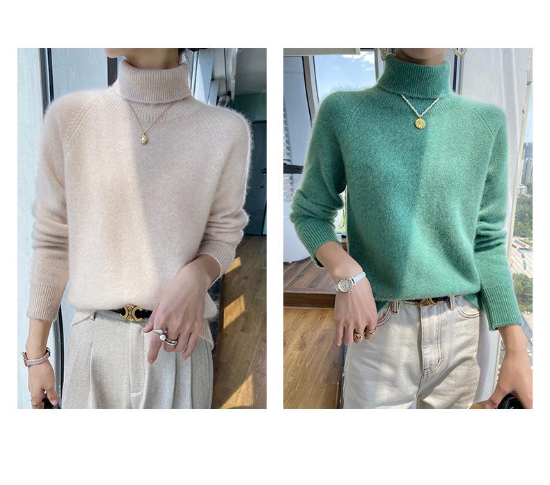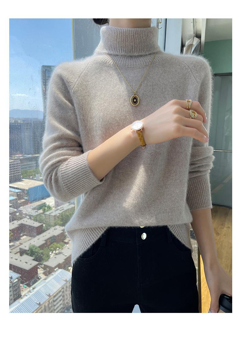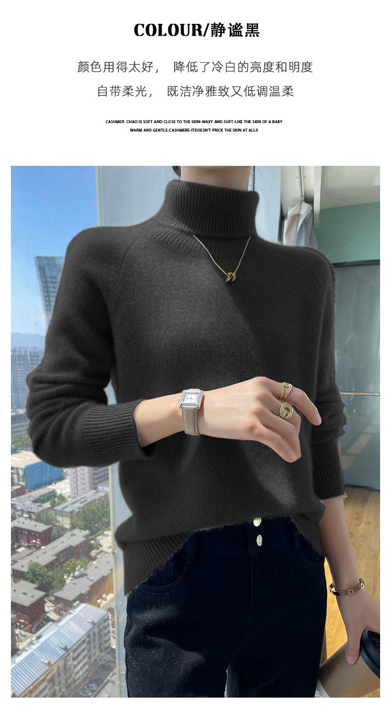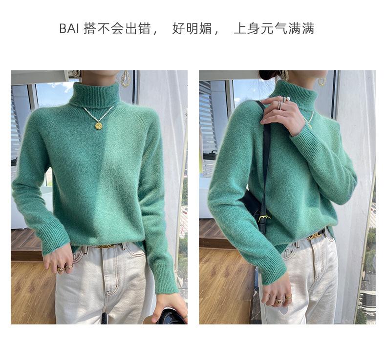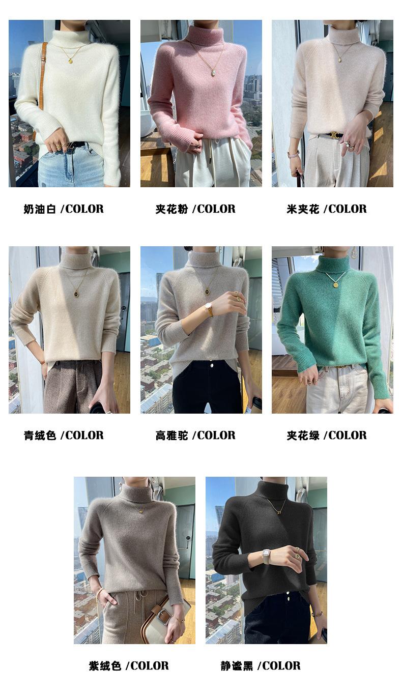Cachemira 2025 Otoño e Invierno Nuevo Suéter Grueso de Punto para Mujer Top Color Puro Cuello Alto Lana Camiseta Base