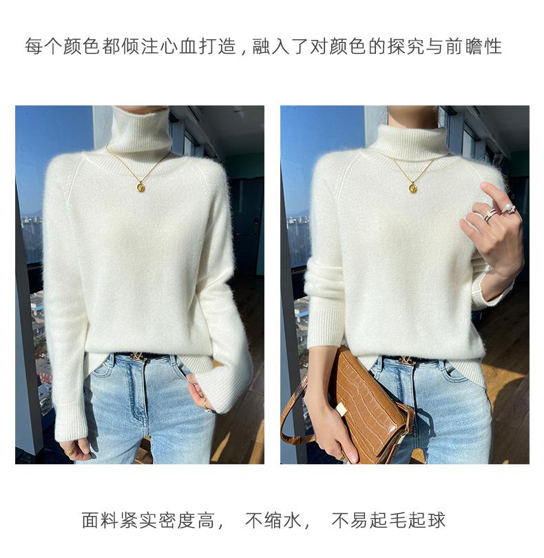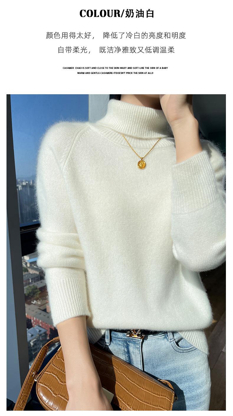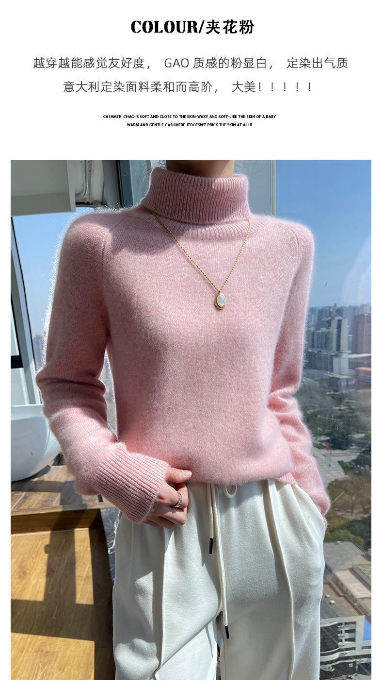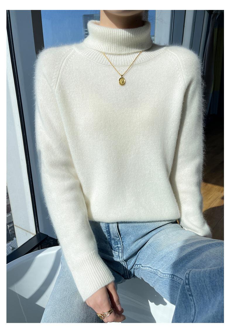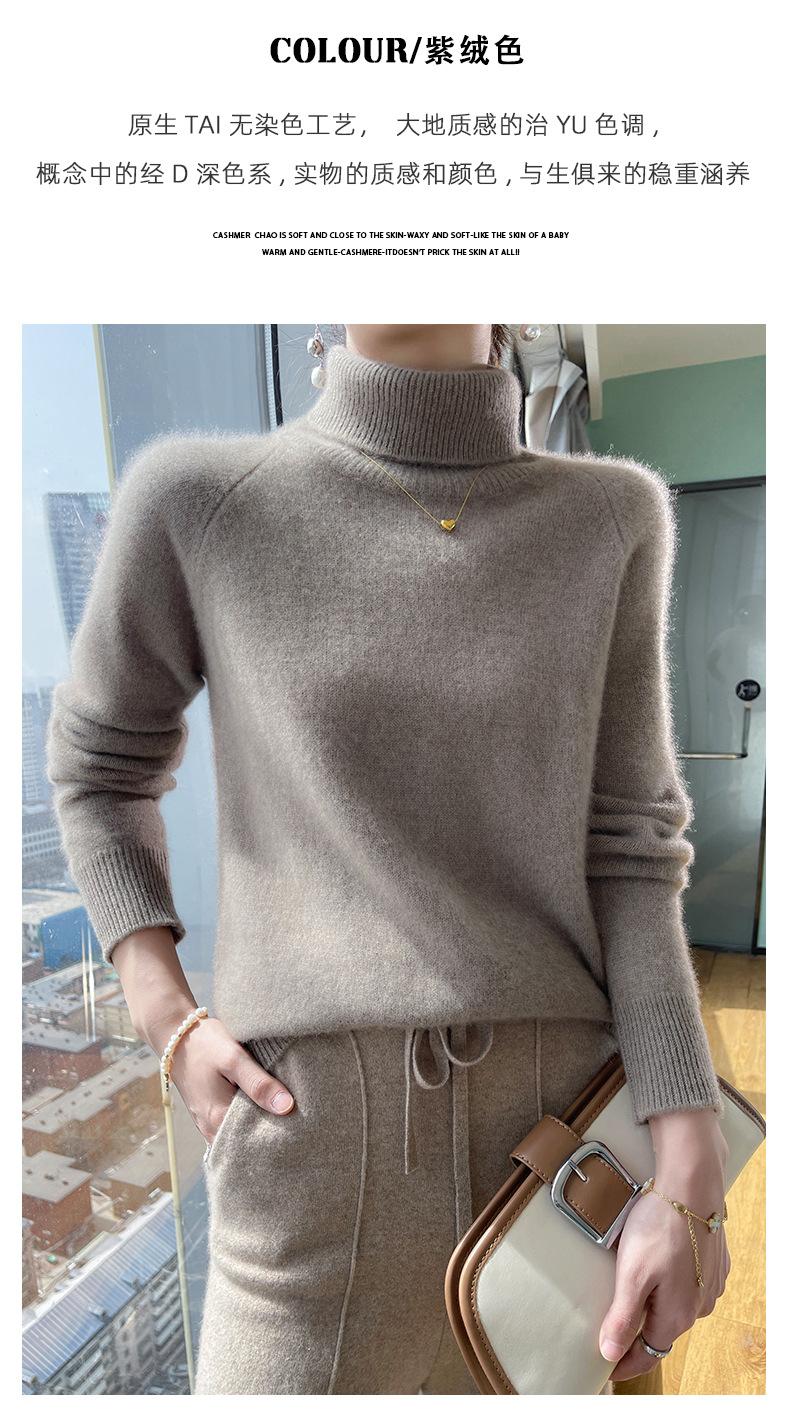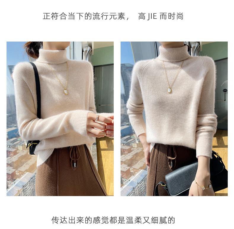 Cachemira 2025 Otoño e Invierno Nuevo Suéter Grueso de Punto para Mujer Top Color Puro Cuello Alto Lana Camiseta Base