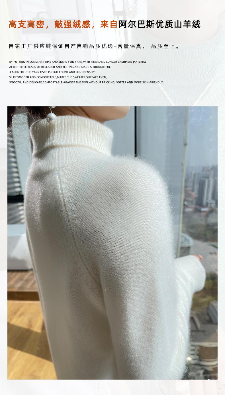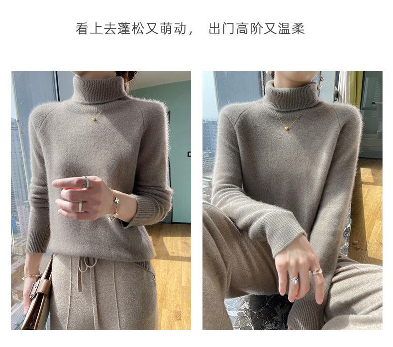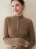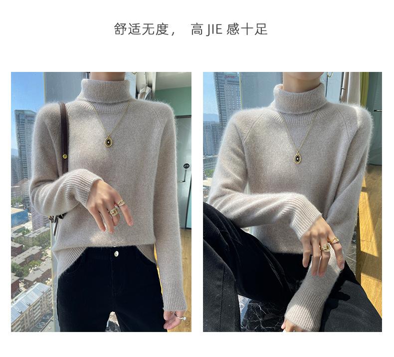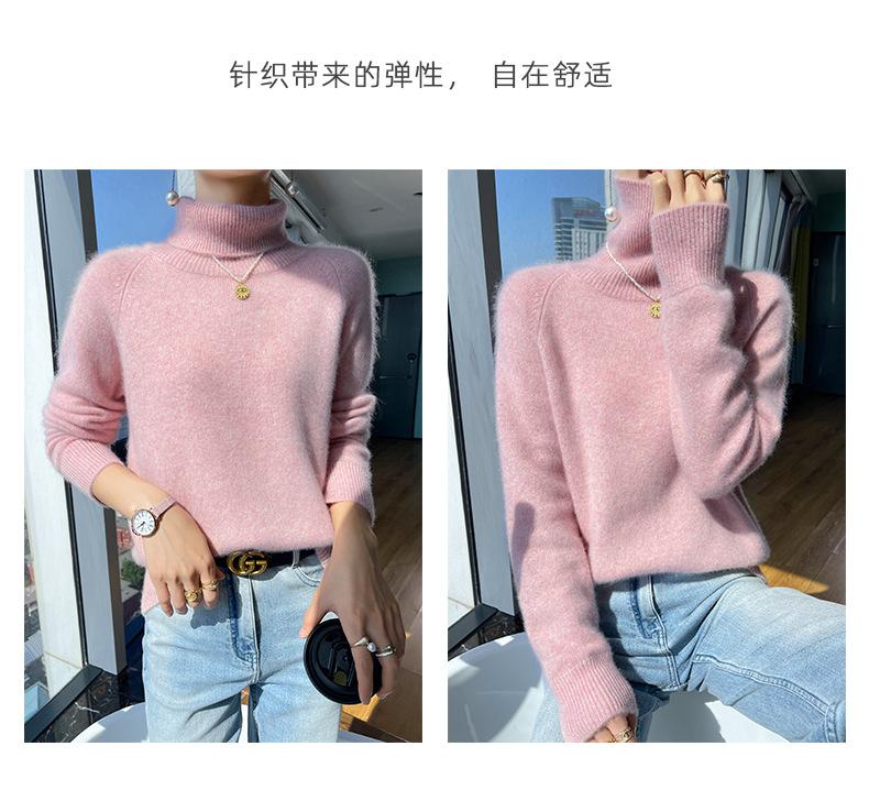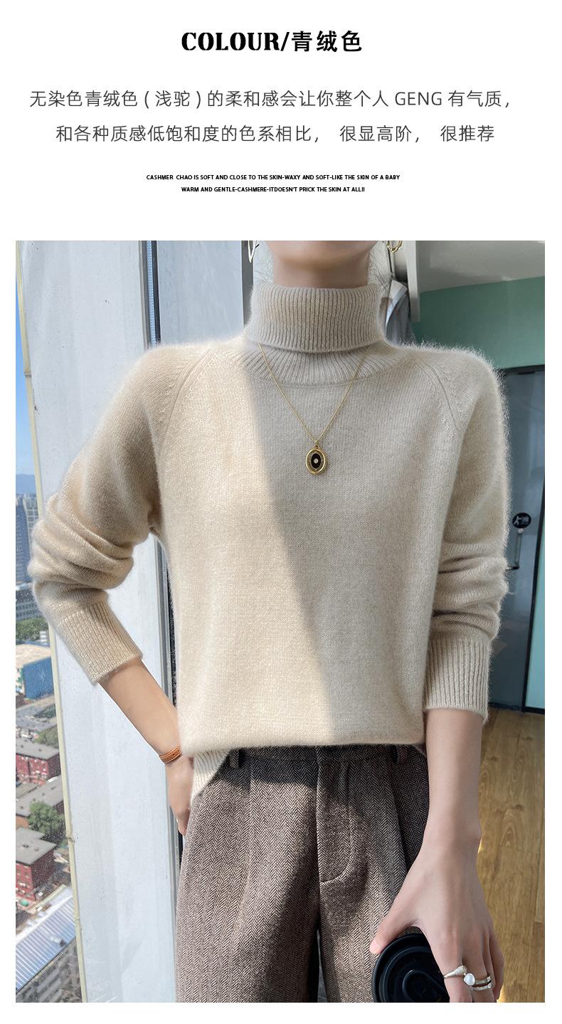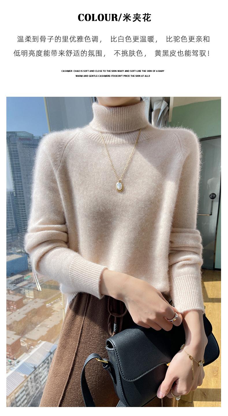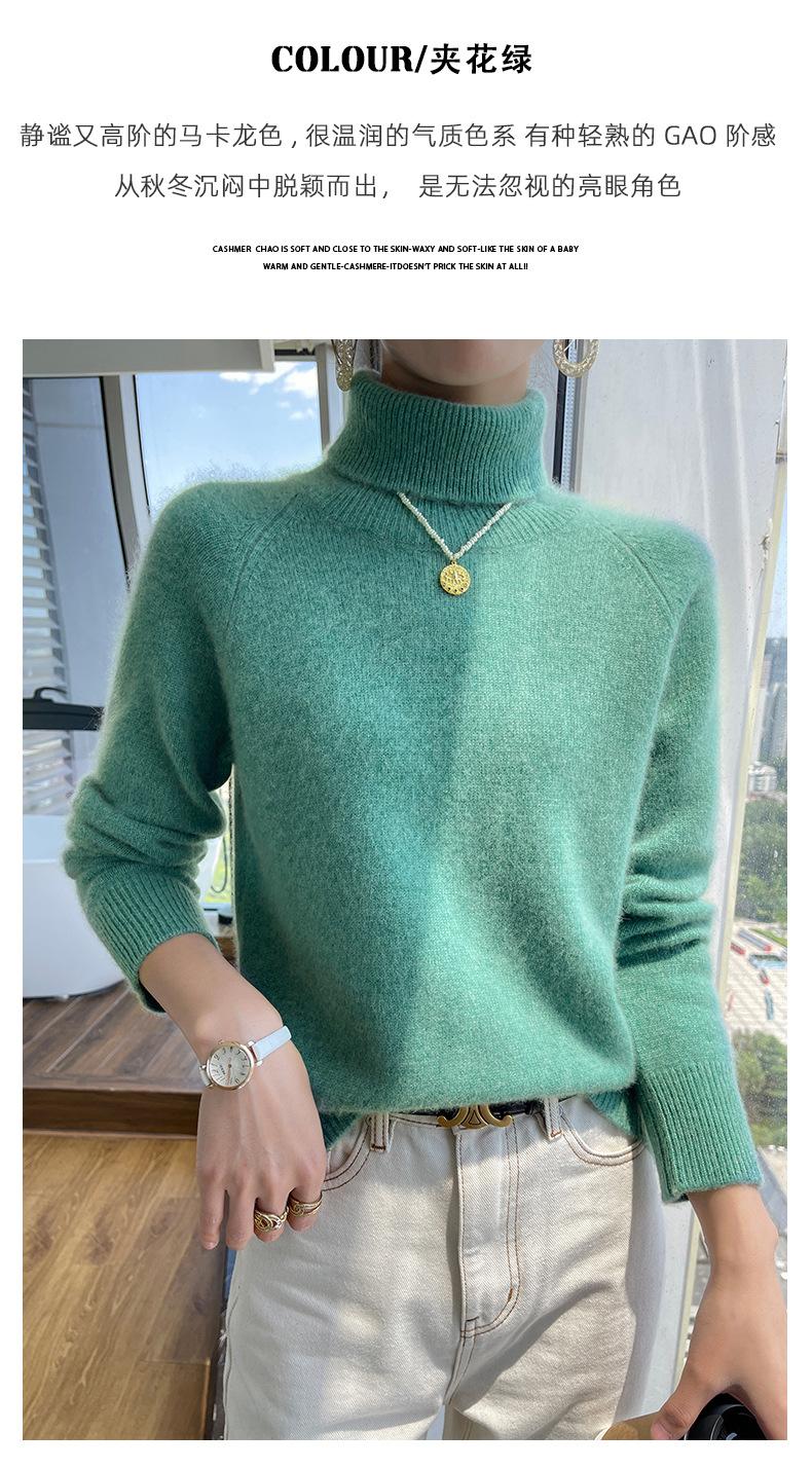 Cachemira 2025 Otoño e Invierno Nuevo Suéter Grueso de Punto para Mujer Top Color Puro Cuello Alto Lana Camiseta Base