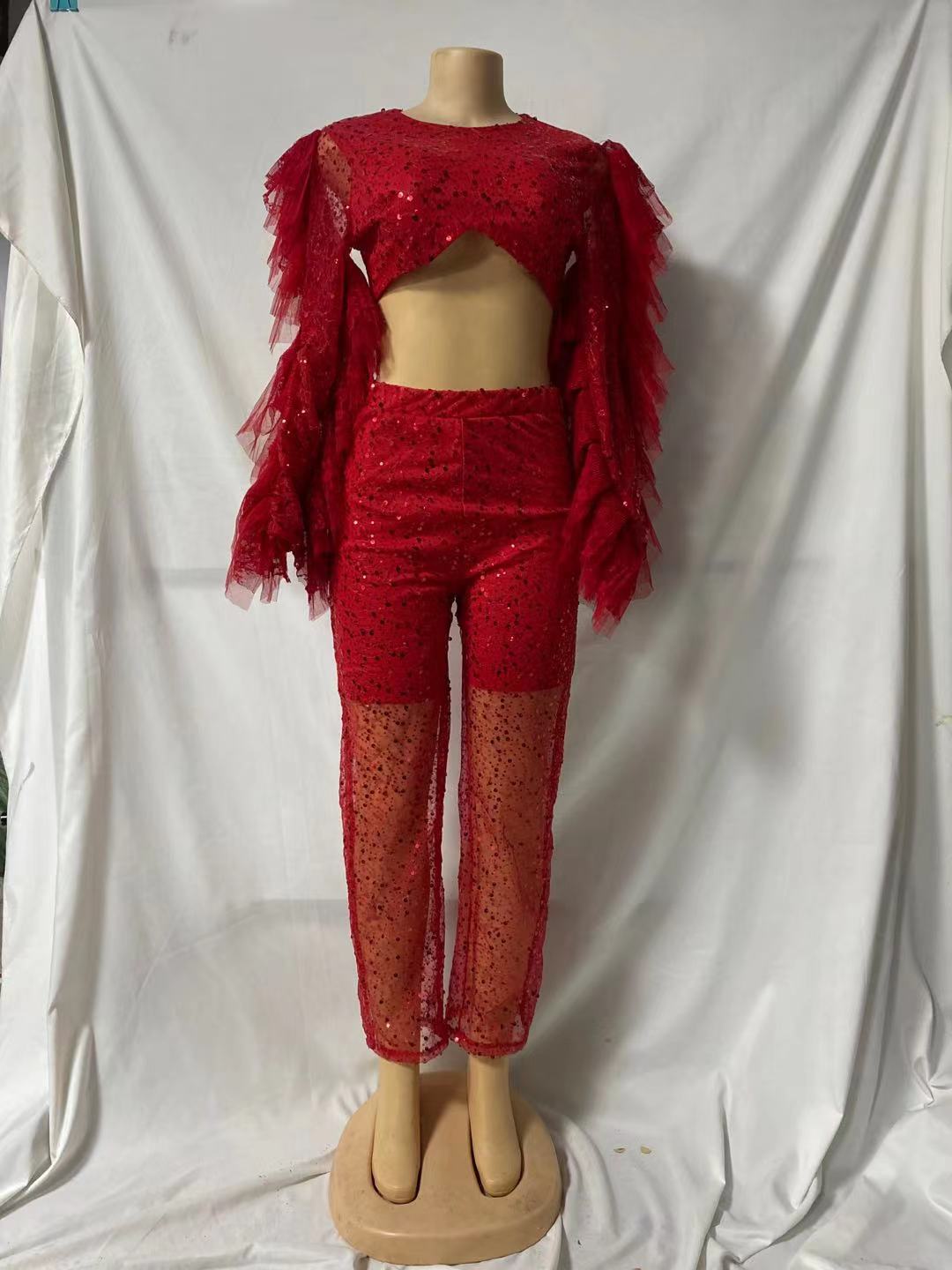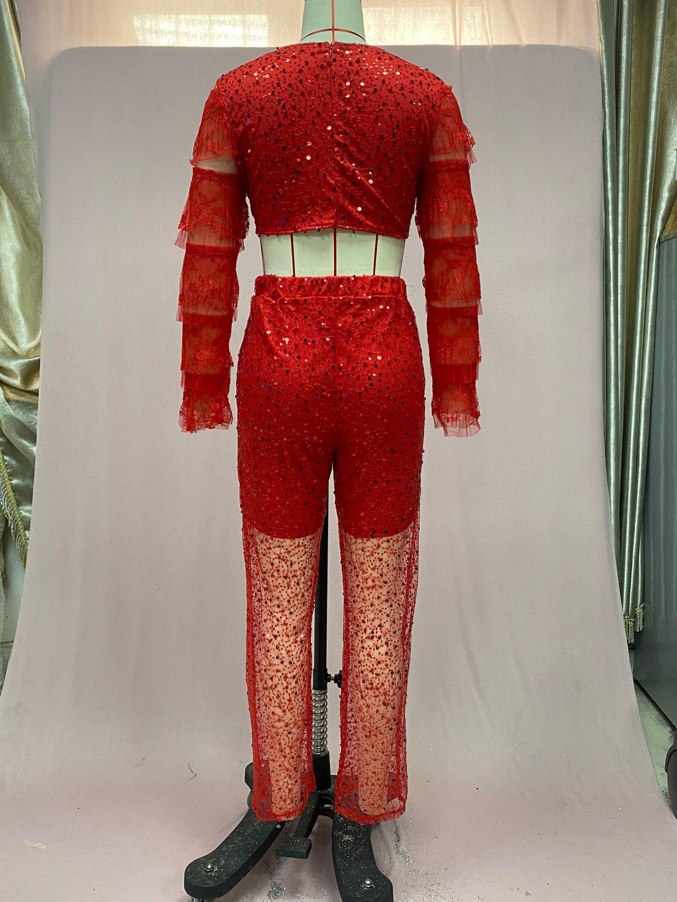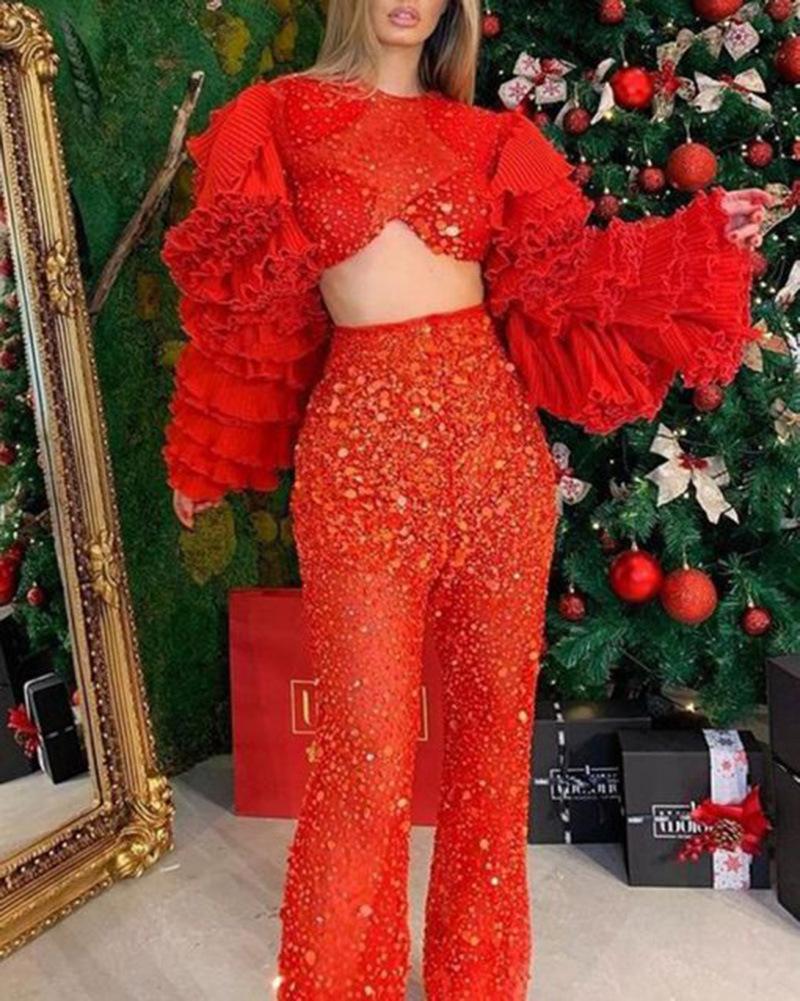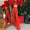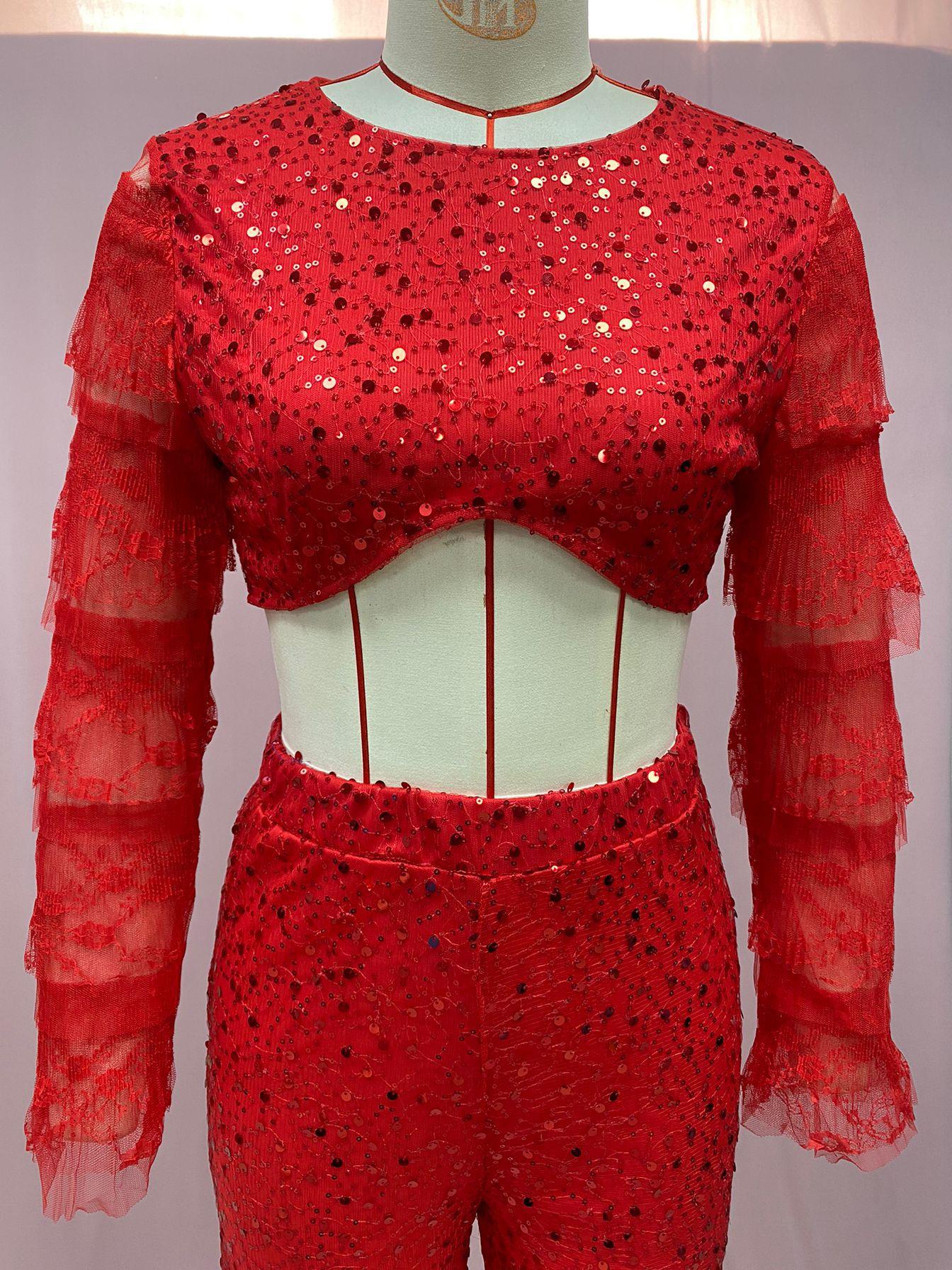 Ropa de Mujer de Exportación Europea y Americana 2025 Transfronteriza Amazon Pantalones de Verano Nuevo Traje de Moda de Color Puro para Fiesta de Manga Larga con Ombligo Descubierto