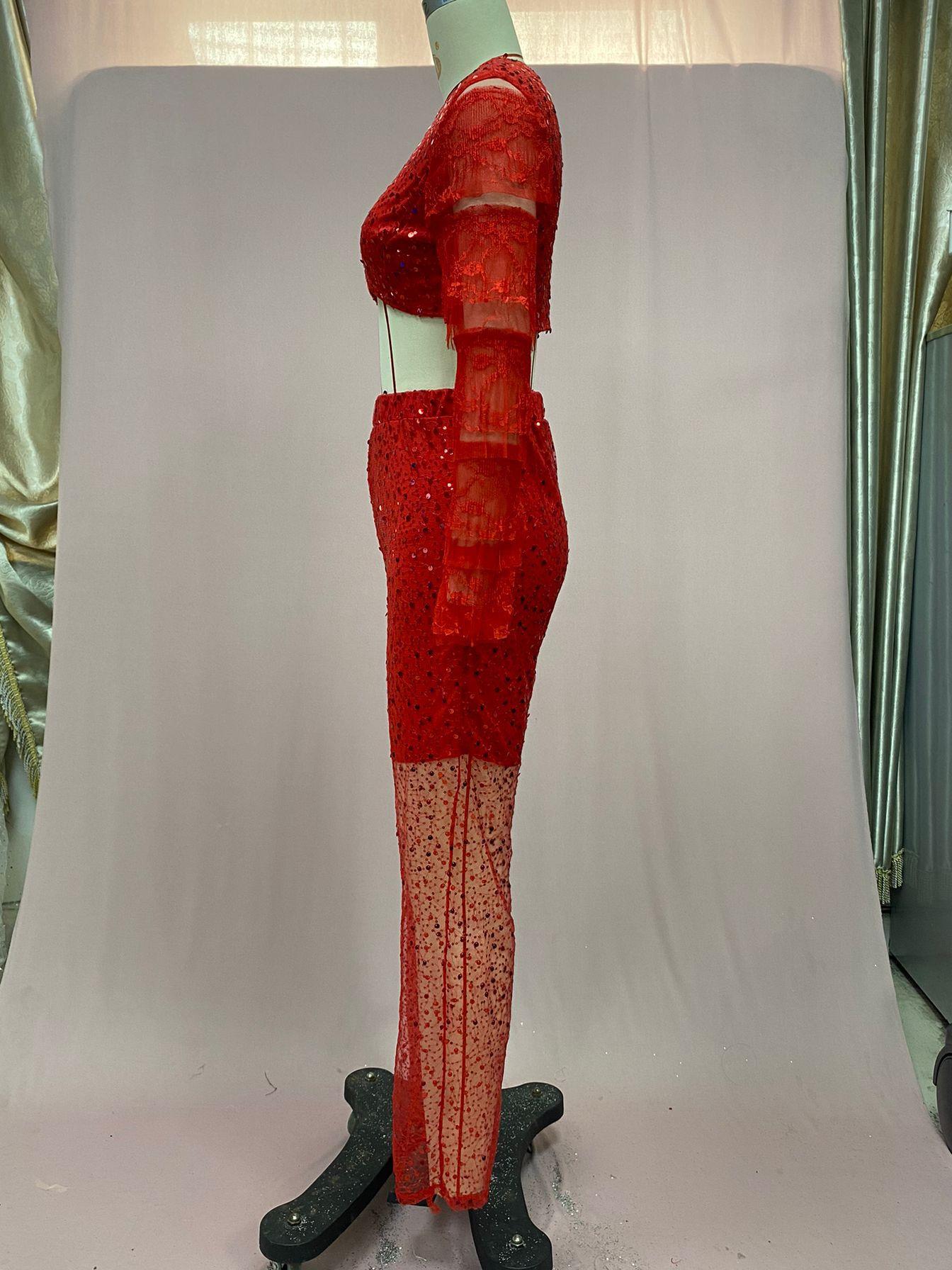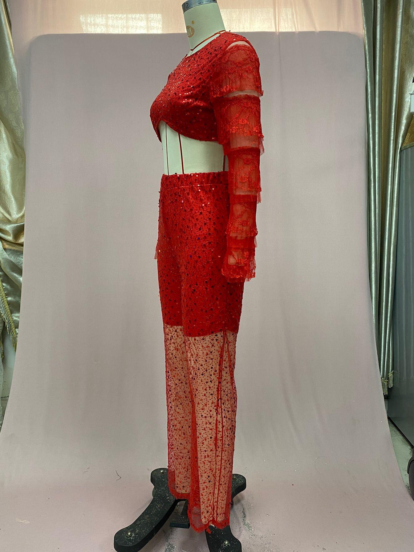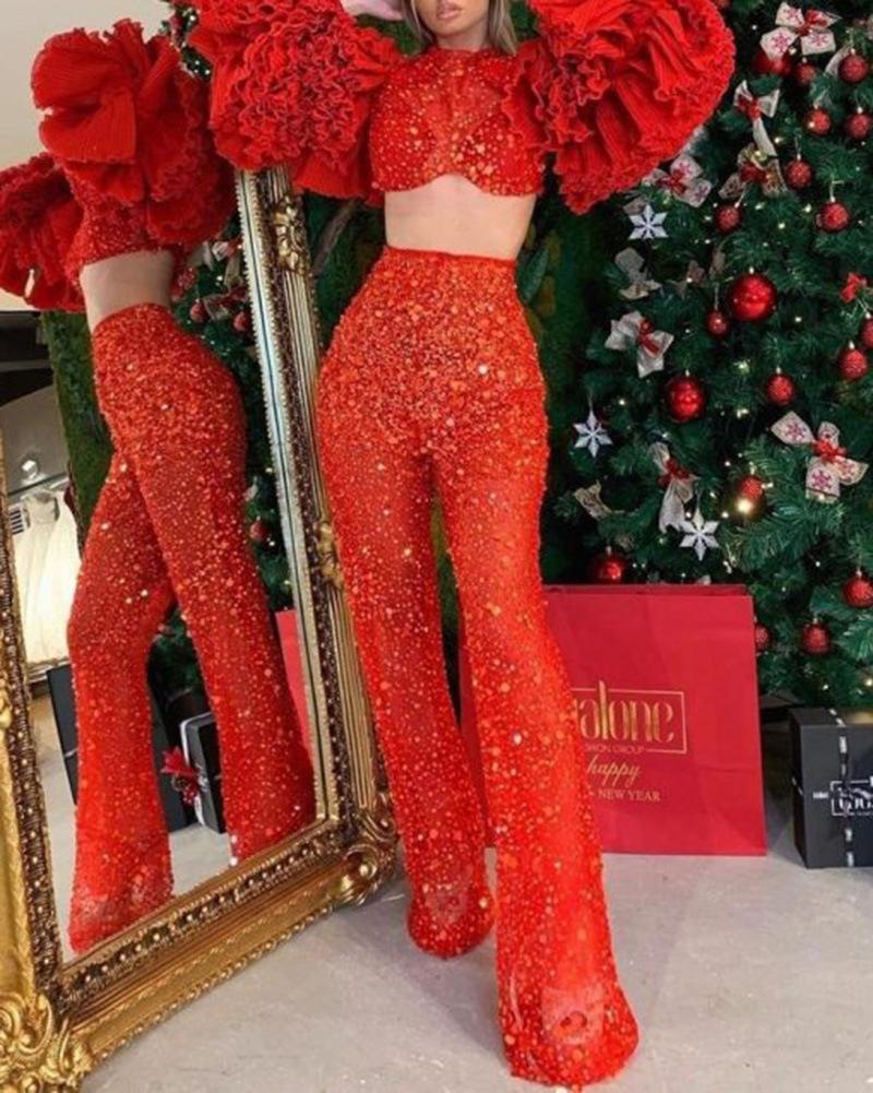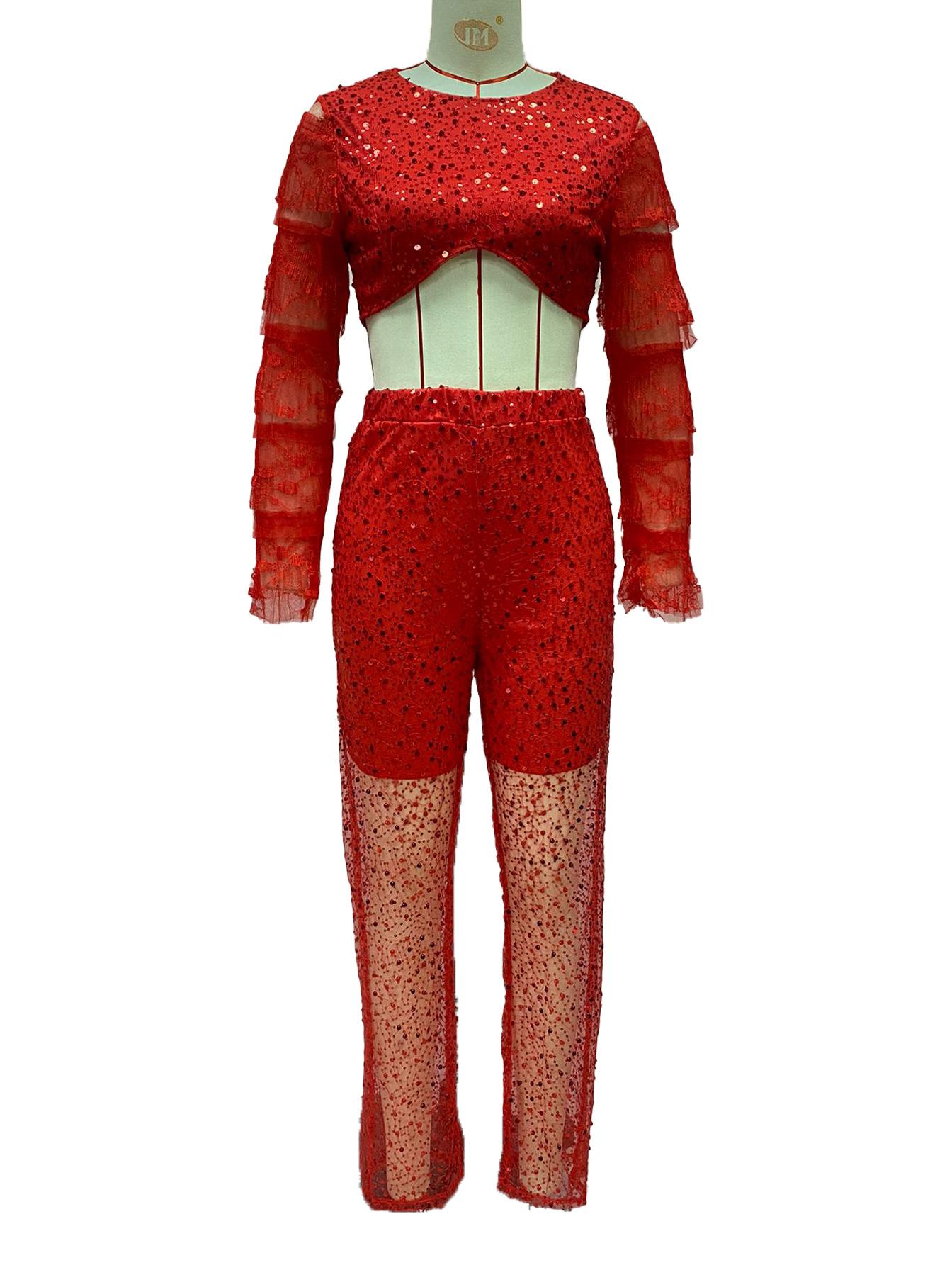 Ropa de Mujer de Exportación Europea y Americana 2025 Transfronteriza Amazon Pantalones de Verano Nuevo Traje de Moda de Color Puro para Fiesta de Manga Larga con Ombligo Descubierto