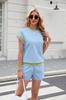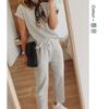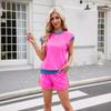 Conjunto de dos piezas de verano 2023 para mujer, nuevo transfronterizo, europeo y americano, moderno, versátil, holgado, tipo jersey, cuello redondo, traje casual para mujer