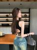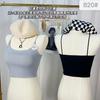 Camisola negra tipo chaleco para chica sexy americana, prenda exterior sexy de verano para mujer, top sin espalda, cuello redondo, camiseta corta ajustada
