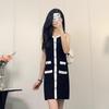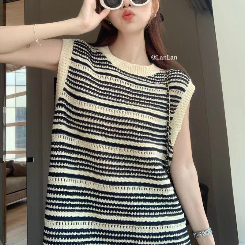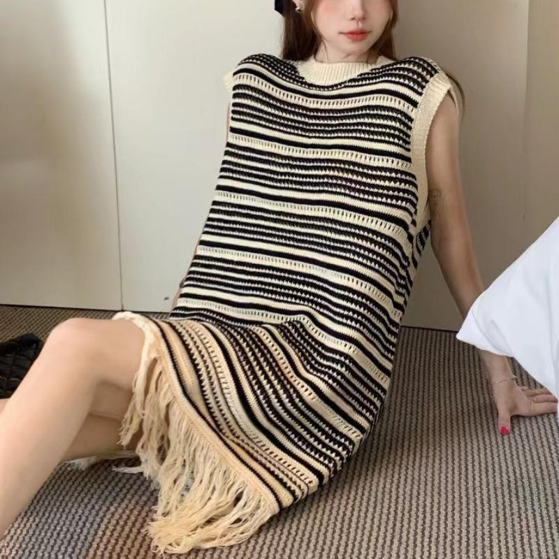 Verano Nuevo Diseño Moda Chaleco Rayado Sin Mangas Hueco Tejido Flecos Vestido para Mujer