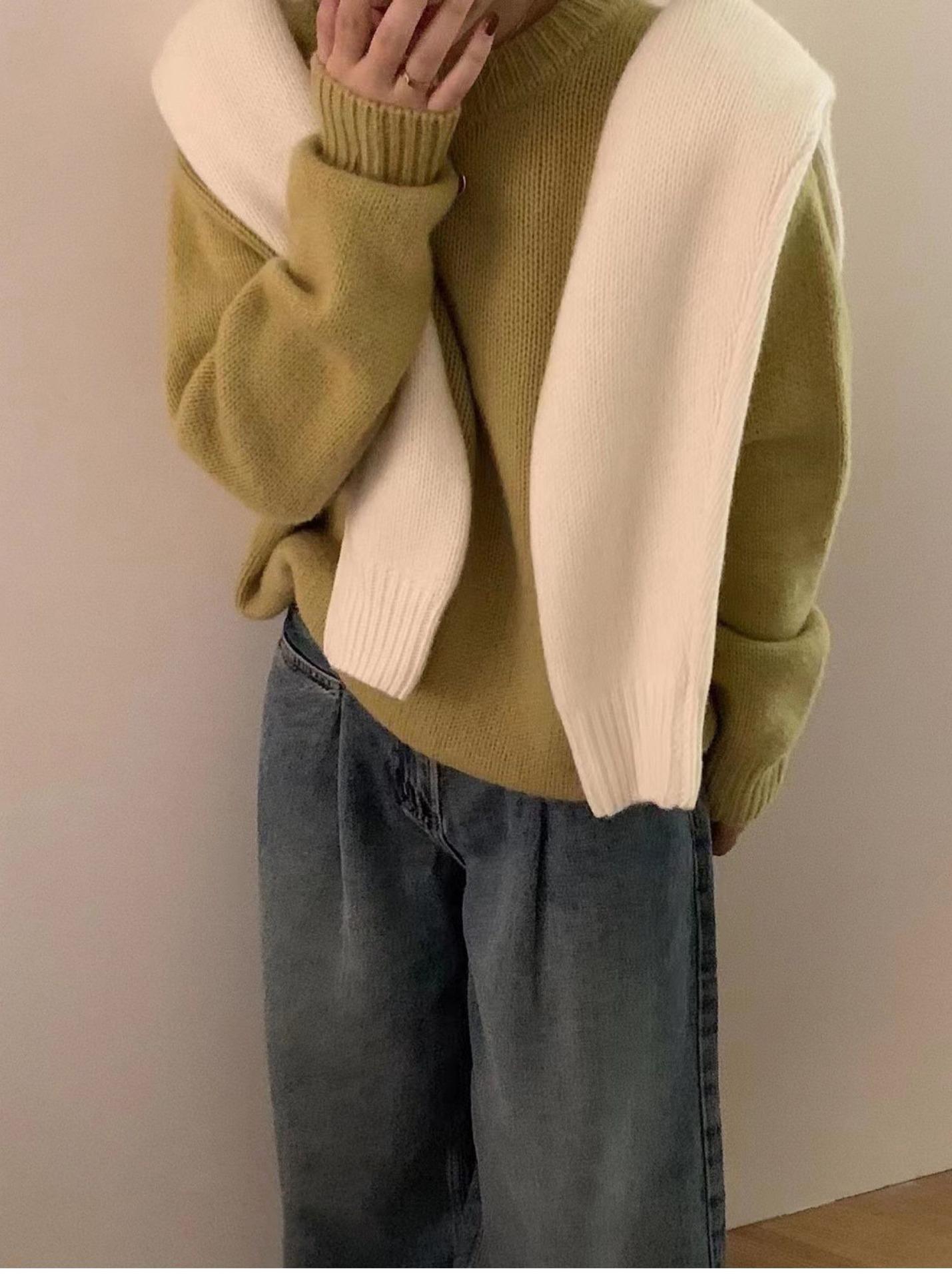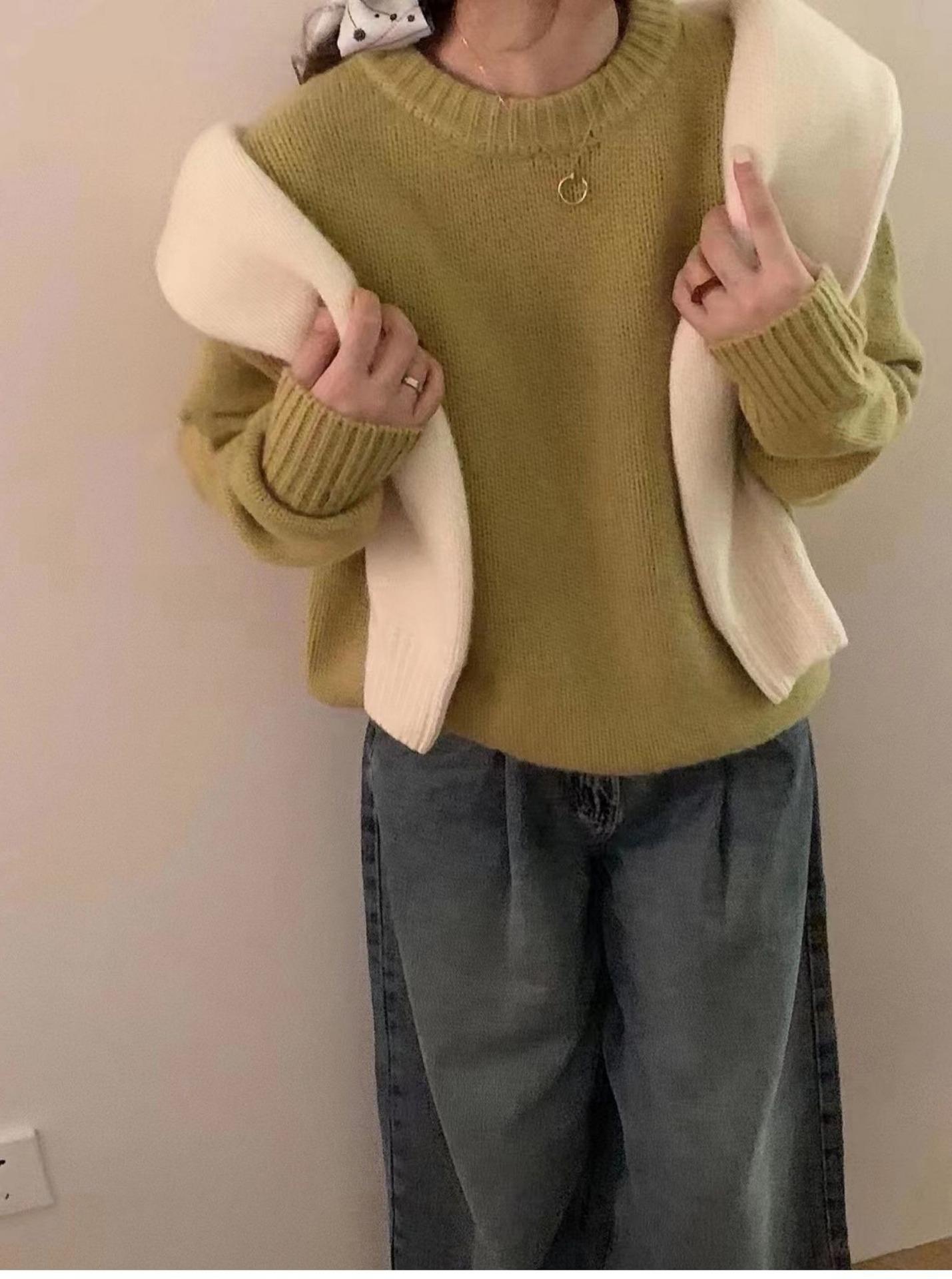 Tejido de Lana de Cuello Redondo Coreano para Mujer Otoño e Invierno 2024 Nuevo Estilo Coreano Tejido de Estilo Holgado y Perezoso Ropa Exterior Gruesa