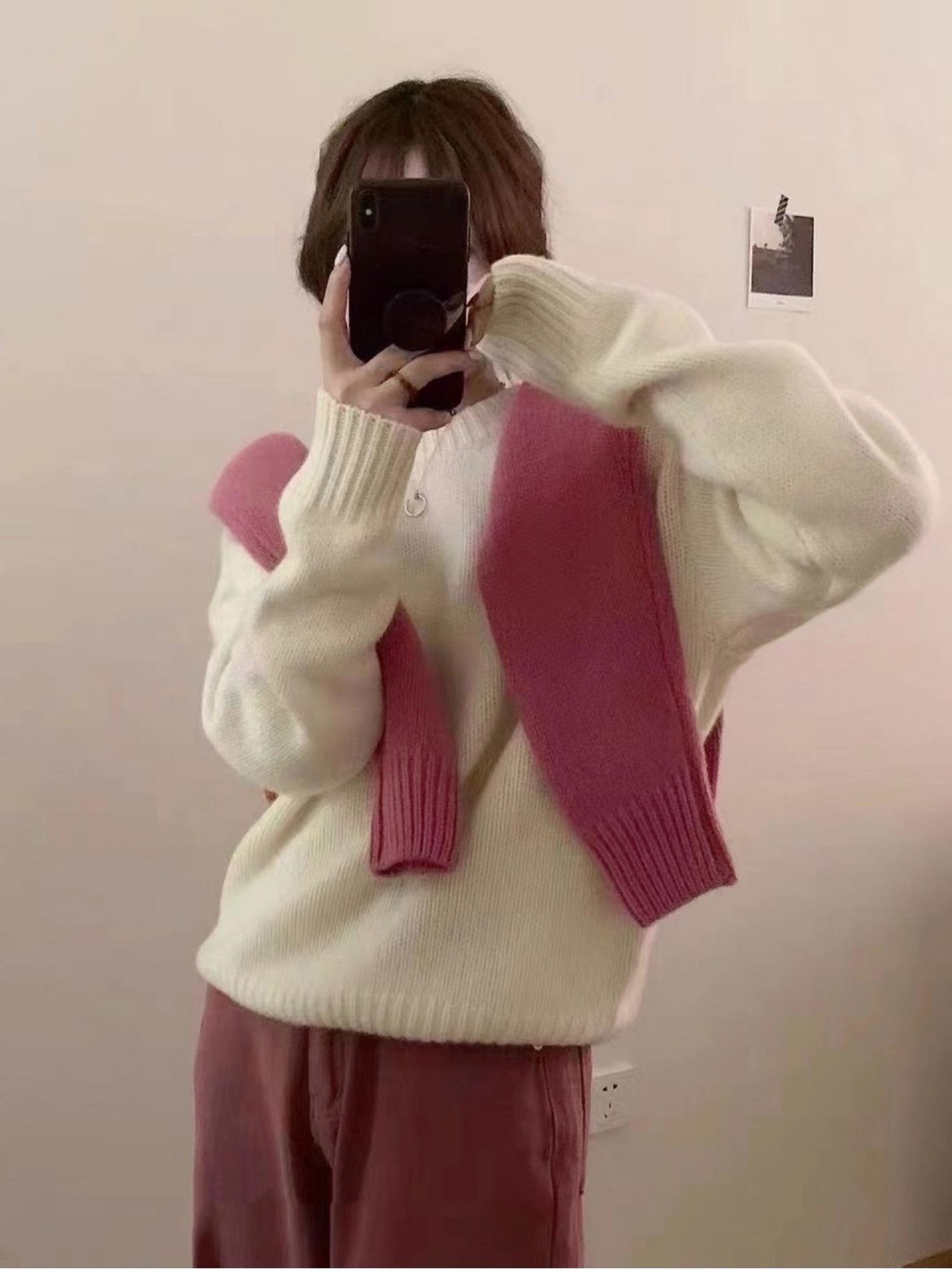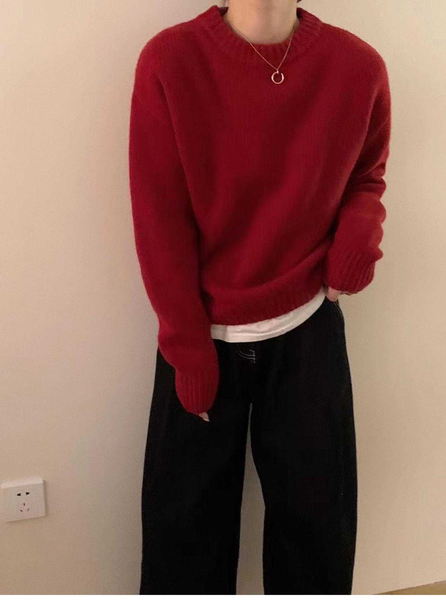 Suéter coreano de lana con cuello redondo para mujer, otoño e invierno 2023, nueva versión coreana, suéter de punto holgado de estilo perezoso, ropa exterior gruesa