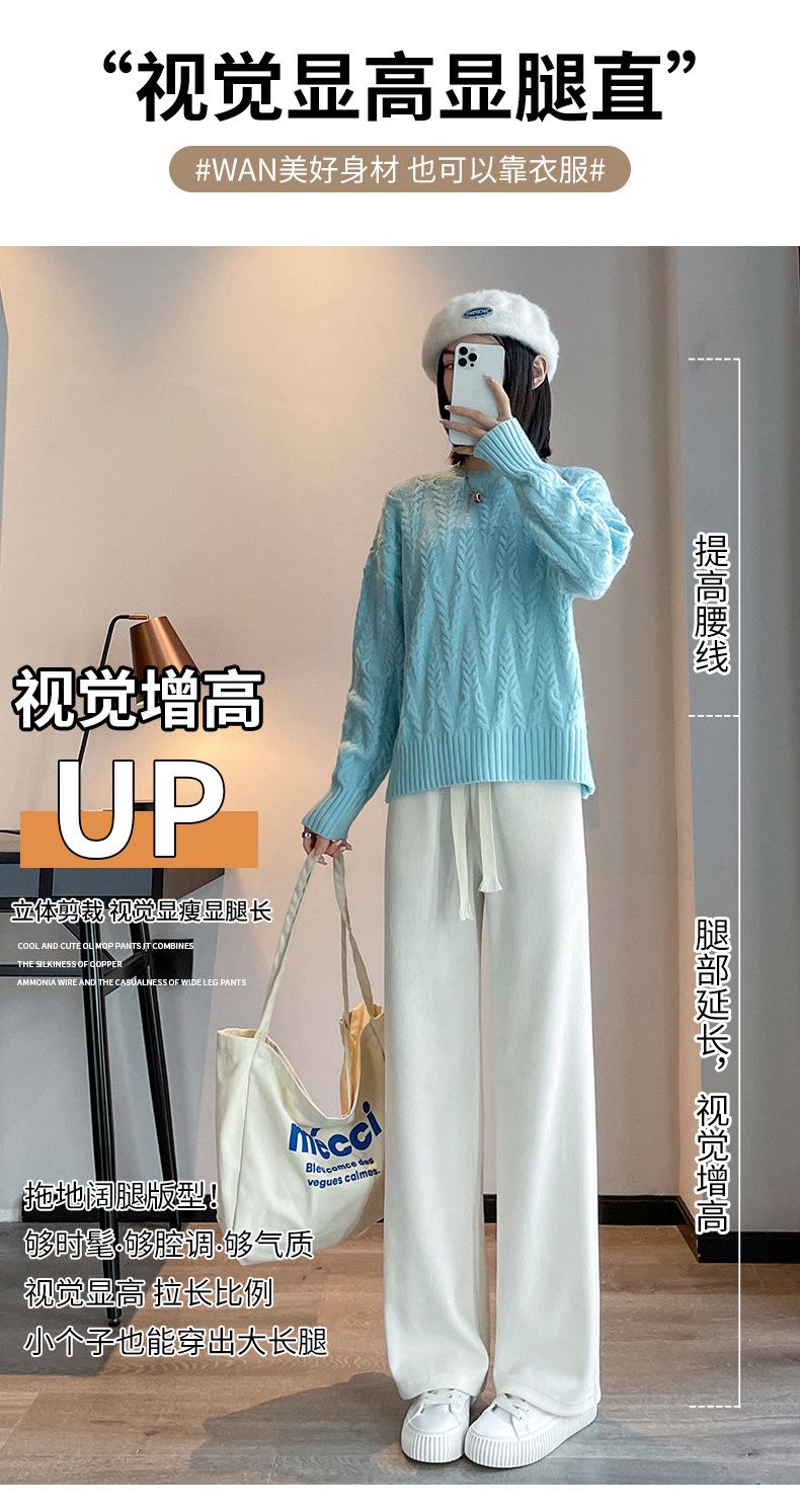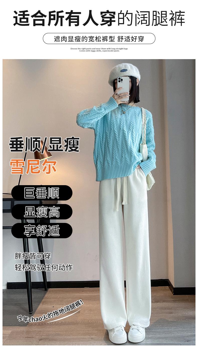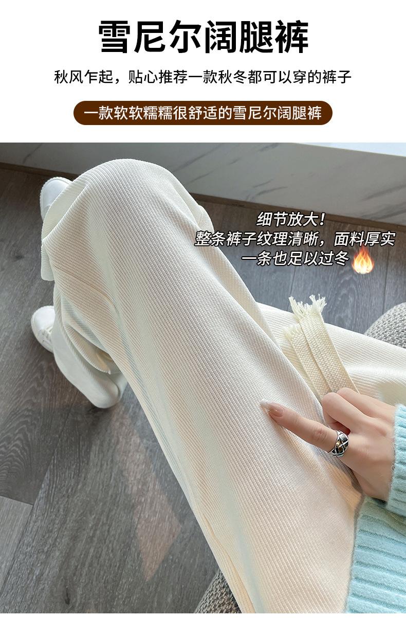 Pantalones anchos de chenilla para mujer, otoño e invierno, con forro polar, cintura alta, drapeados, sueltos, rectos, blancos, informales, de punto de algodón y polar, estilo europeo.