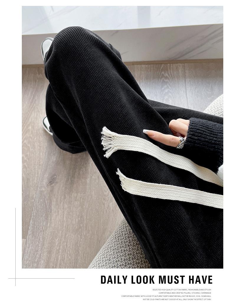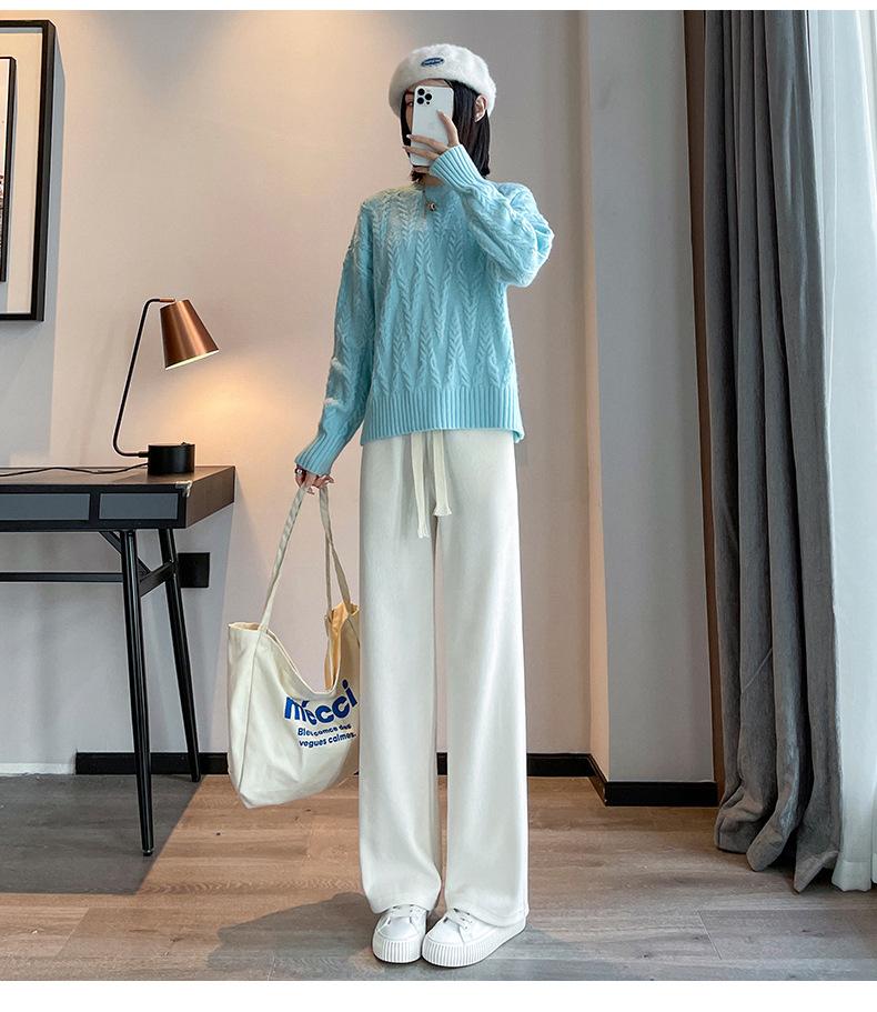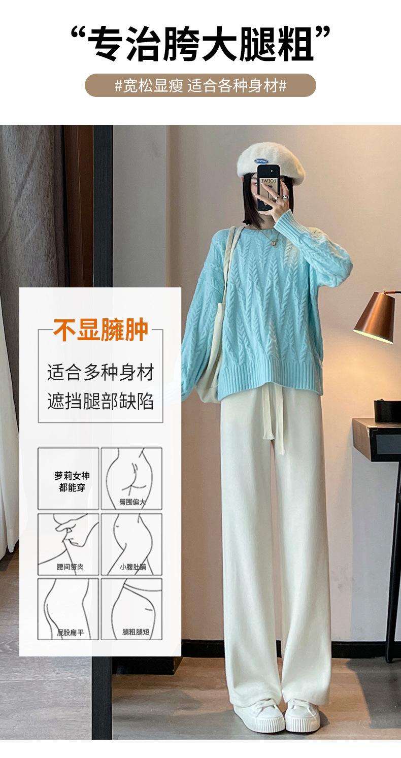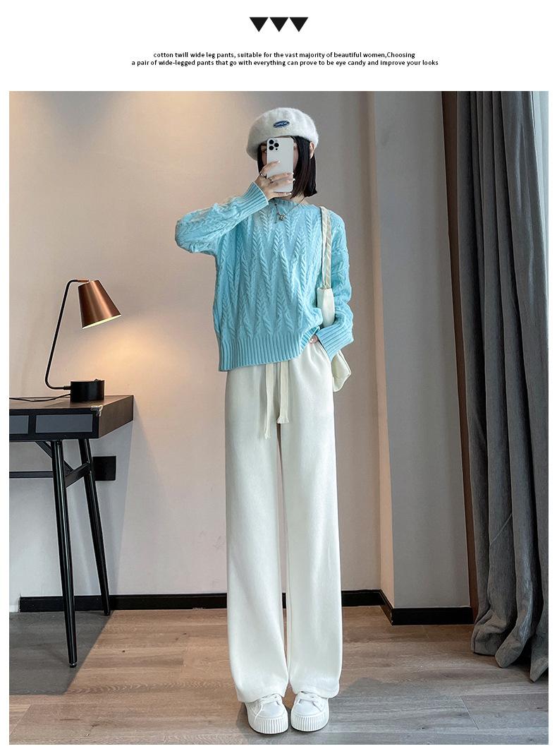 Pantalones anchos de chenilla para mujer, otoño e invierno, con forro polar, cintura alta, drapeados, sueltos, rectos, blancos, informales, de punto de algodón y polar, estilo europeo.