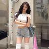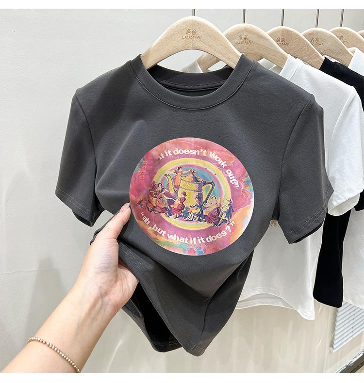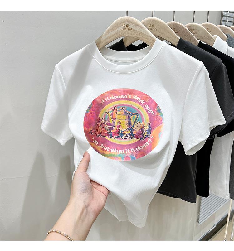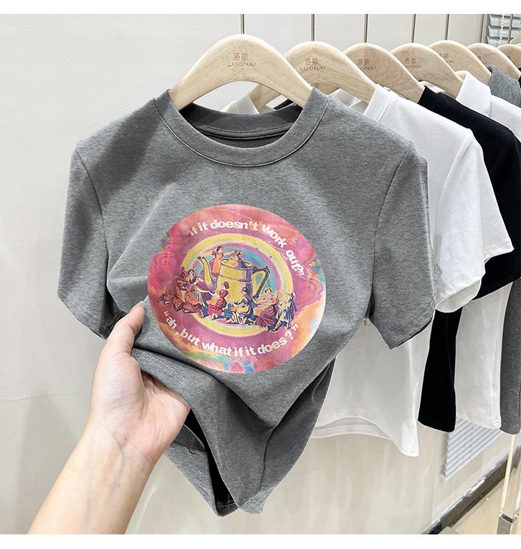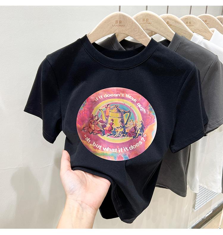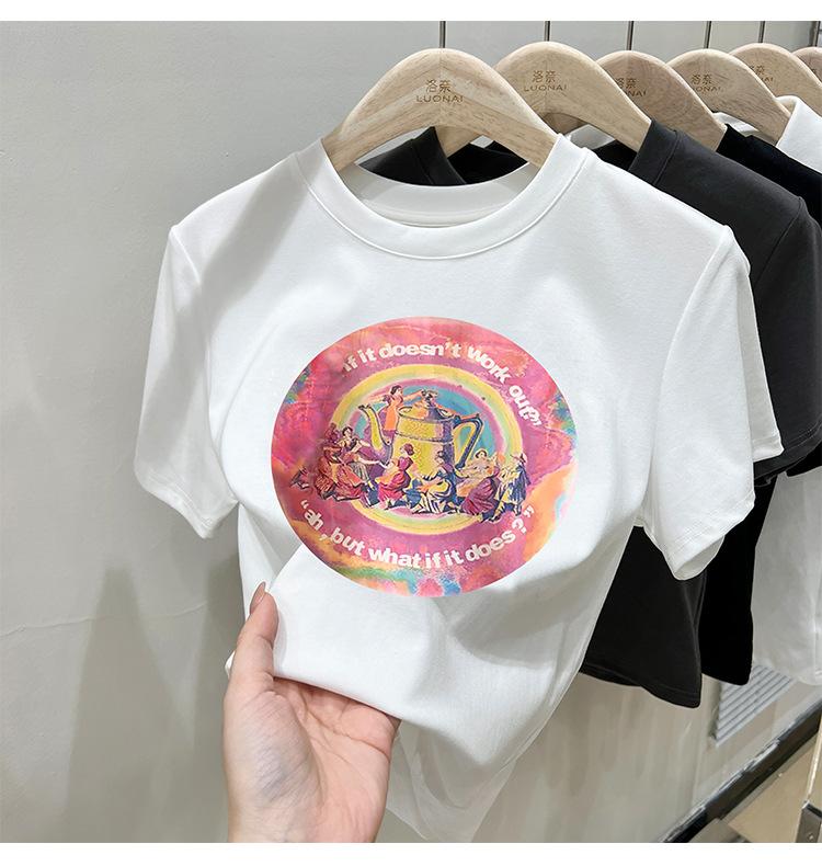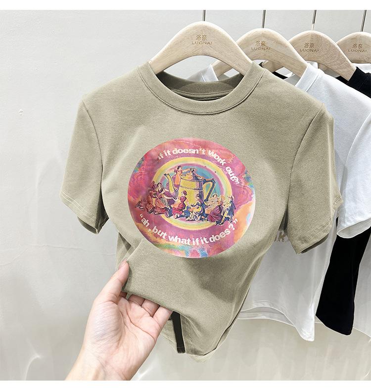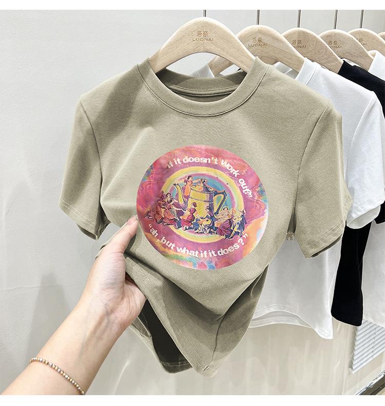 Camiseta de Estilo Europeo con Hombro Derecho Descubierto para Mujer, Manga Corta Estilo Nuevo de Verano, Top Corto Ajustado Único para Mujer, Manga Media
