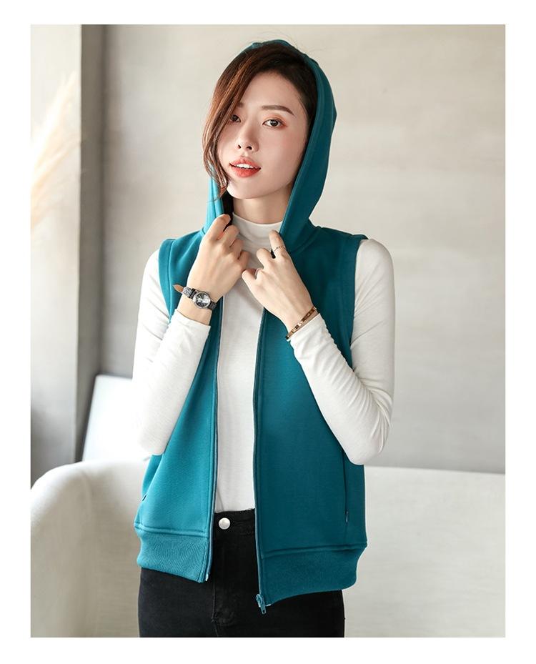 Suéter sin mangas con capucha para primavera 2025, chaleco cálido con forro polar, temperamento coreano, chaqueta entallada para dama 6973-1