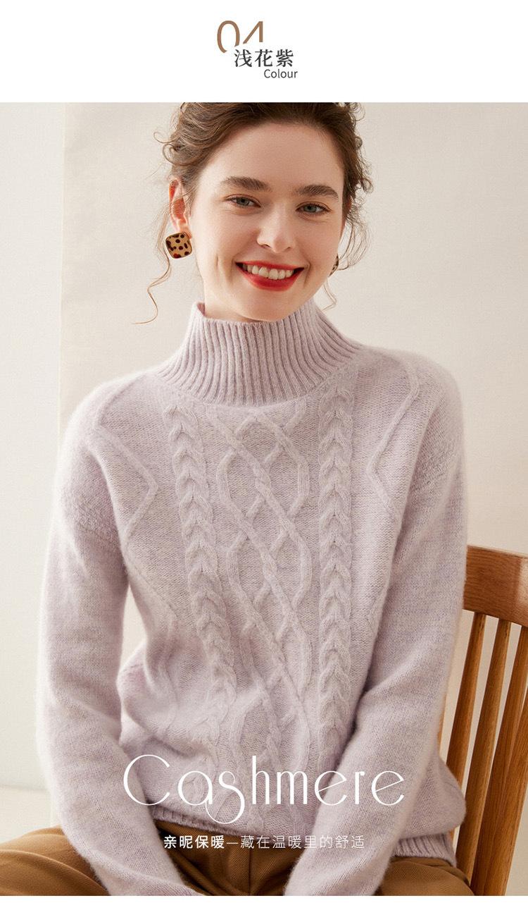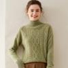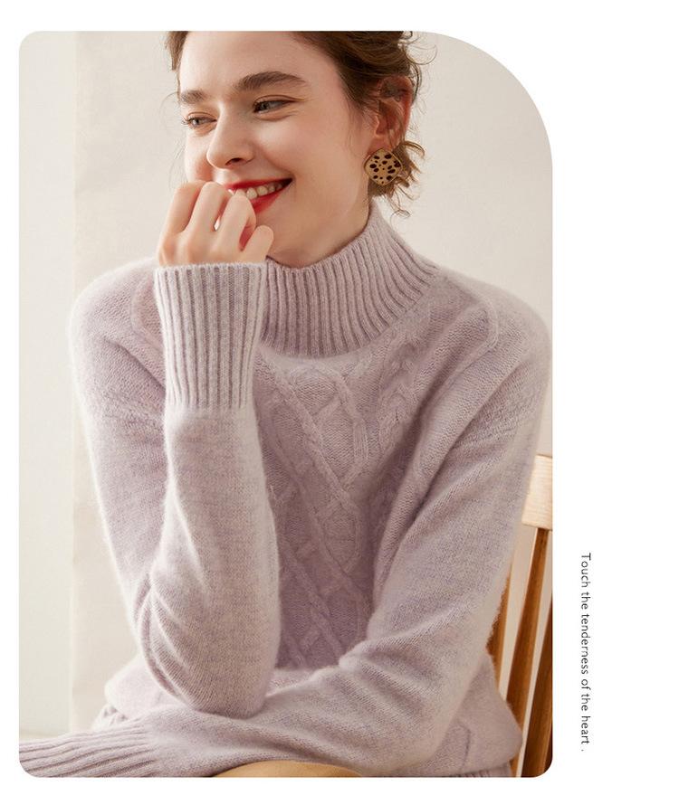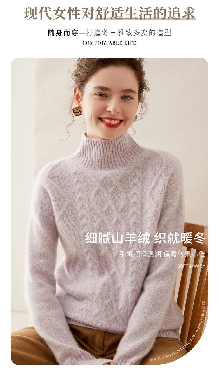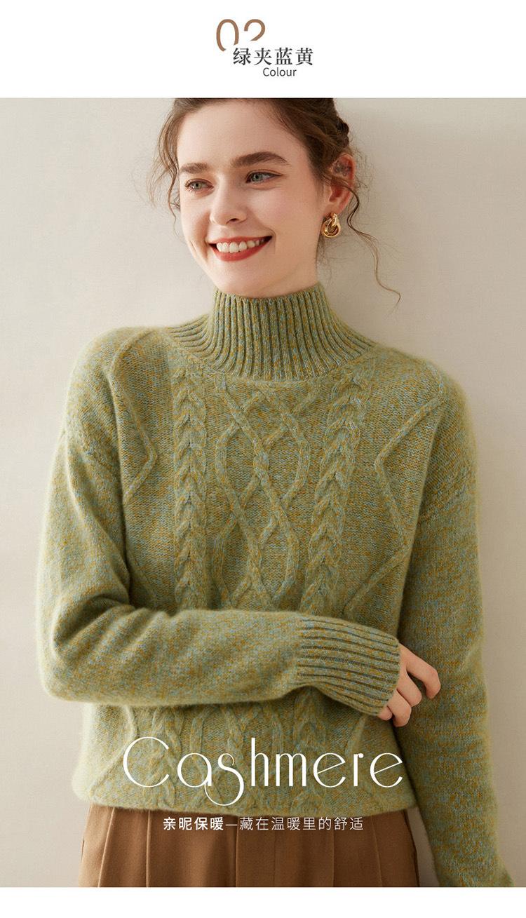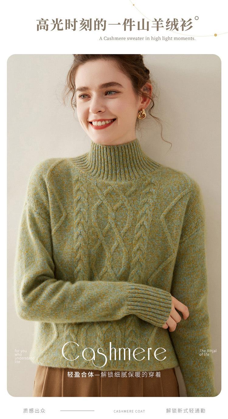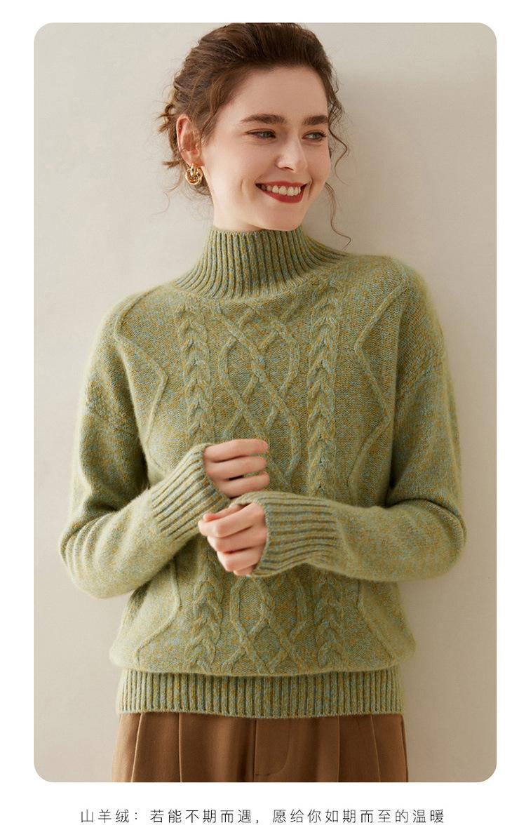 Suéter de cachemira de cuello alto para mujer, otoño e invierno de 2023, manga larga, flor en la cabeza, suéter de cachemira con giro en arena, combinable con todo.