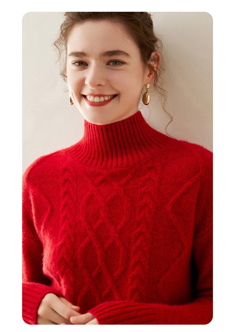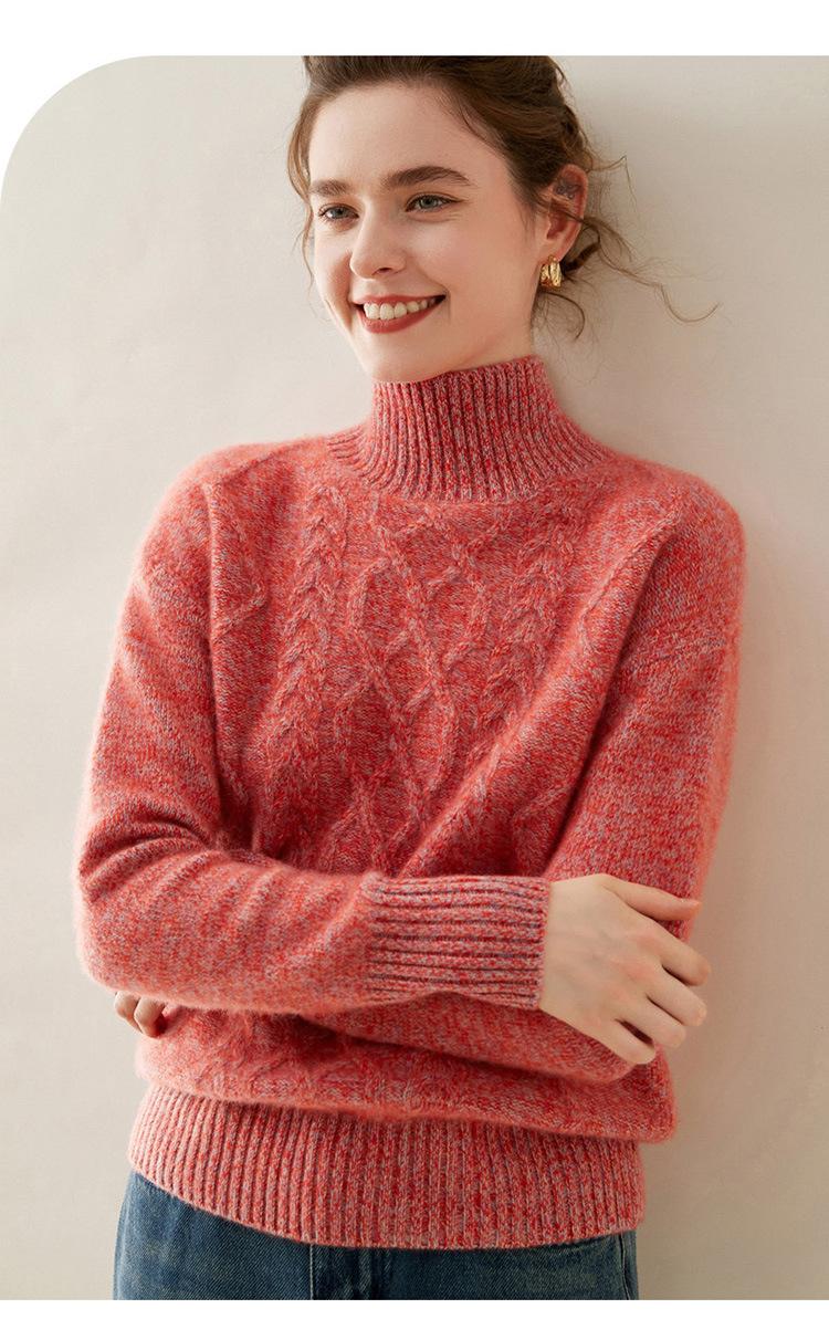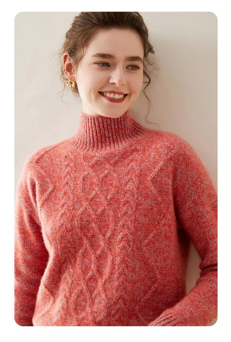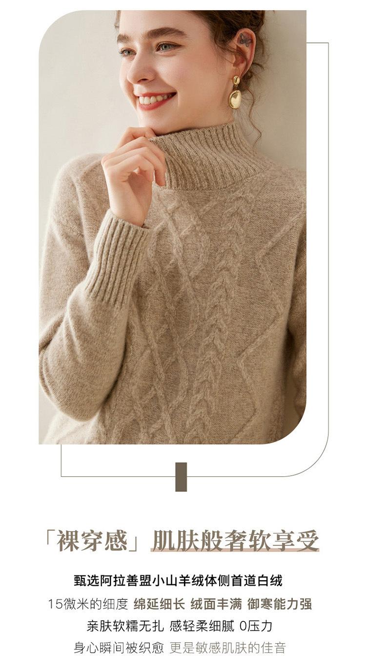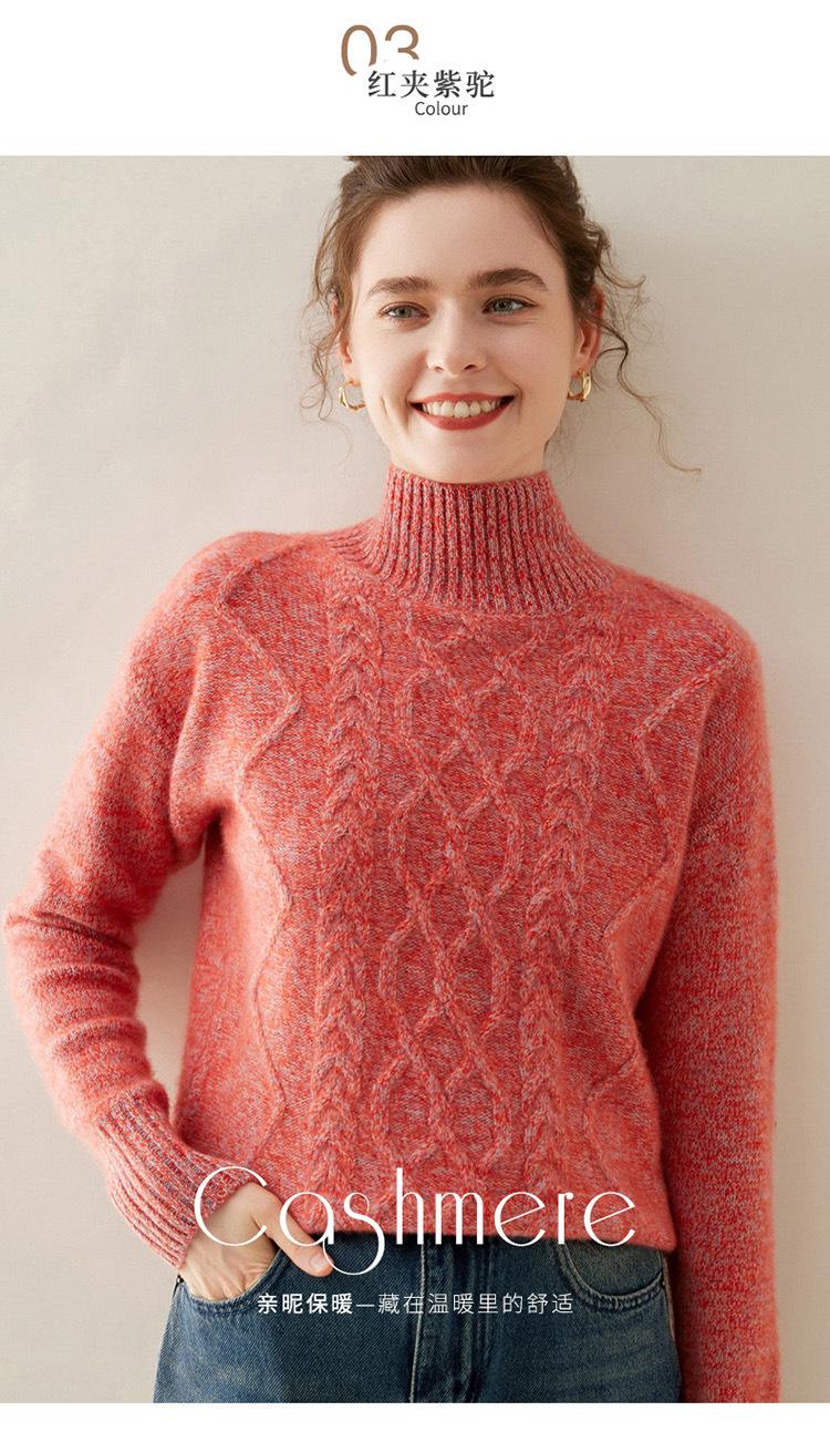 Suéter de cachemira de cuello alto para mujer, otoño e invierno de 2023, manga larga, flor en la cabeza, suéter de cachemira con giro en arena, combinable con todo.