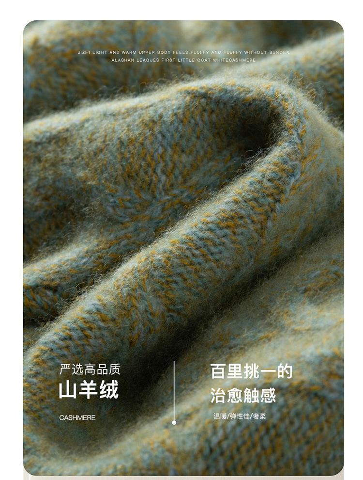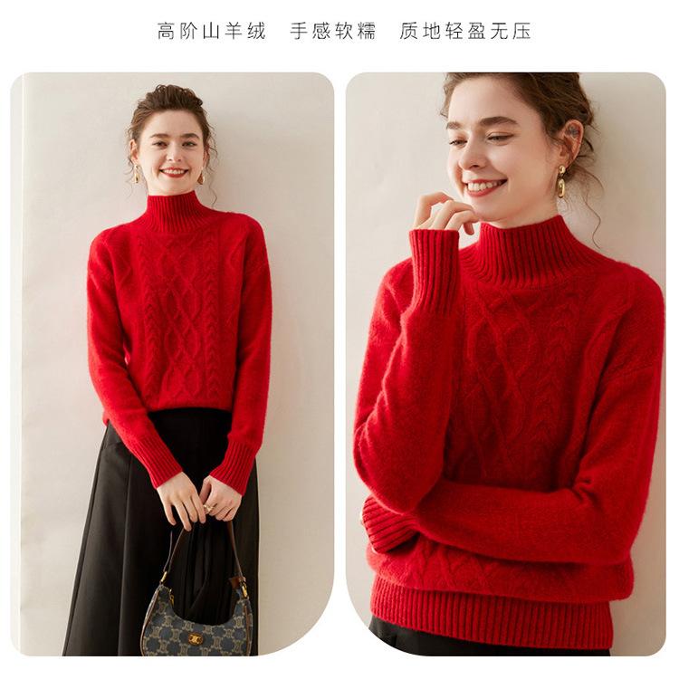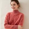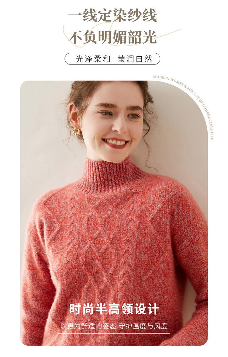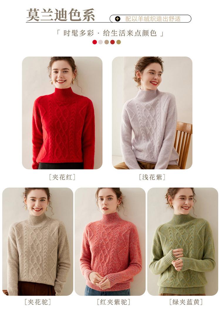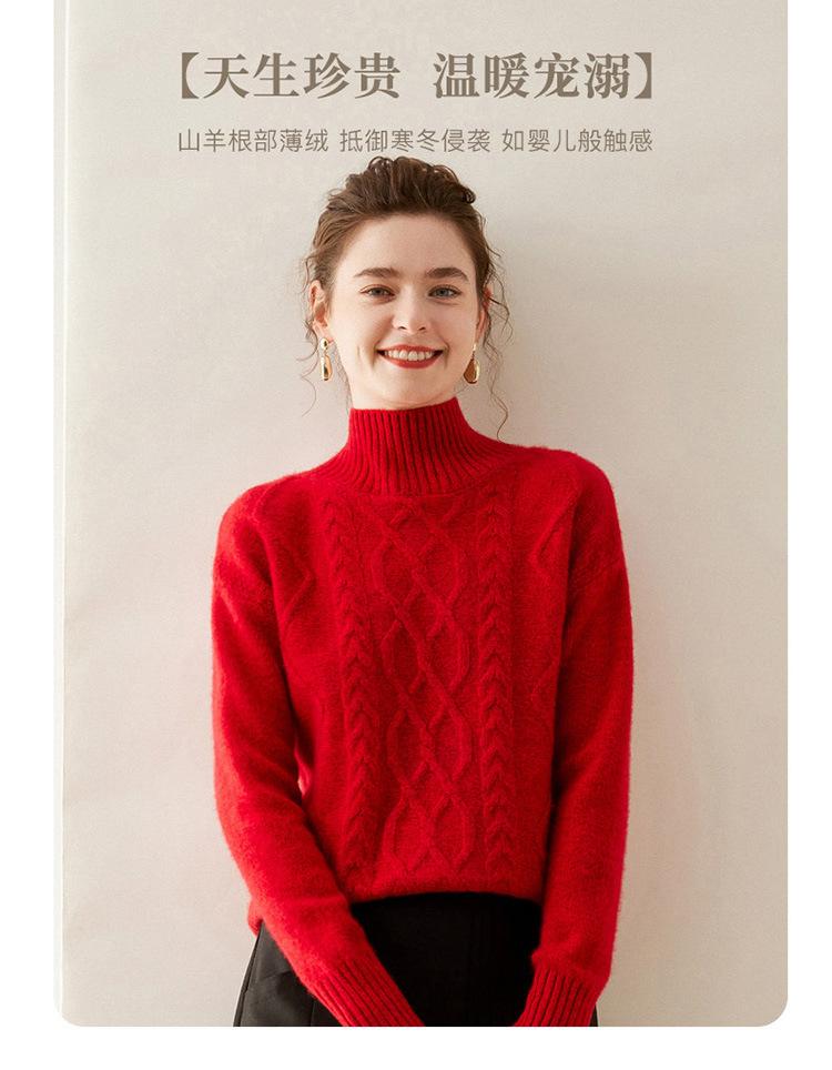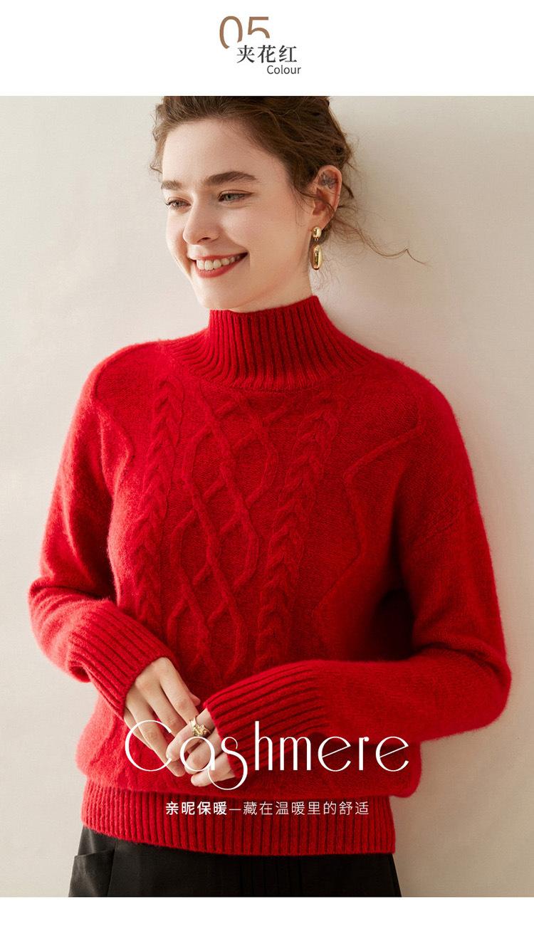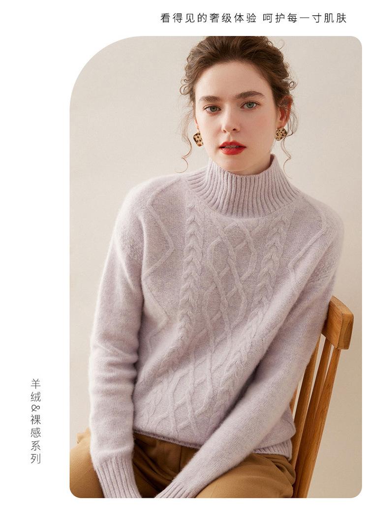 Suéter de cachemira de cuello alto para mujer, otoño e invierno de 2023, manga larga, flor en la cabeza, suéter de cachemira con giro en arena, combinable con todo.