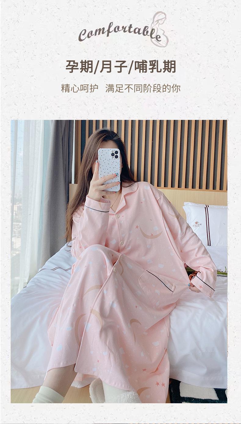 Vestido Largo de Algodón Imitación Luna con Almohadilla en el Pecho Sujetador de Uso Libre Vestido de Maternidad de Primavera y Verano Camisón Falda de Lactancia Postparto