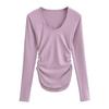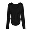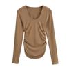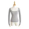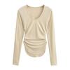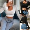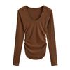 Camiseta de manga larga con cuello en U y hombros descubiertos para mujer, estilo sexy, otoño e invierno 2023, ajustada, con parte inferior cepillada