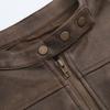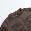 Abrigo de piel de ante lavada vintage estilo americano para mujer, chaqueta corta ajustada con cuello alto, otoño 2023
